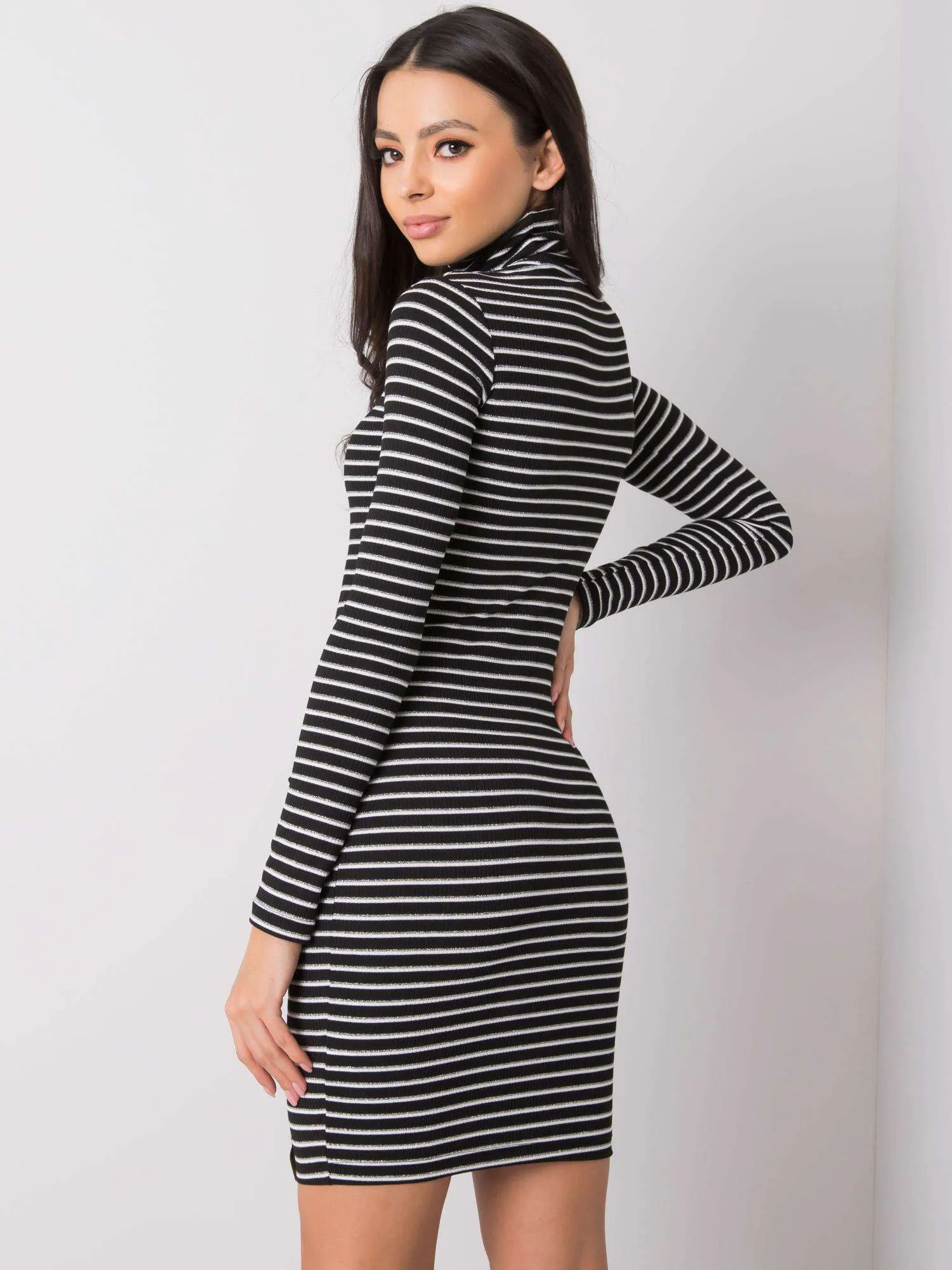 RUE PARIS Czarna sukienka damska w paski .