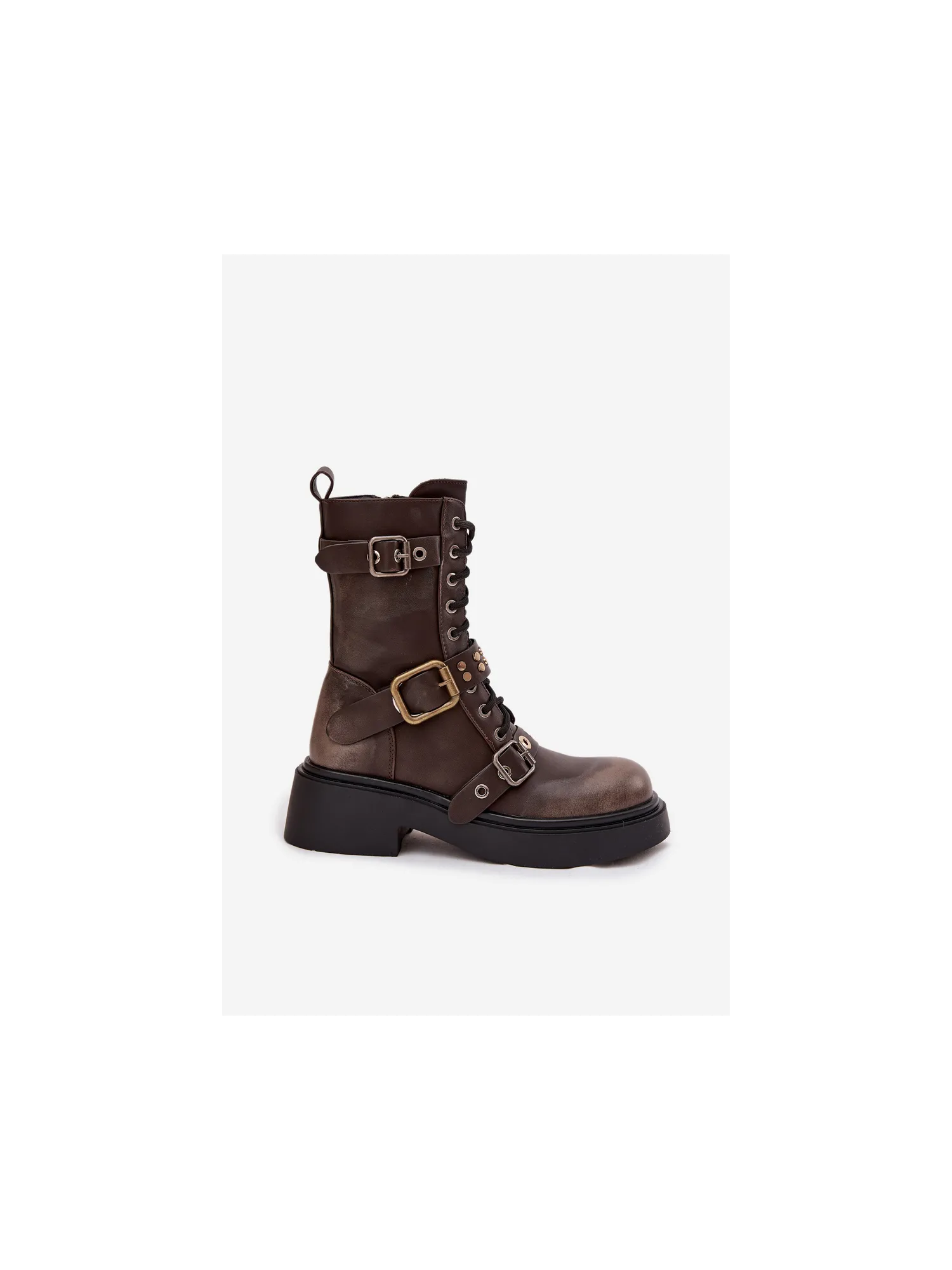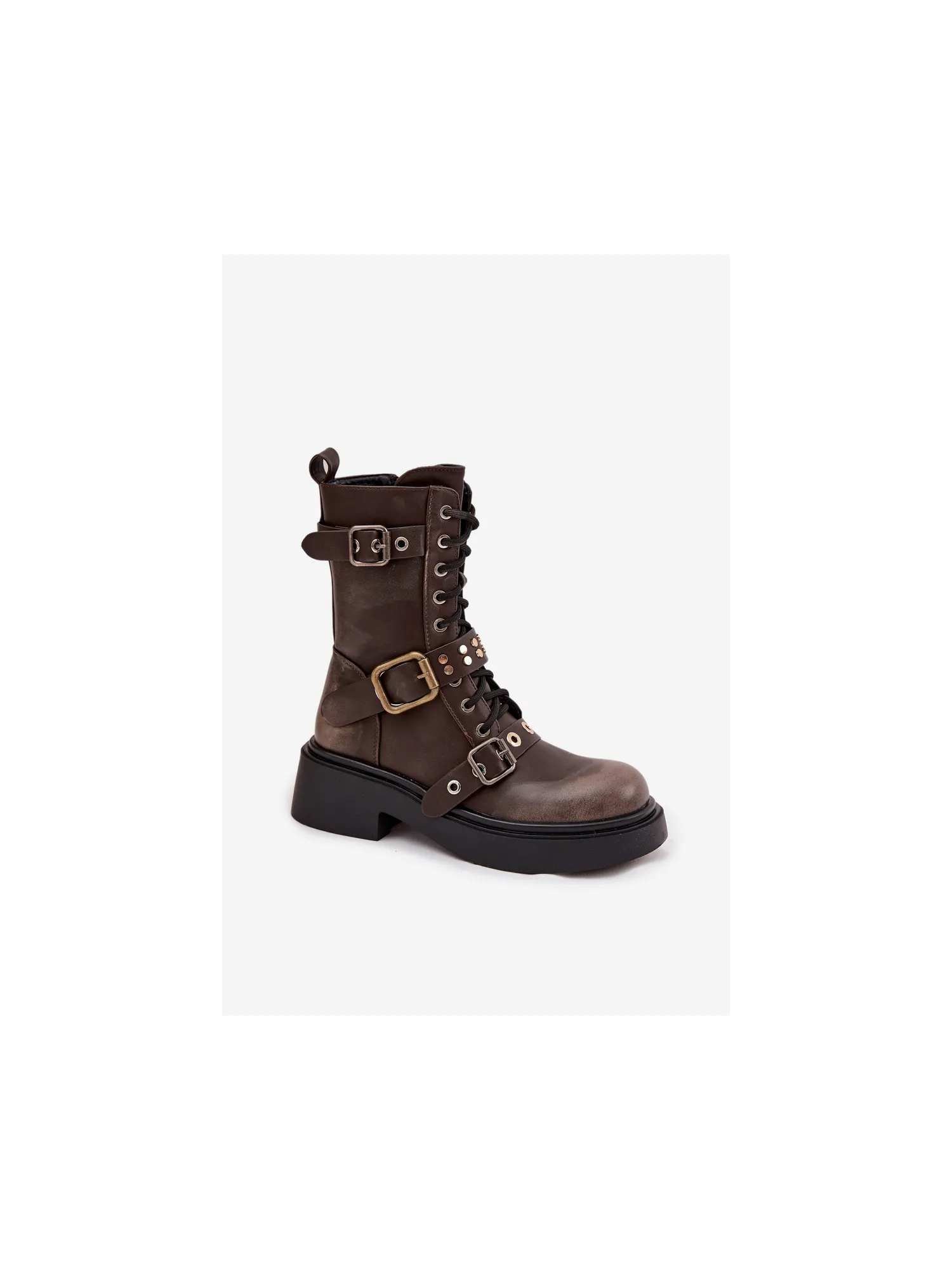 Women's wedge ankle boots made from eco leather, perfect for the fall-winter season. The model features a zipper closure and laces, allowing for a perfect fit to the foot, ensuring comfort and ease of wearing. Rounded toes give the shoes a versatile character. Eye-catching decorative straps with buckles add a fashionable, slightly rock accent, emphasizing individual style. The interior of the shoes is lined with a soft footwear blanket. An ideal choice for women who value a combination of functionality, comfort, and style – these ankle boots are suitable for both everyday and more expressive outfits. Please refer to the size chart when choosing your size. When choosing a size, please refer to the size chart.