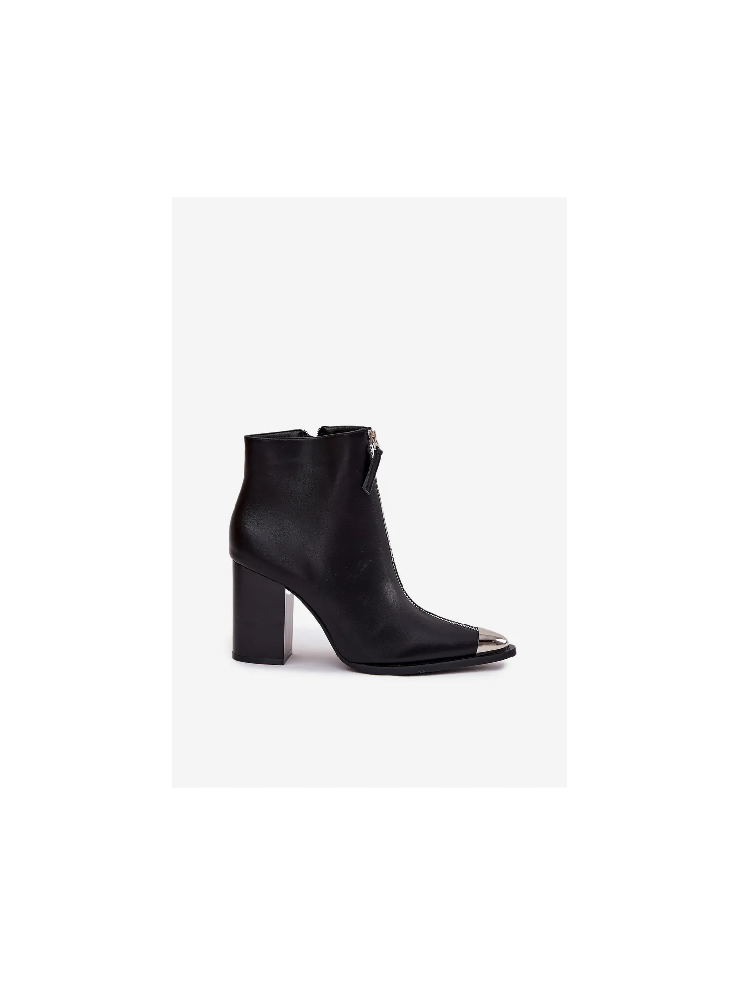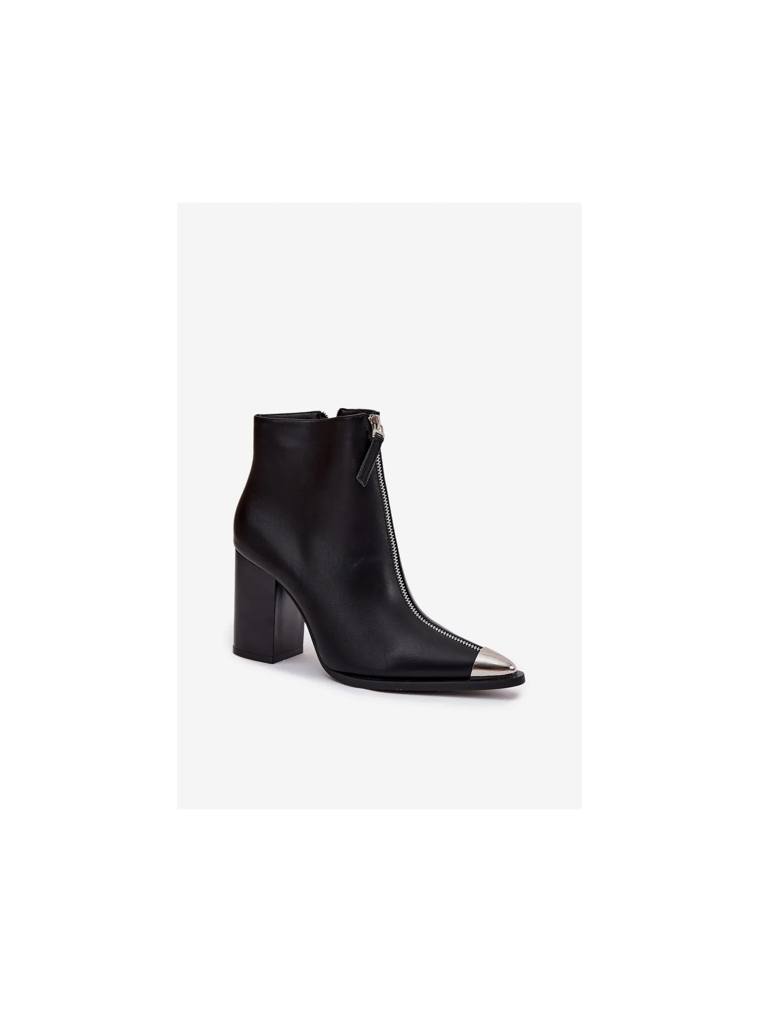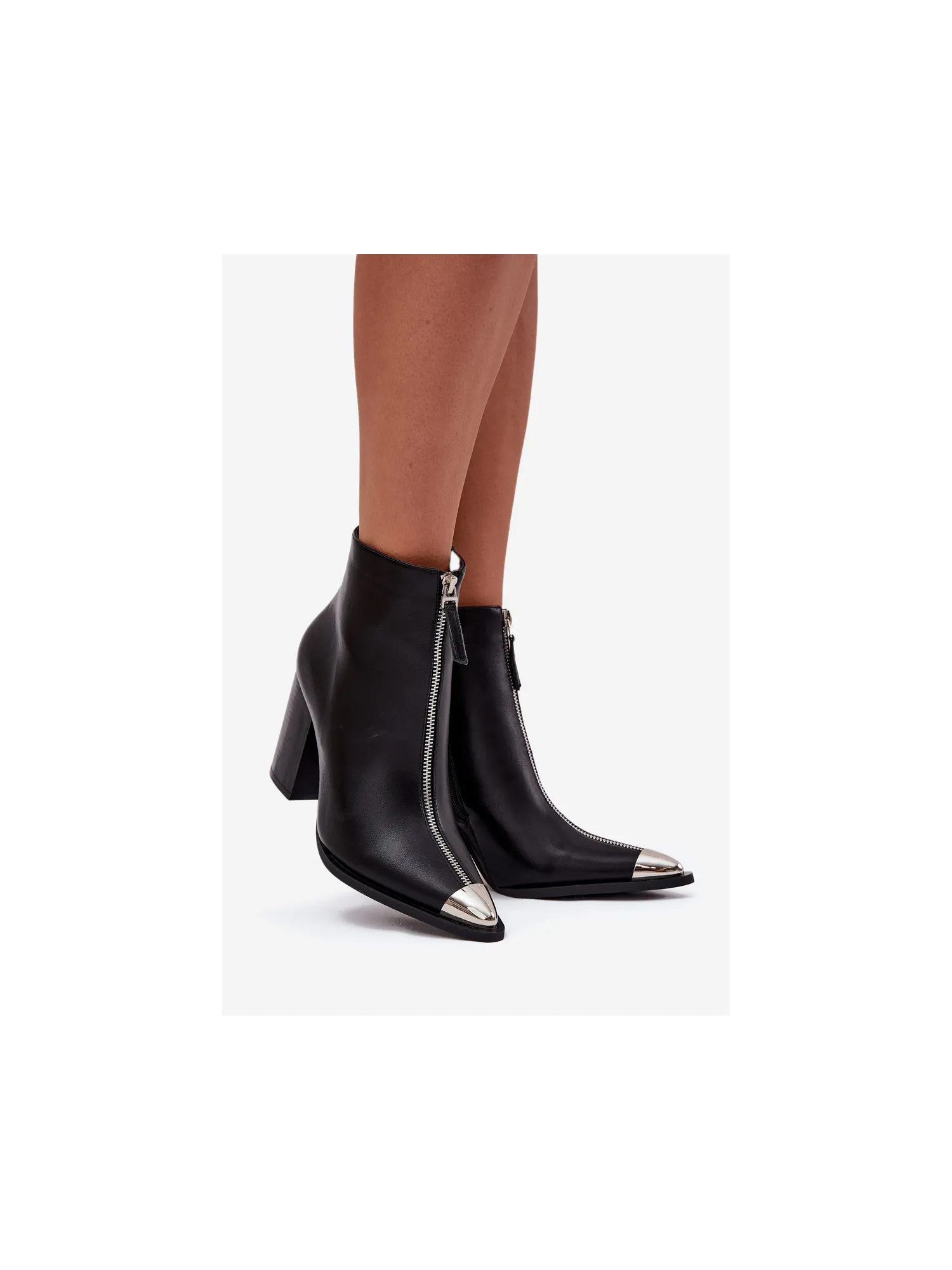 Women's ankle boots made of eco-leather are a stylish option for everyday wear and more formal outfits. The model with a stable heel ensures a comfortable walk, and the side zipper makes it easy to put on and fit to the foot. An additional decorative zipper at the front and a subtle metal detail give a modern touch. Please refer to the size chart when choosing your size. When choosing a size, please refer to the size chart.