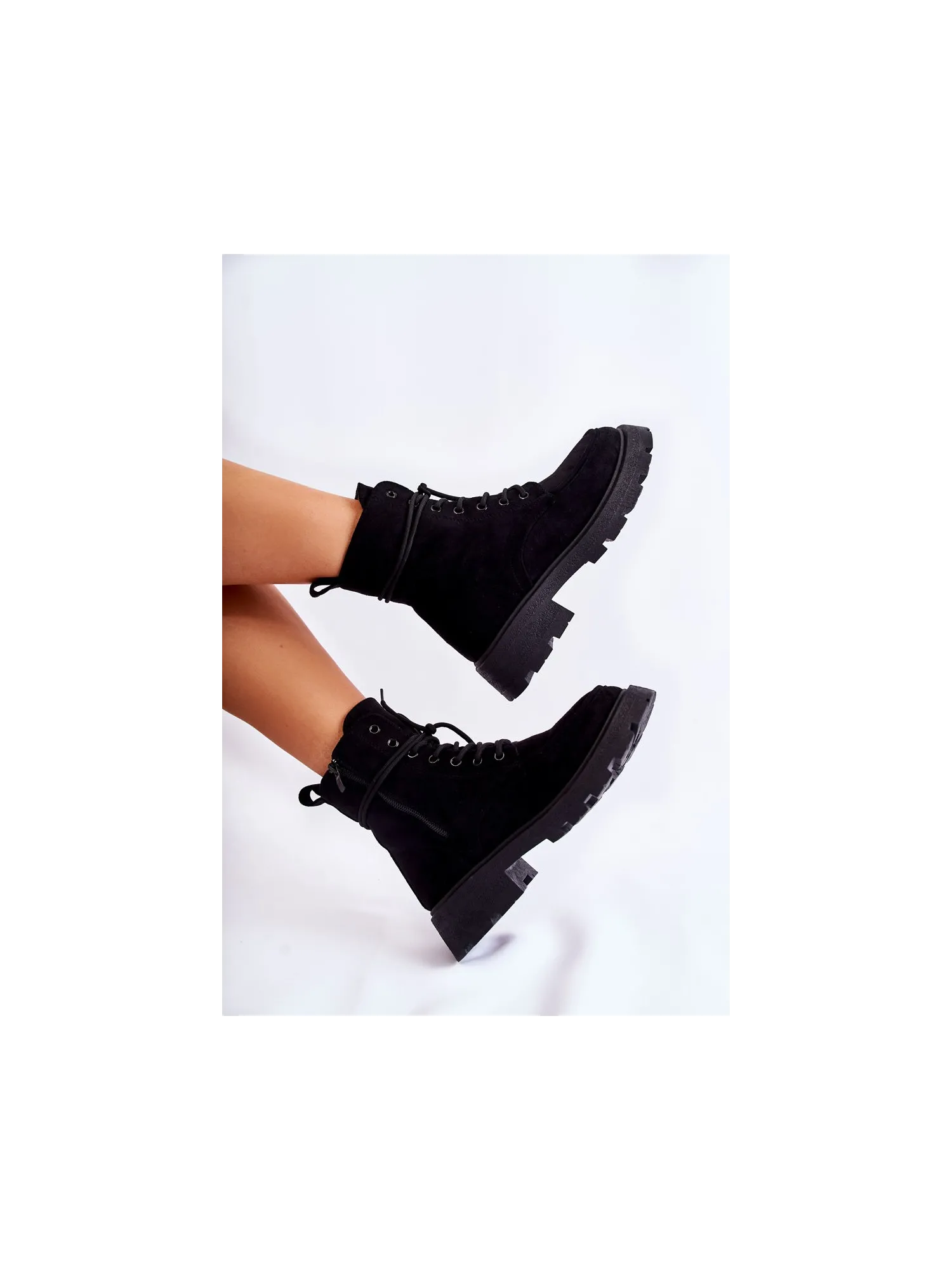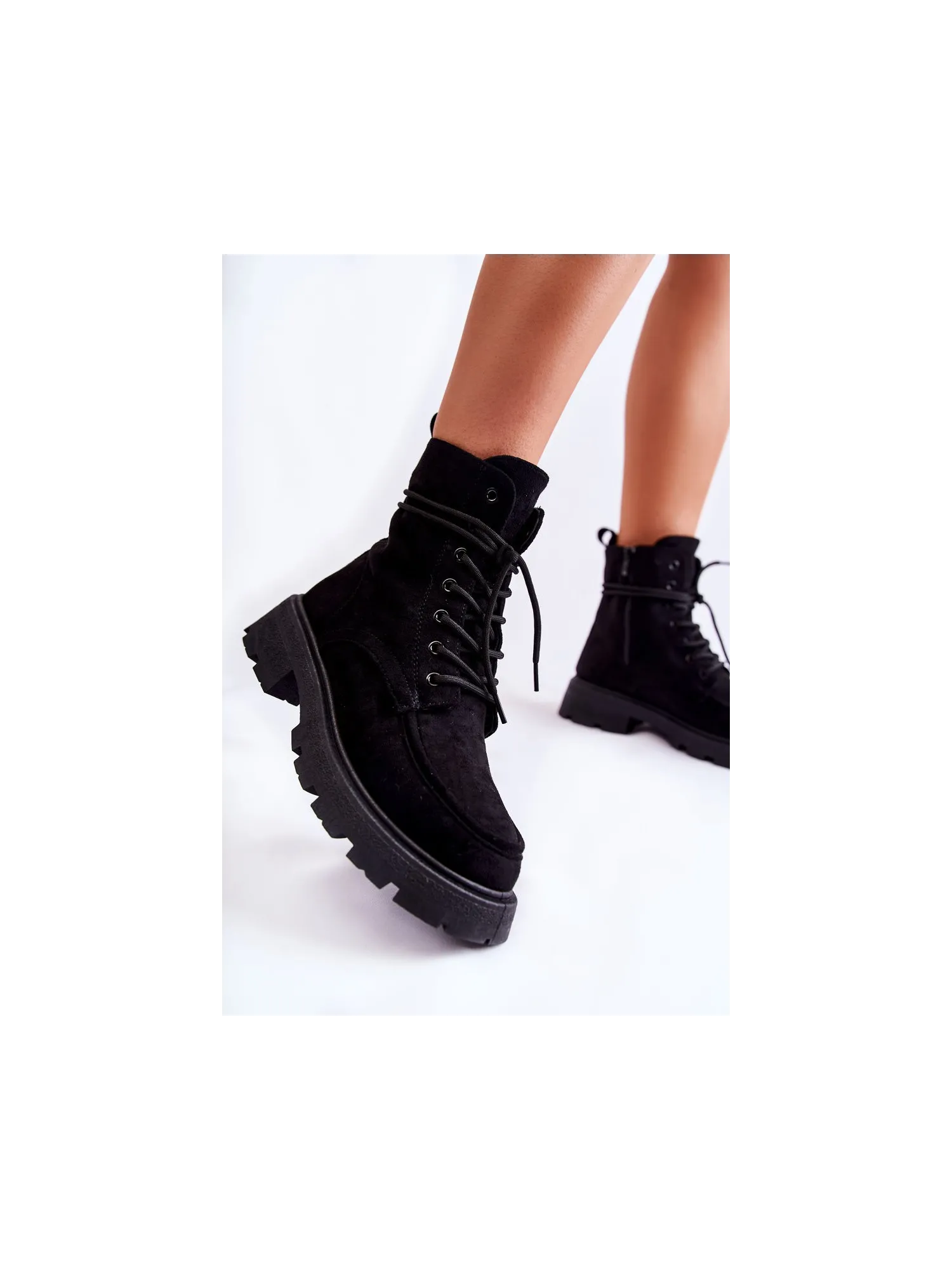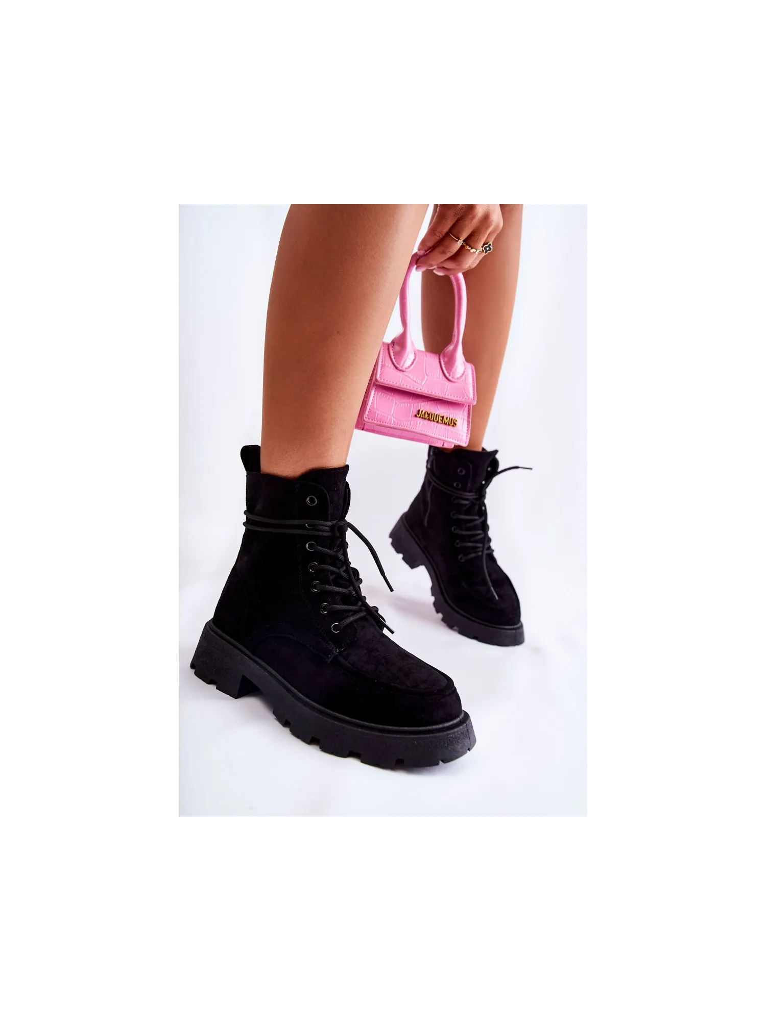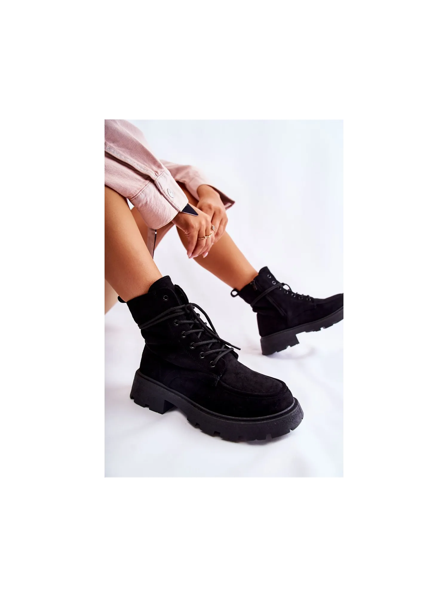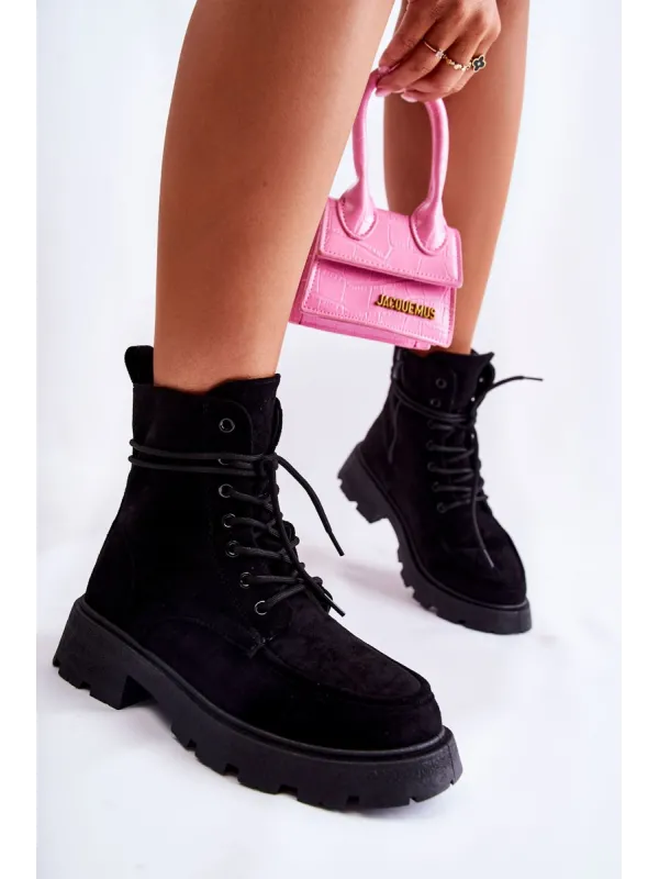 Klasikiniai batai su kulkšnies viršumi yra pagaminti iš malonios liesti ekologiškos zomšos. Šio modelio viršutinės dalies šone yra užtrauktukas. Be to, jie yra suvarstomi, kurie leis avalynę tinkamai priderinti prie kojų pločio. Jie montuojami ant subtilios platformos ir plokščių kulnų. Jie turi izoliaciją malonaus liesti kailio pavidalu. Kulnas šiek tiek sutvirtintas. Renkantis dydį, naudokite dydžių lentelę.