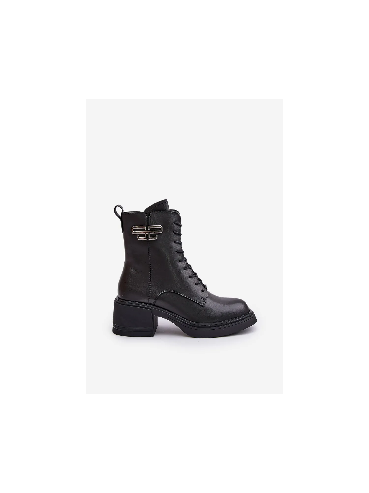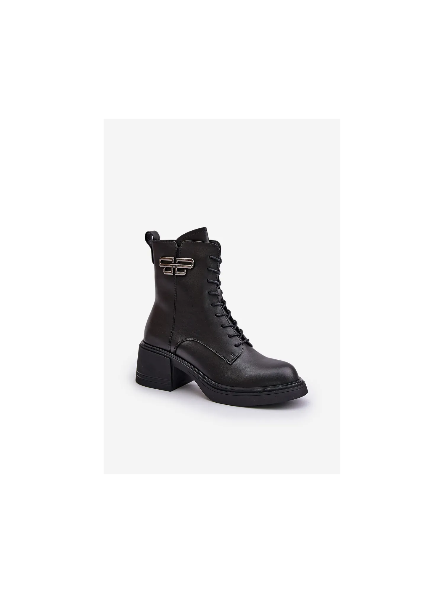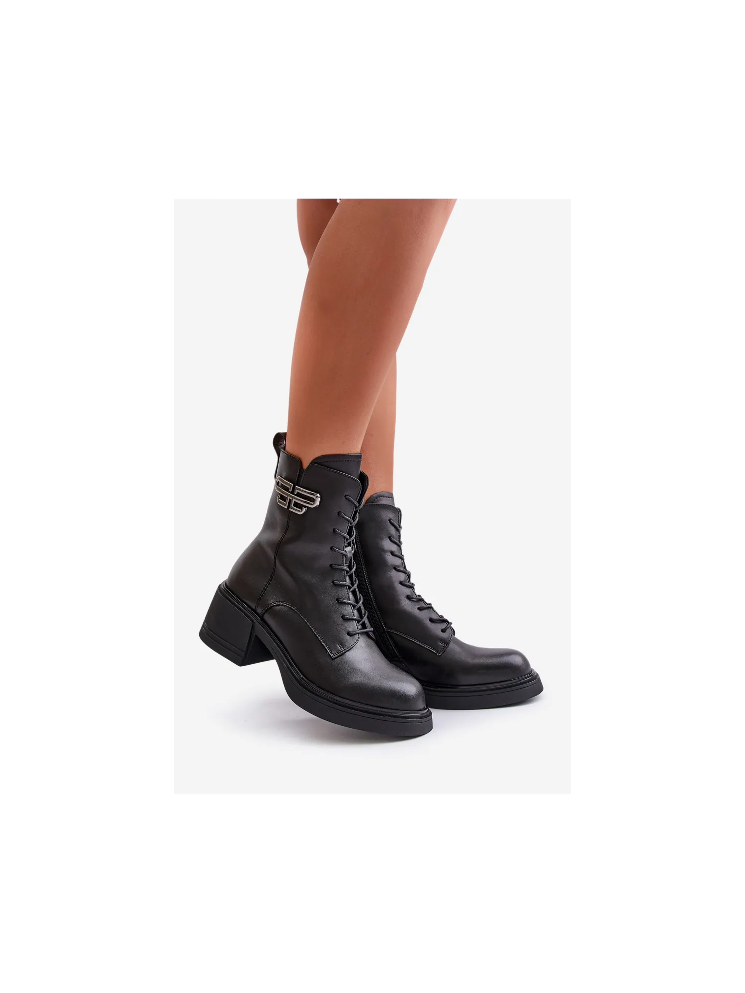 Moteriški kulkšnies batai ant storų kulnų, izoliuoti iš natūralios odos Juoda Vinceza 66682