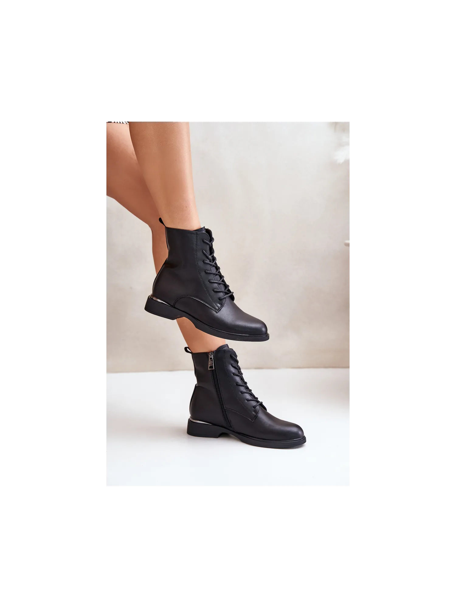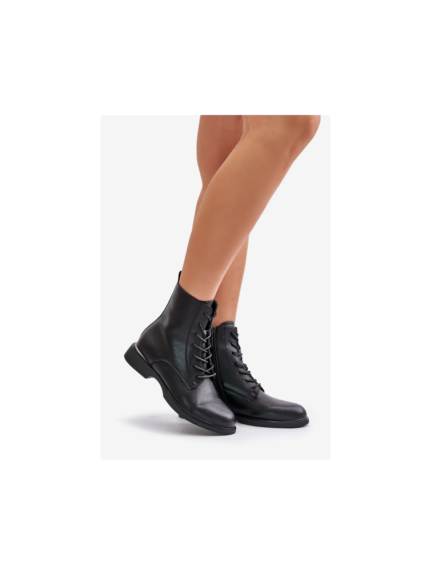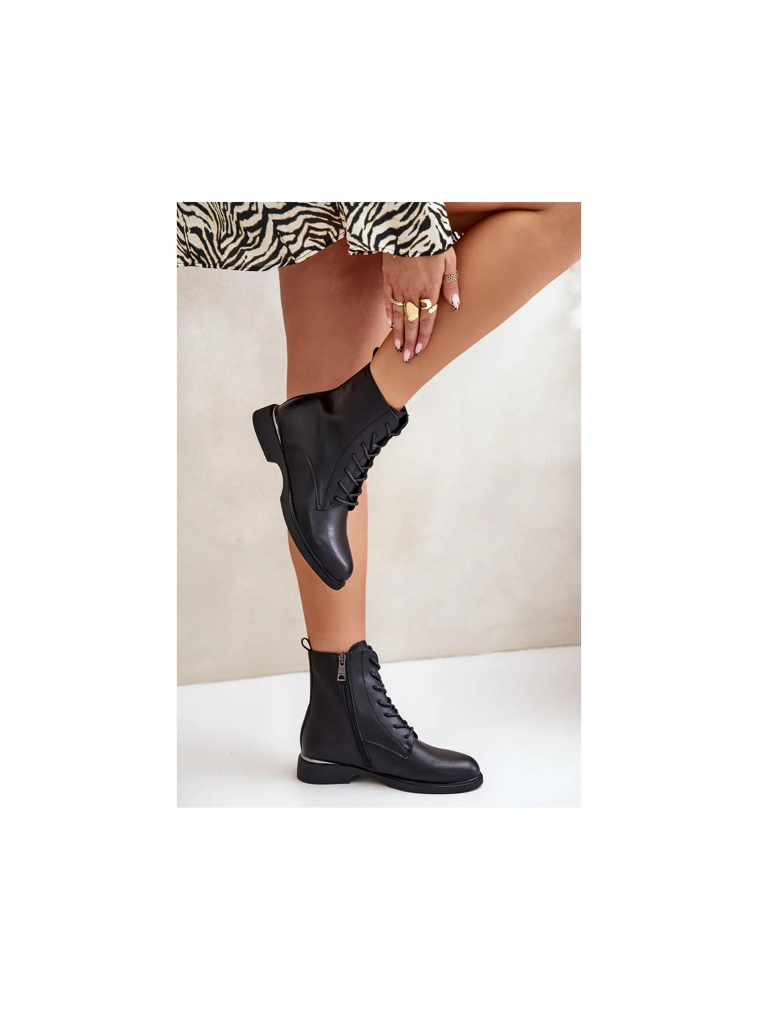 Women's ankle boots by Vinceza, made of high-quality natural leather. Model with rounded toes. Set on a flat heel that provides comfort for everyday wear. They feature a zipper and lacing, allowing for easy on and perfect fit to the foot. These boots are an excellent choice for cooler days. When choosing a size, please refer to the size chart.