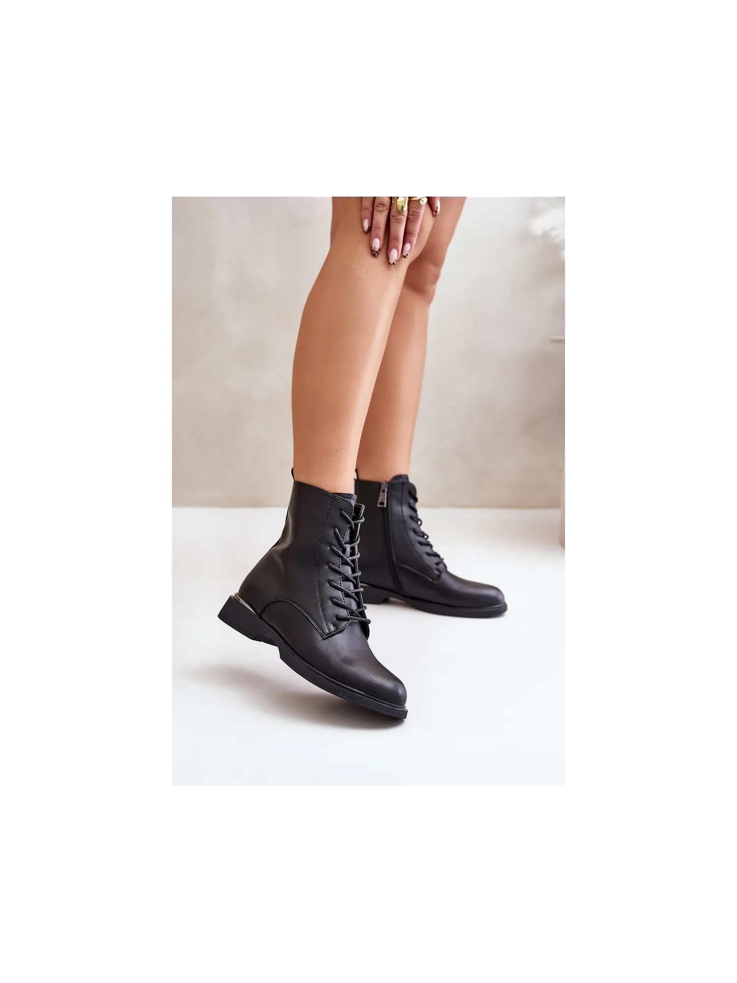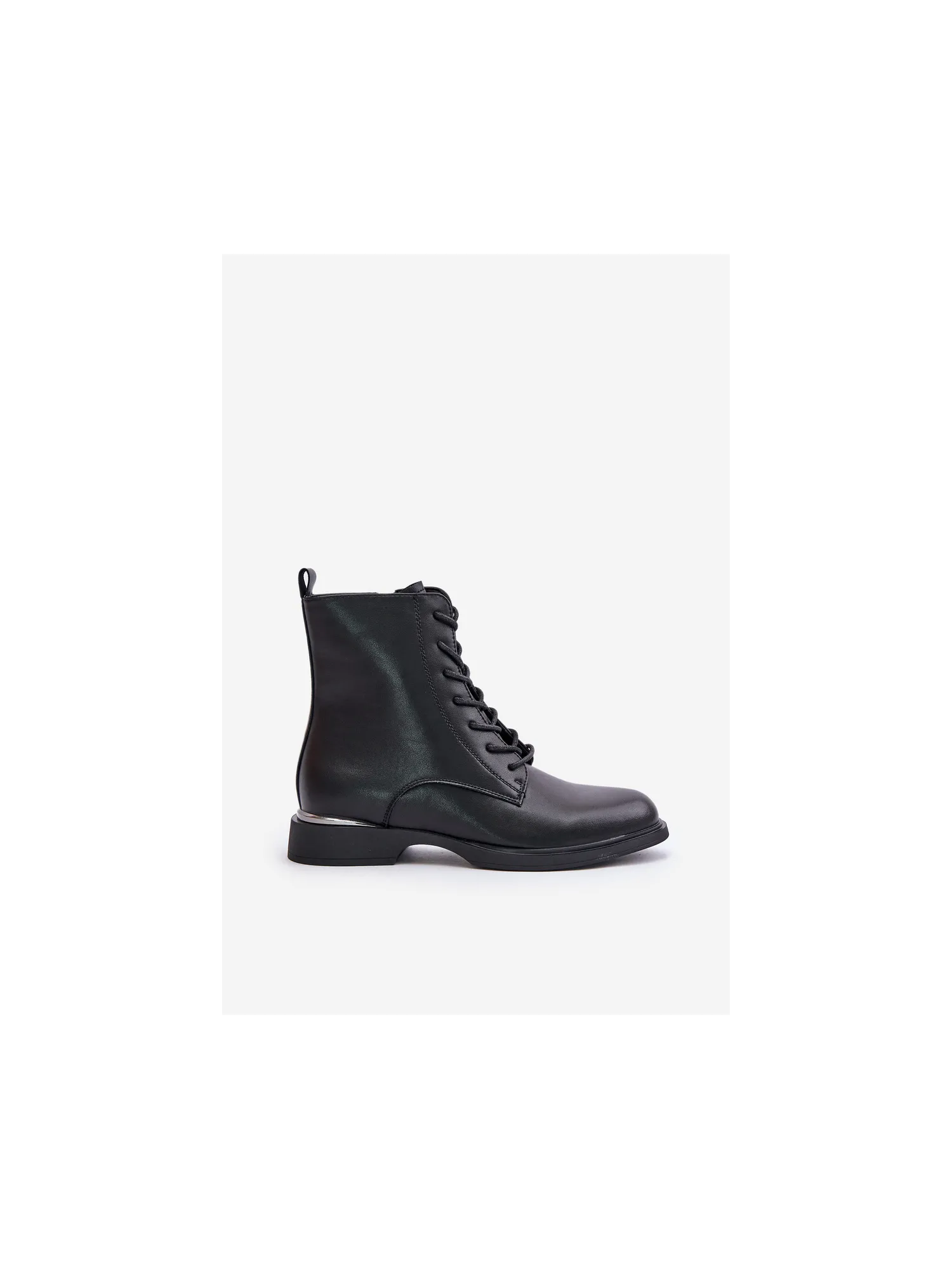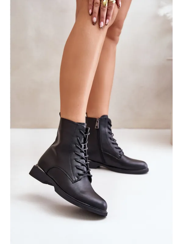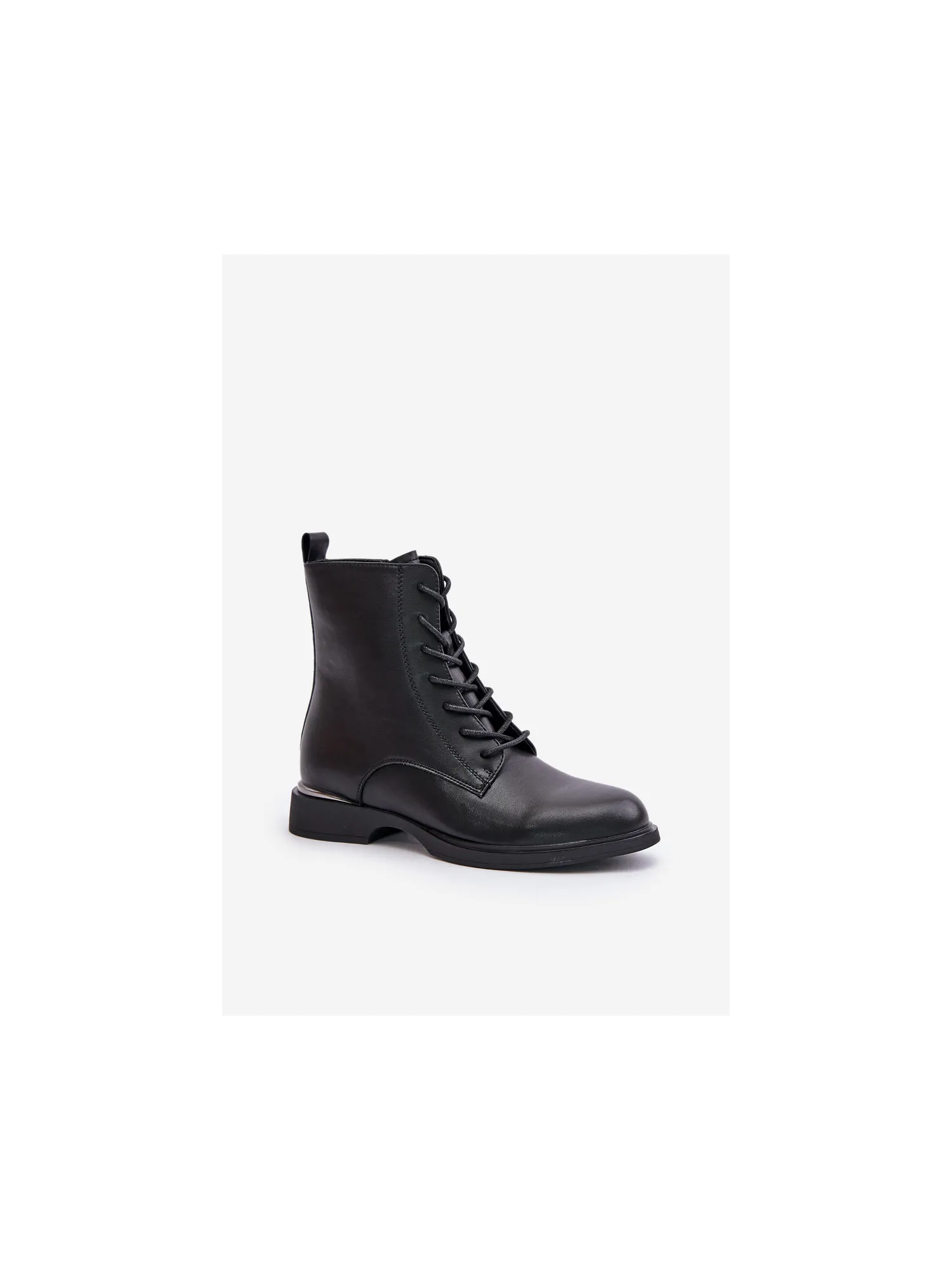 Women's ankle boots by Vinceza, made of high-quality natural leather. Model with rounded toes. Set on a flat heel that provides comfort for everyday wear. They feature a zipper and lacing, allowing for easy on and perfect fit to the foot. These boots are an excellent choice for cooler days. When choosing a size, please refer to the size chart.