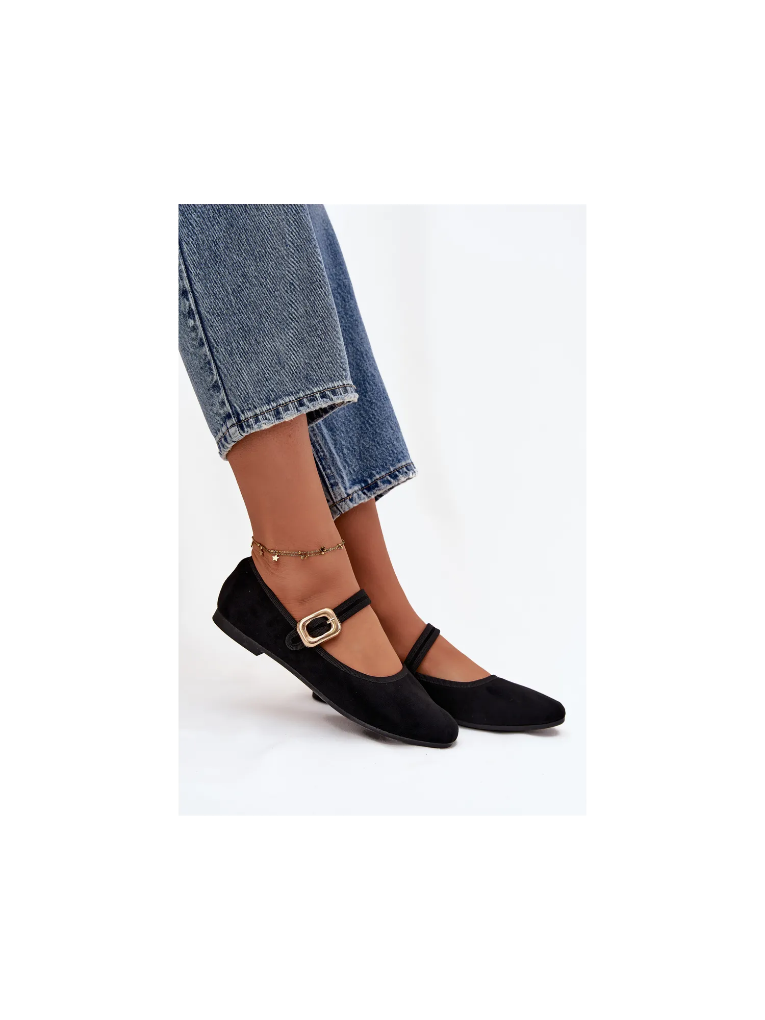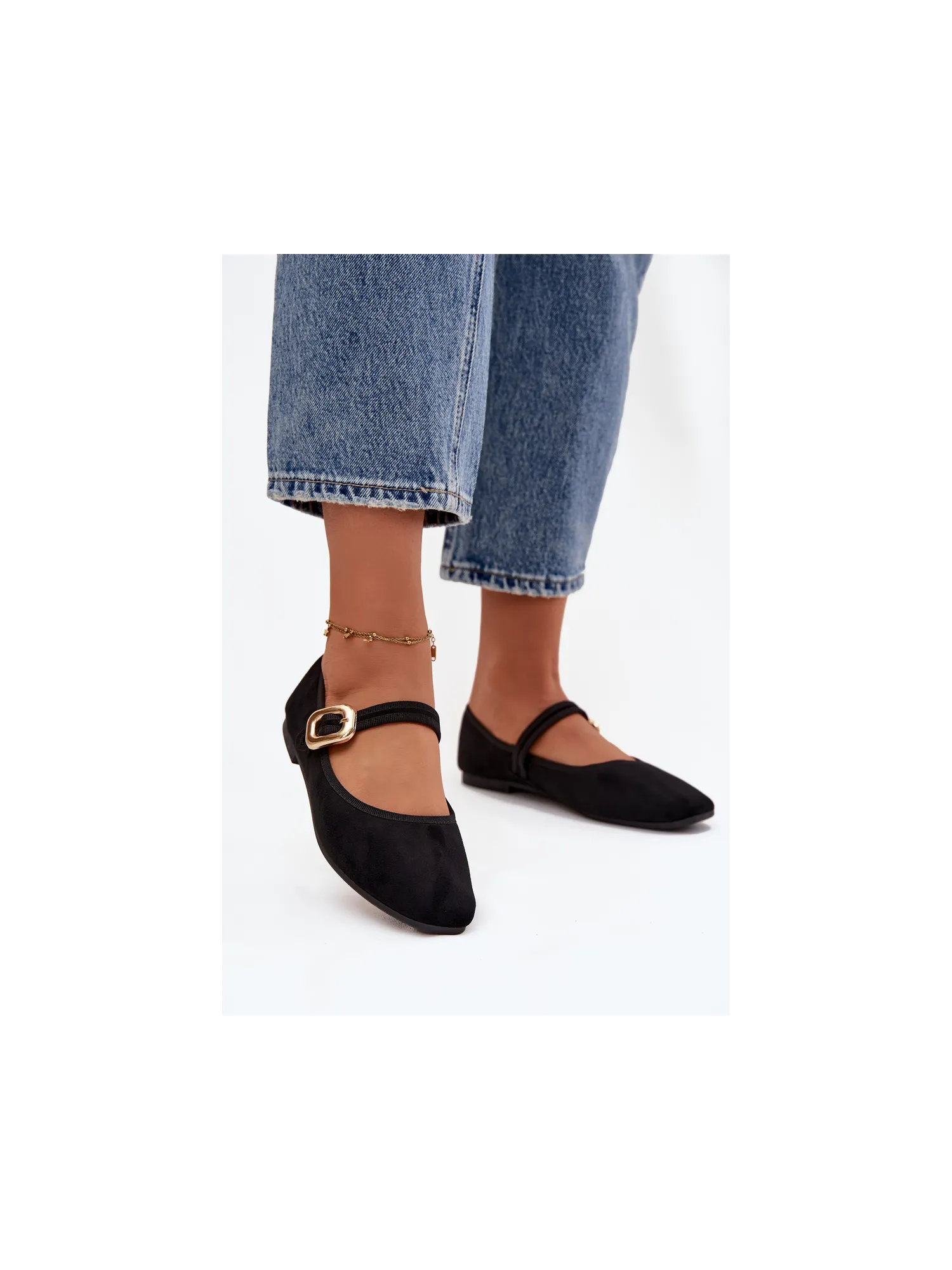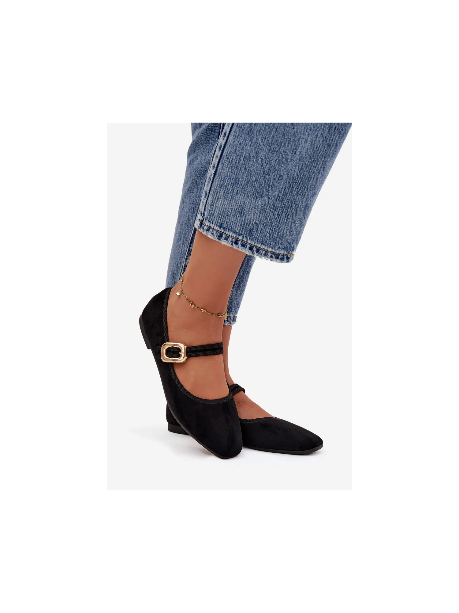 Women's ballerinas made of soft eco-suede. The flat-heeled design guarantees all-day comfort, and the gently rounded toes give the overall subtle, feminine character. There is a strap with a gold buckle on the midfoot, which draws attention and adds an elegant finishing touch. The soft insole provides comfort while walking. These are classic yet stylish ballerinas that will suit many outfits – from casual to more elegant. Perfect for work, meetings, or walks. When choosing a size, please refer to the size chart. When choosing a size, please refer to the size chart.