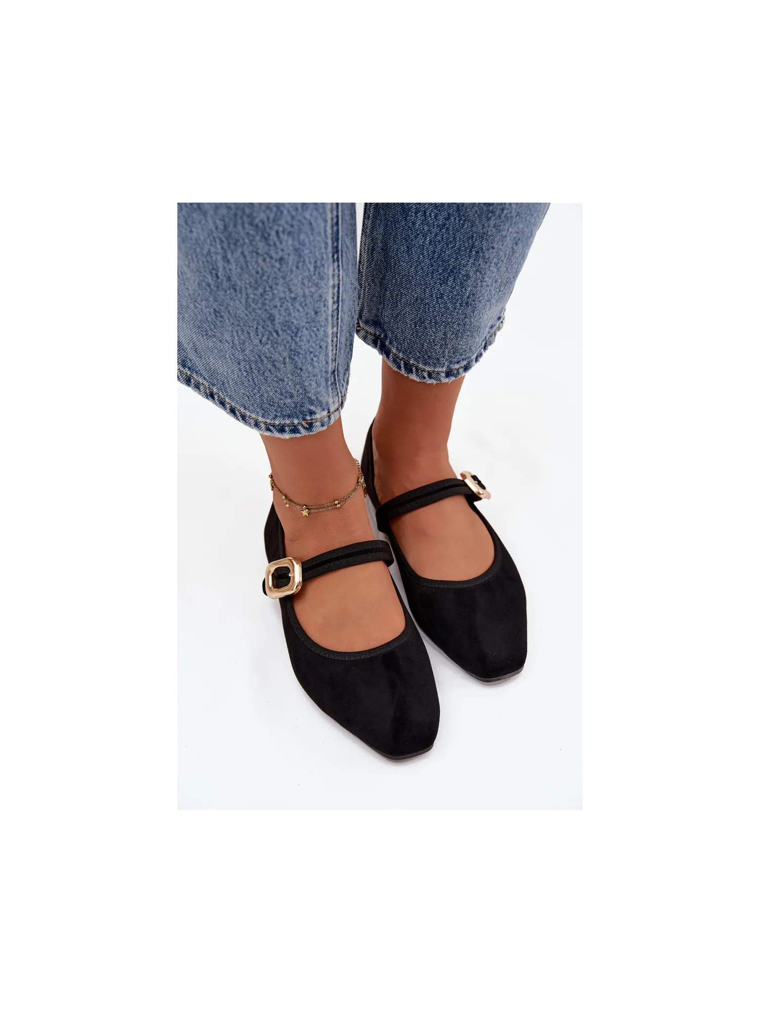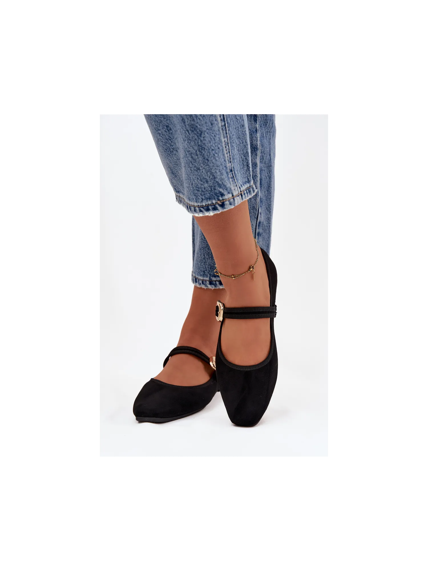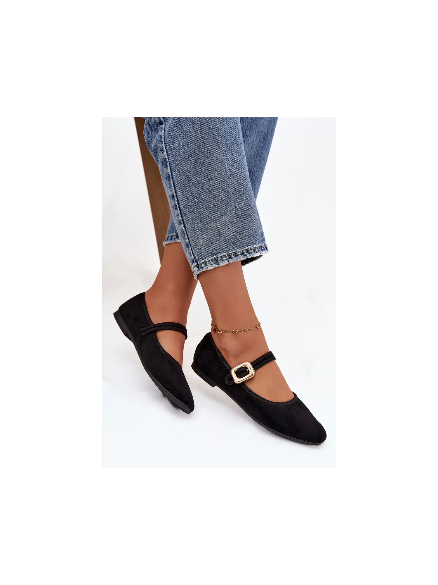 Women's ballerinas made of soft eco-suede. The flat-heeled design guarantees all-day comfort, and the gently rounded toes give the overall subtle, feminine character. There is a strap with a gold buckle on the midfoot, which draws attention and adds an elegant finishing touch. The soft insole provides comfort while walking. These are classic yet stylish ballerinas that will suit many outfits – from casual to more elegant. Perfect for work, meetings, or walks. When choosing a size, please refer to the size chart. When choosing a size, please refer to the size chart.