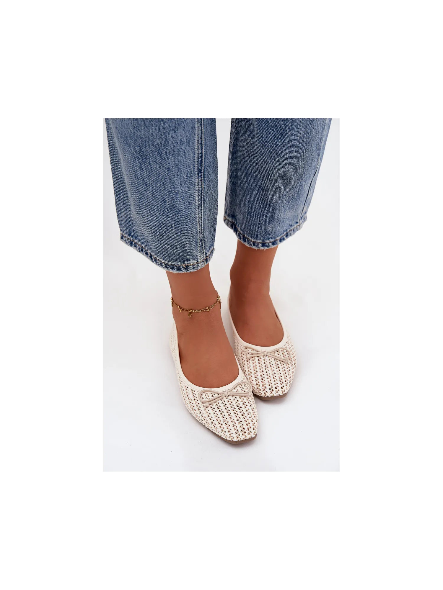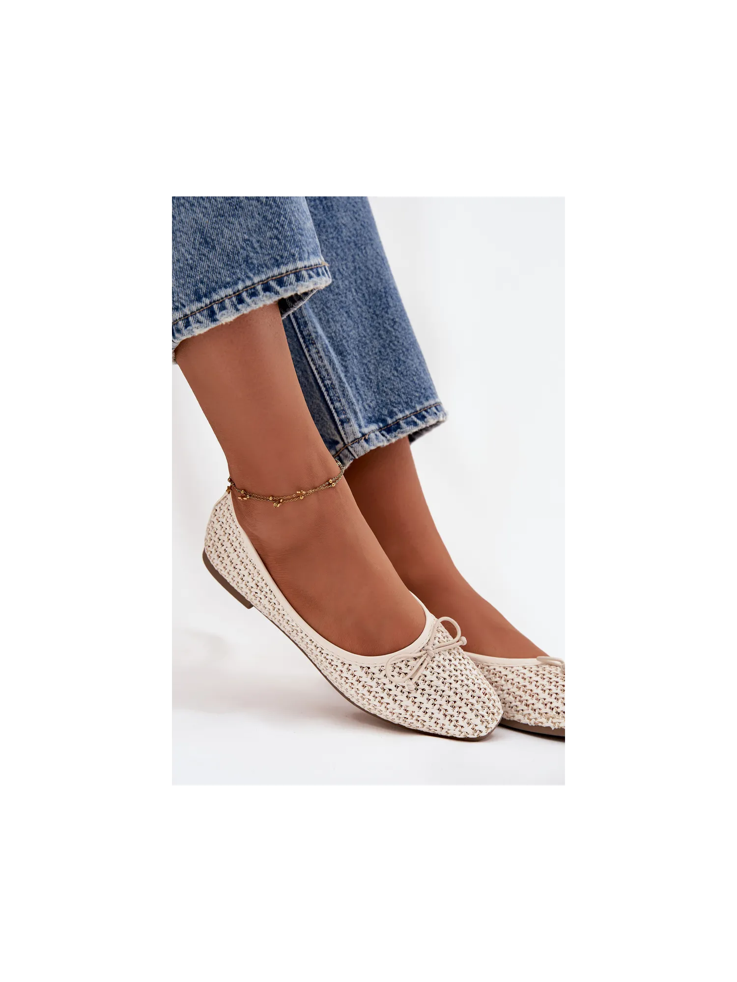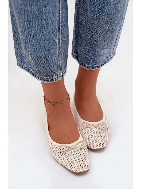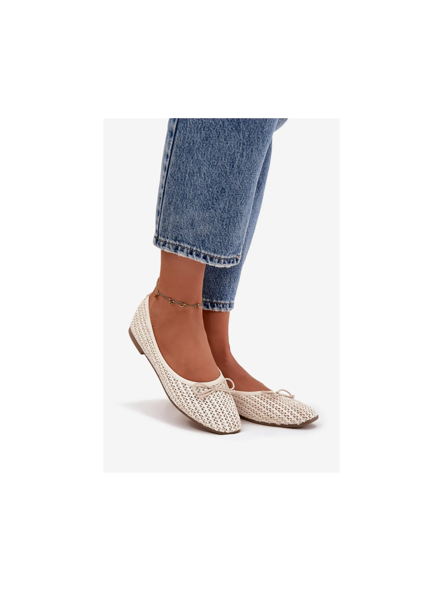 Women's ballerinas made from woven material are lightweight and stylish footwear perfect for everyday wear. The model with rounded toes looks classic and feminine, and the flat sole provides comfort while wearing. There is a cute bow tie at the front, which adds a delicate, girlie character to the shoes. The interior features a soft insole made of eco-leather, ensuring comfort all day long. Ideal for work, walks, or everyday outings. When choosing your size, please refer to the size chart. When choosing a size, please refer to the size chart.