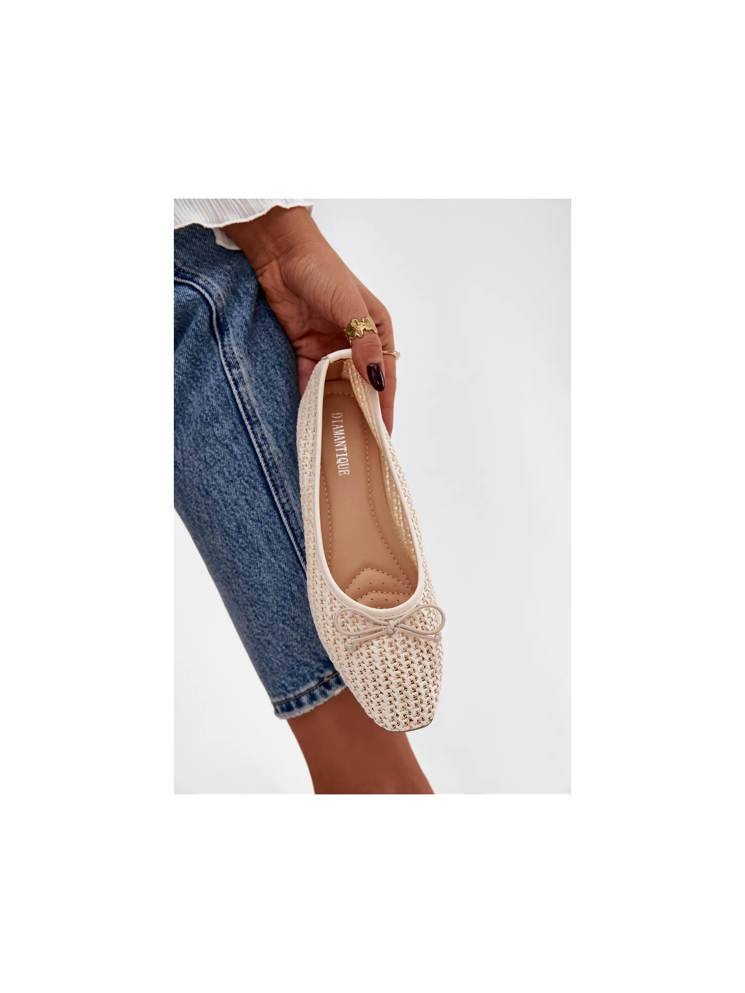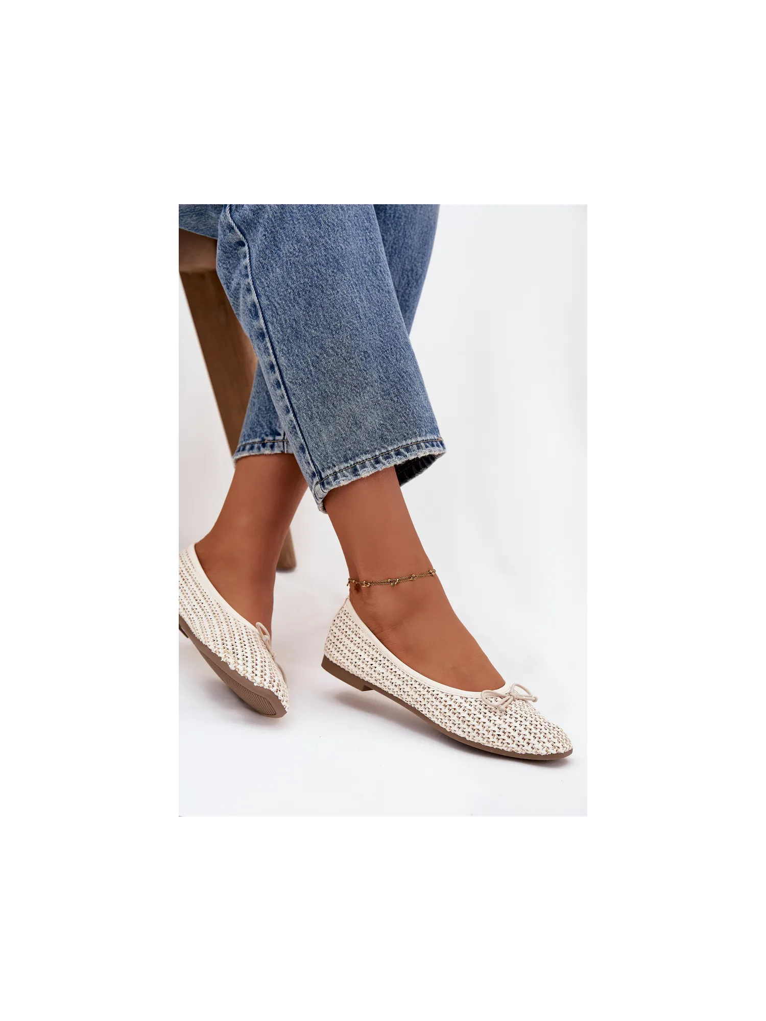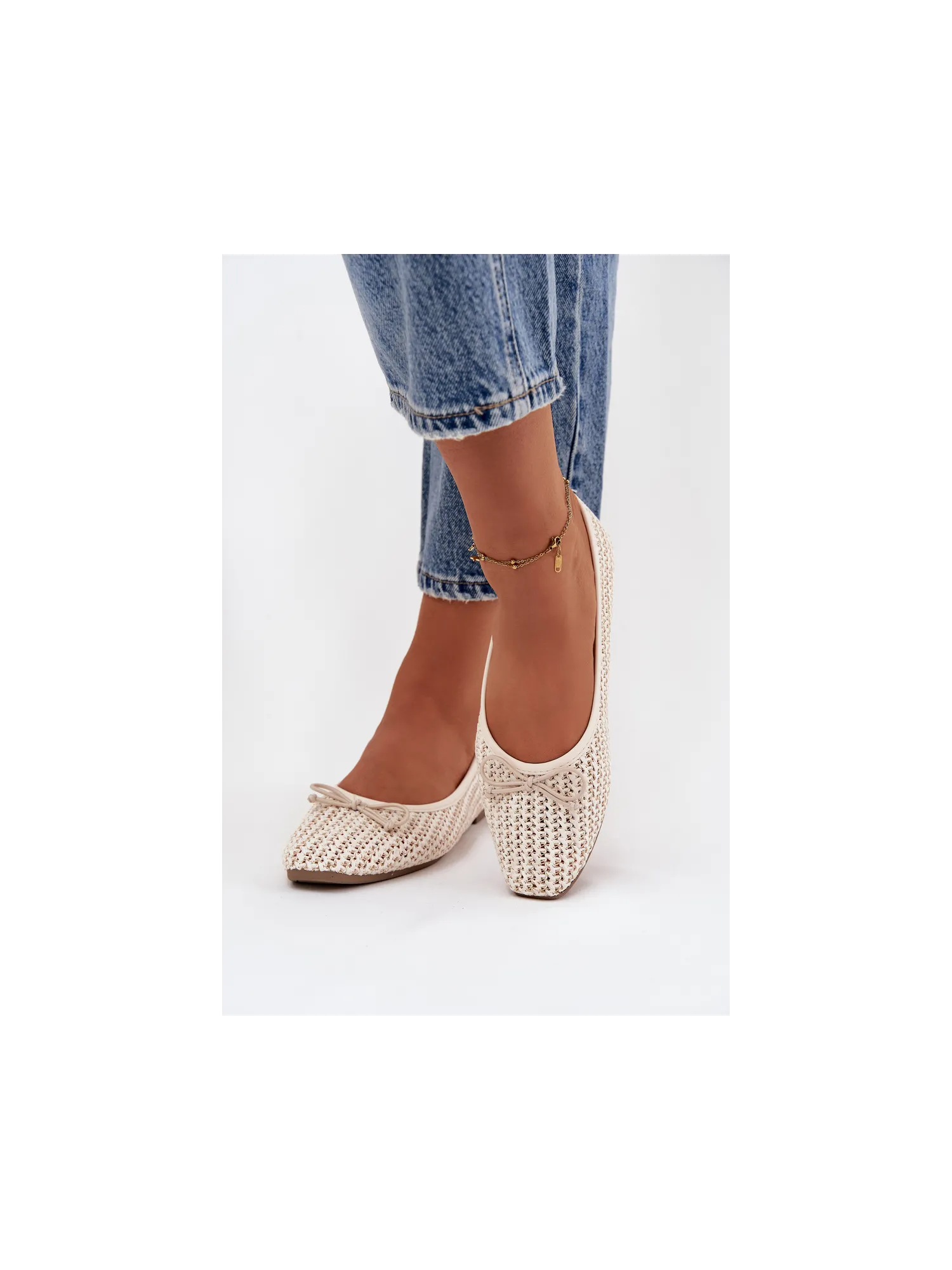 Women's ballerinas made from woven material are lightweight and stylish footwear perfect for everyday wear. The model with rounded toes looks classic and feminine, and the flat sole provides comfort while wearing. There is a cute bow tie at the front, which adds a delicate, girlie character to the shoes. The interior features a soft insole made of eco-leather, ensuring comfort all day long. Ideal for work, walks, or everyday outings. When choosing your size, please refer to the size chart. When choosing a size, please refer to the size chart.