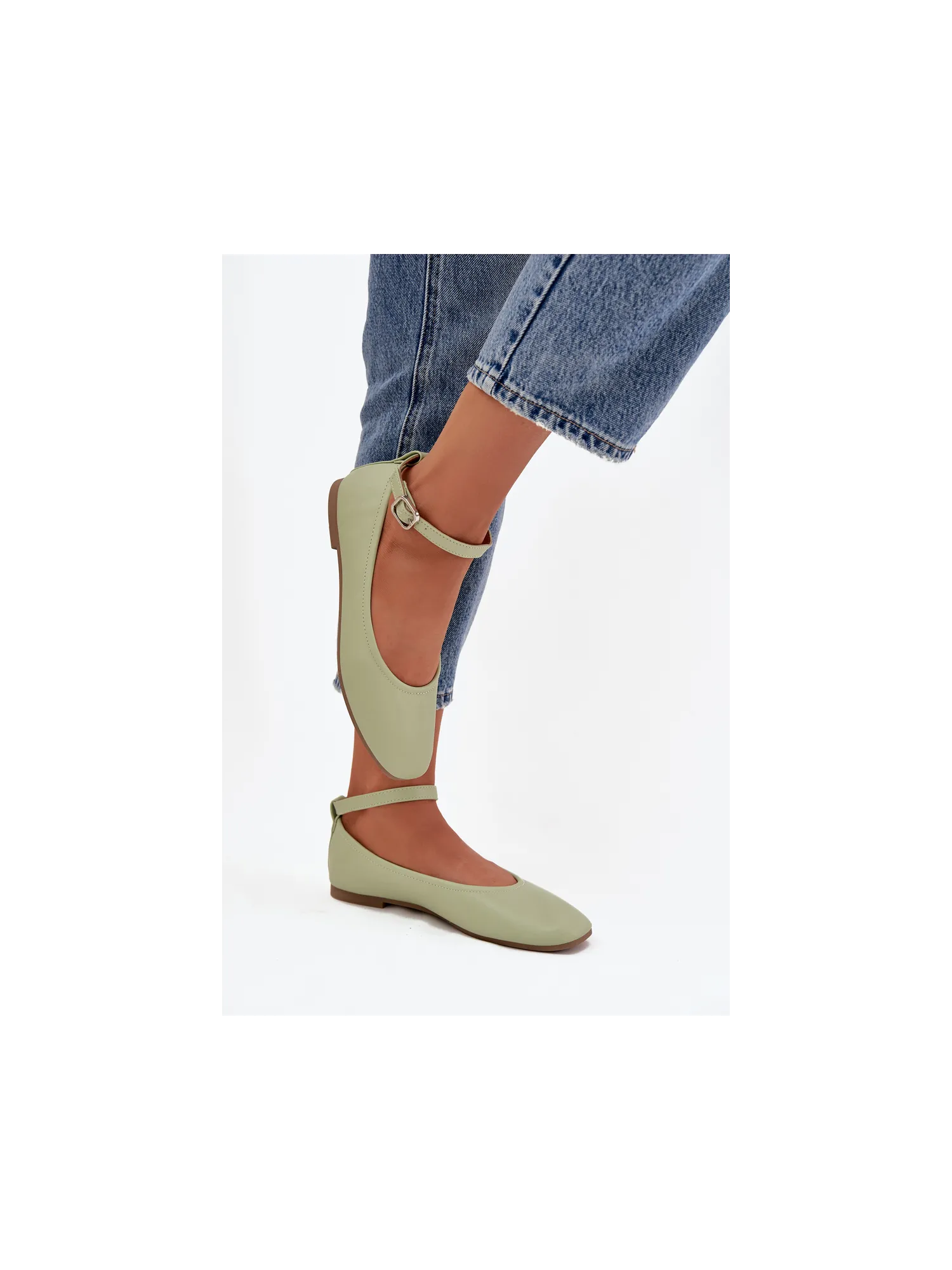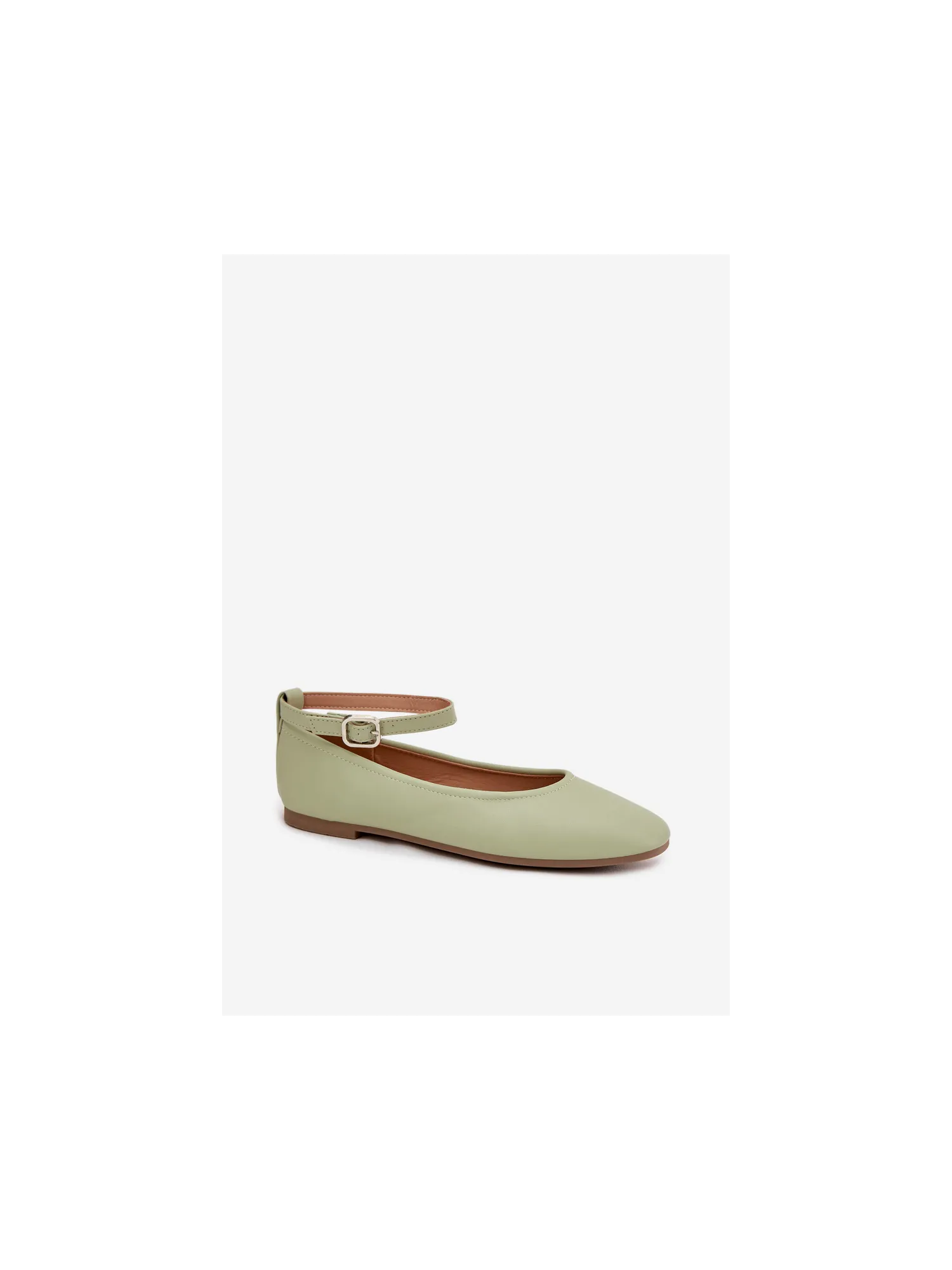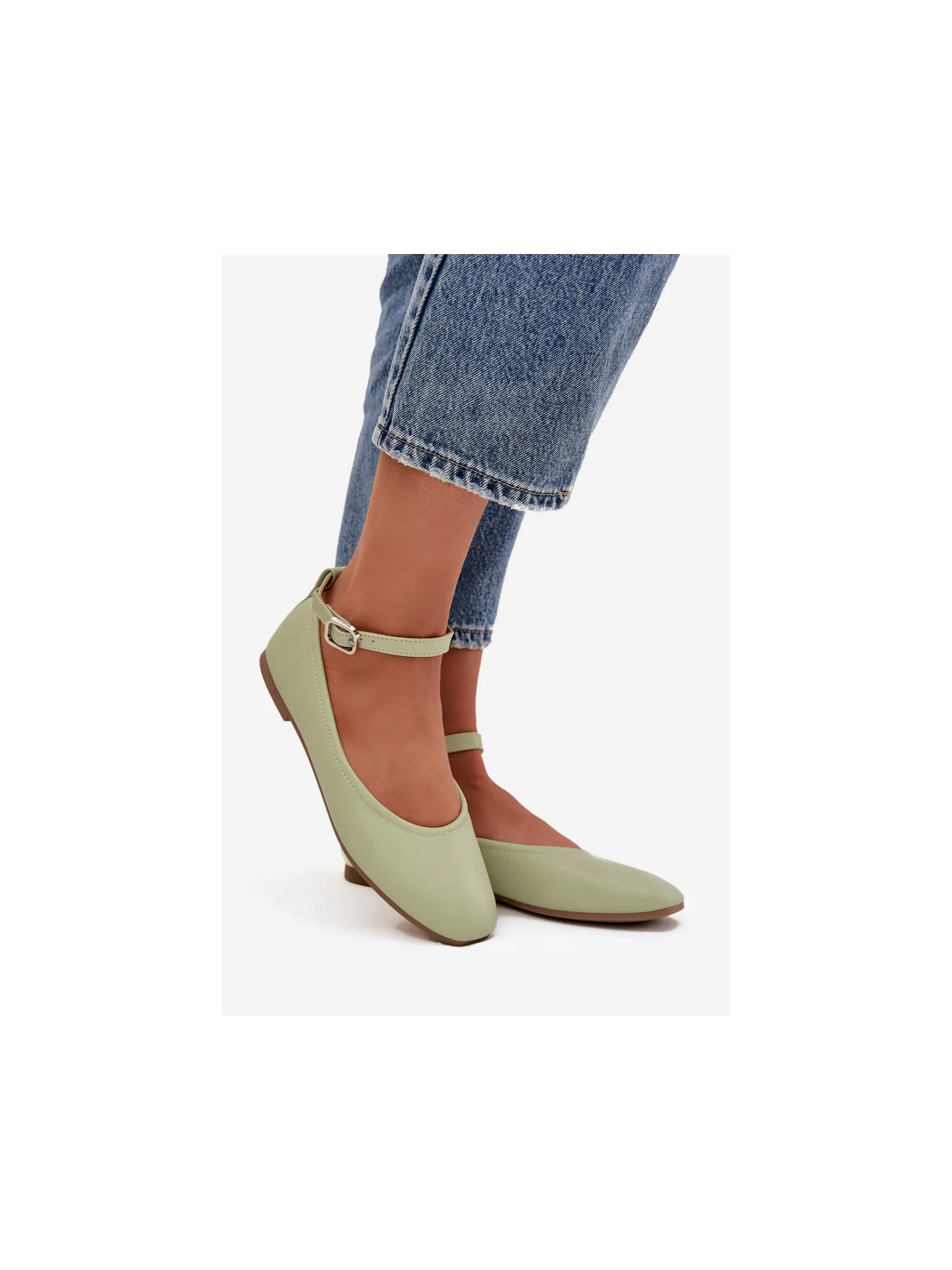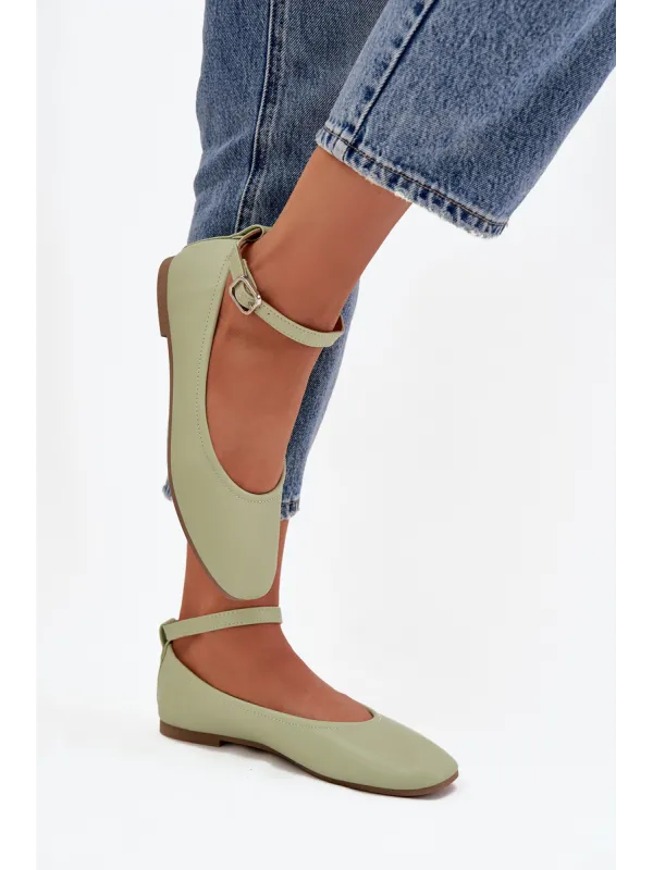 Moteriškos balerinos su dirželiu ir sagtimi žalios spalvos Janelor