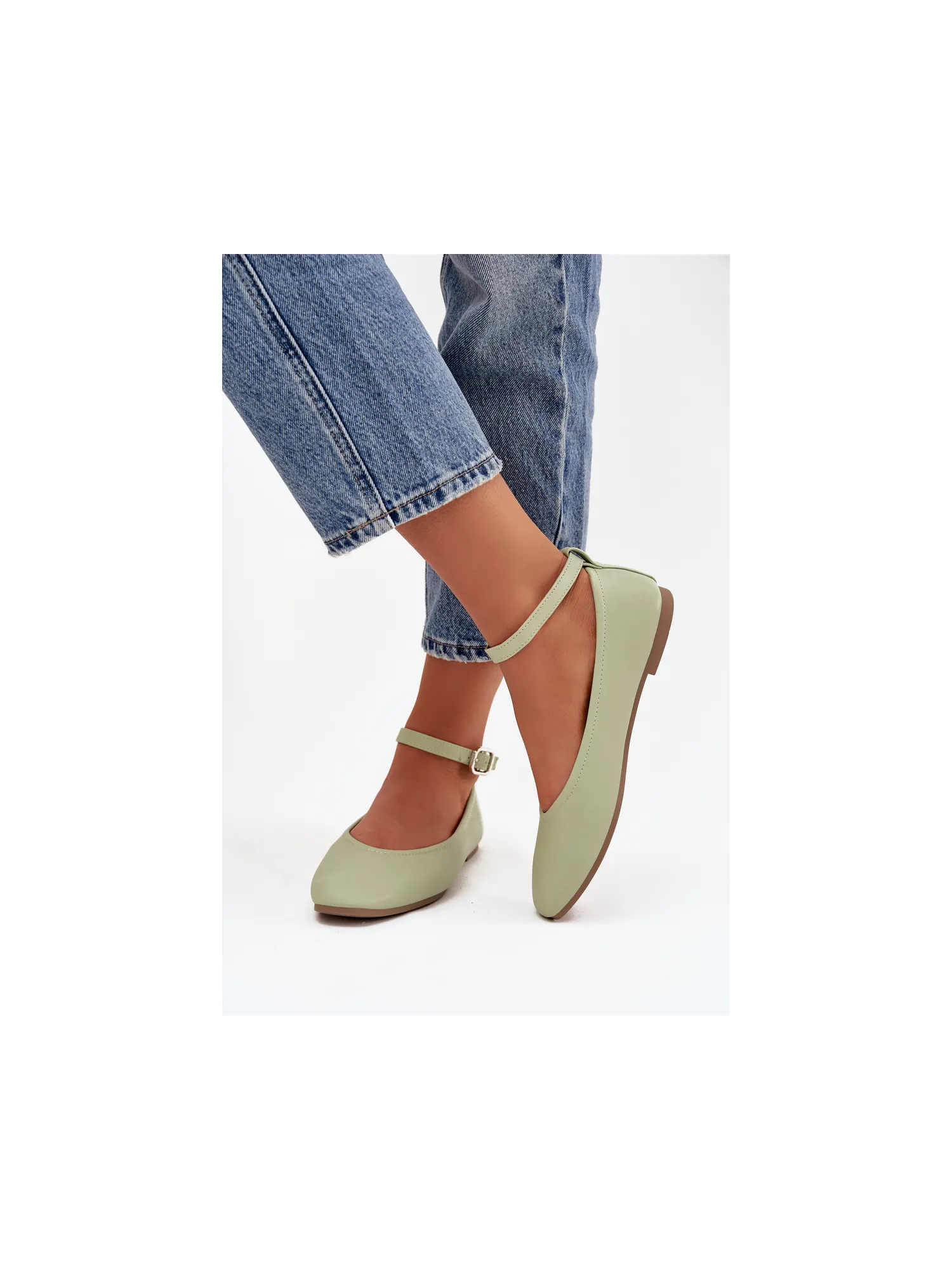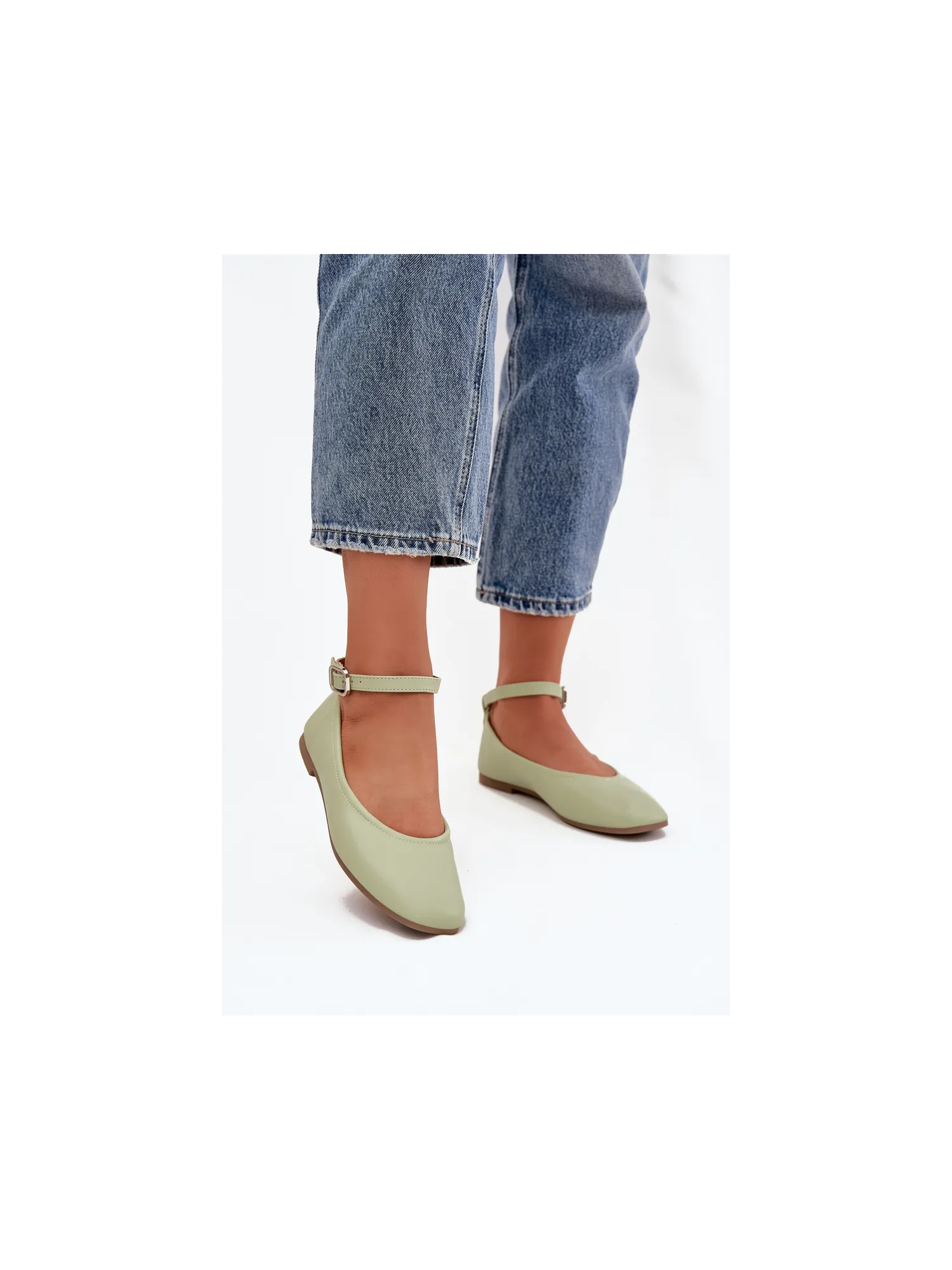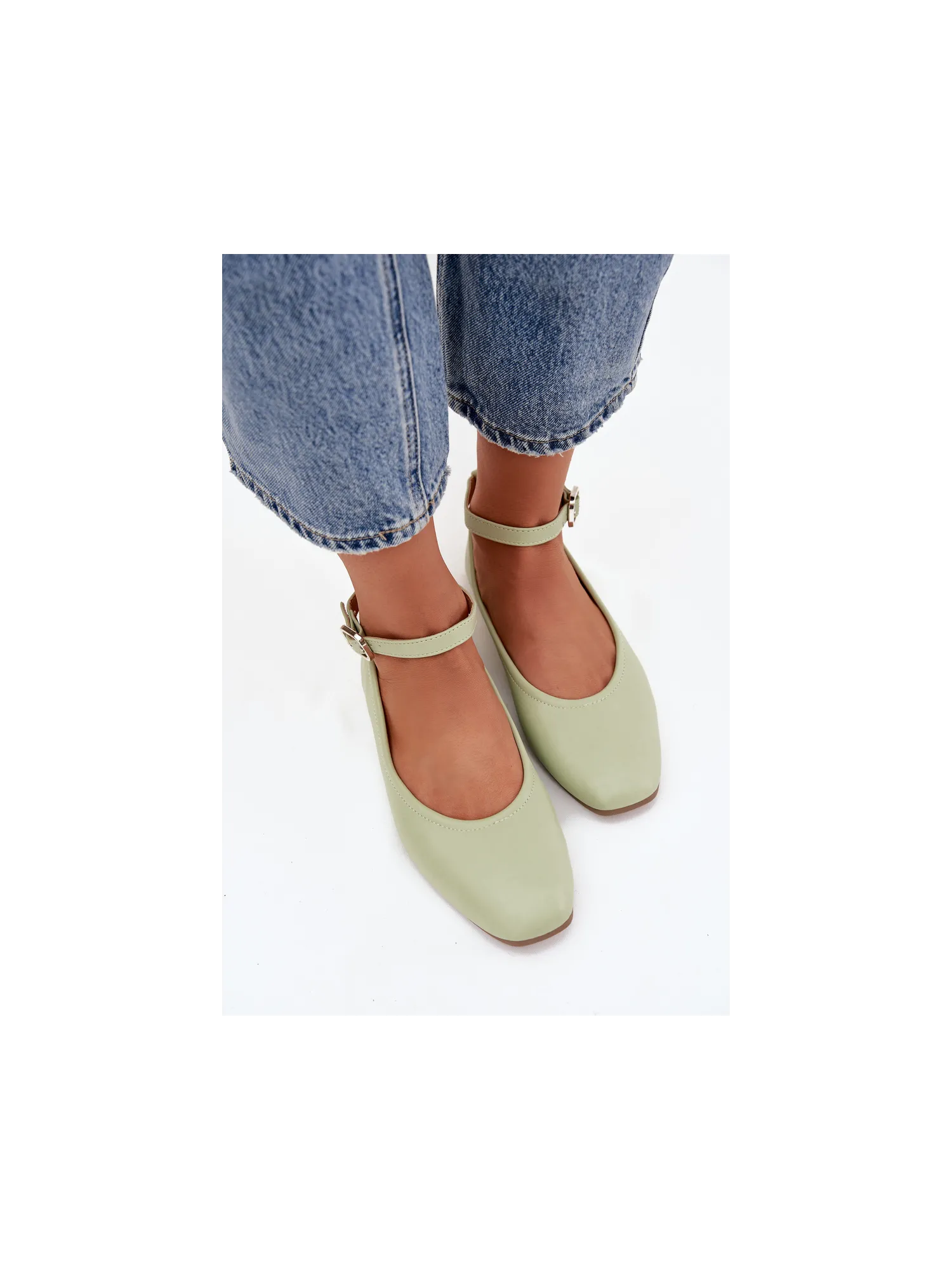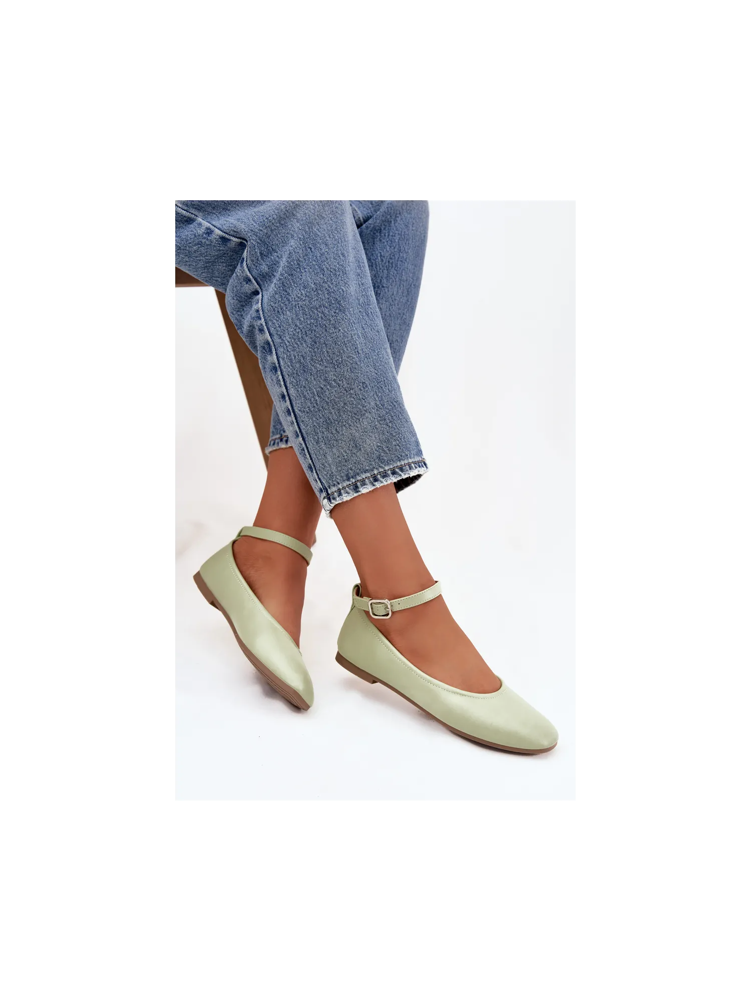 Moteriškos balerinos su dirželiu ir sagtimi žalios spalvos Janelor