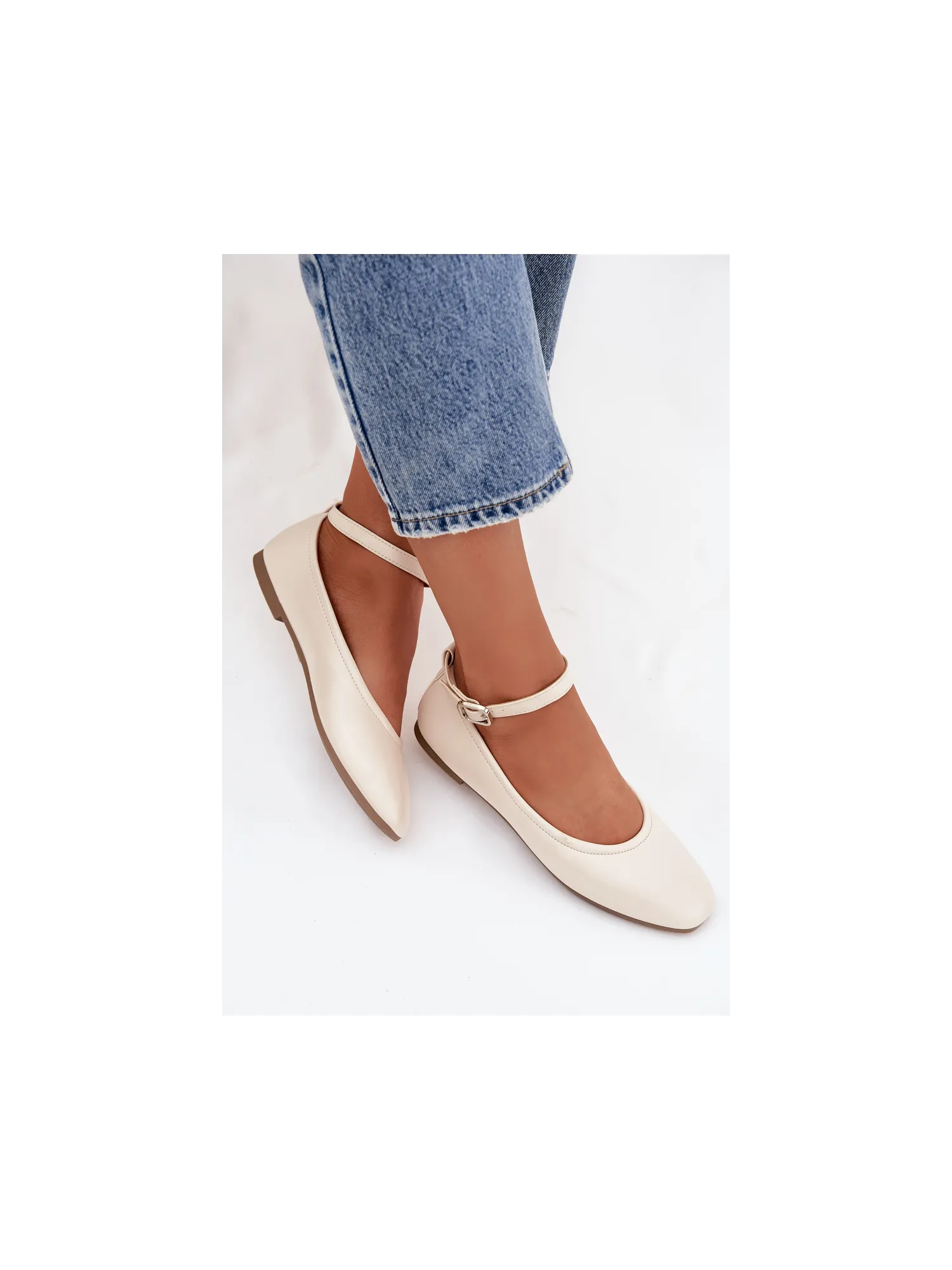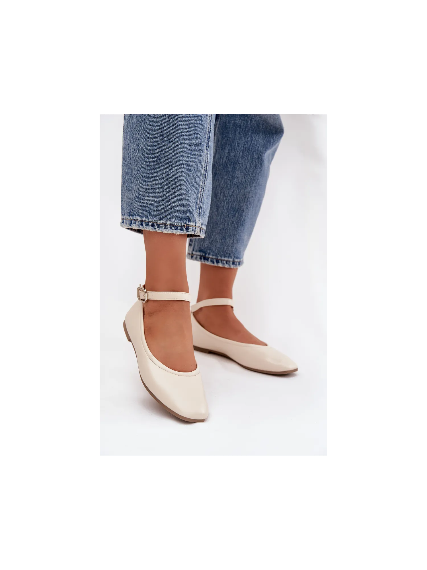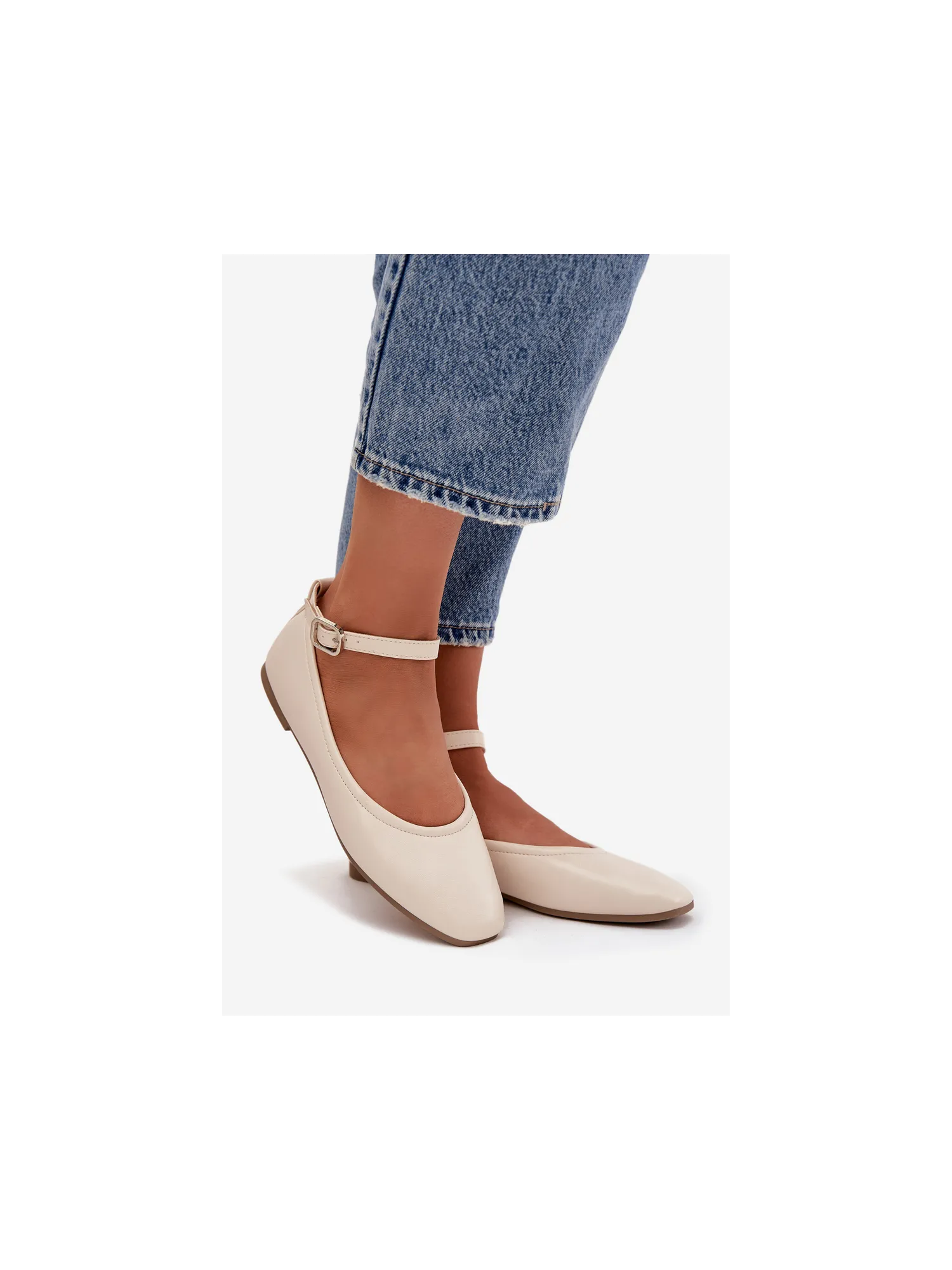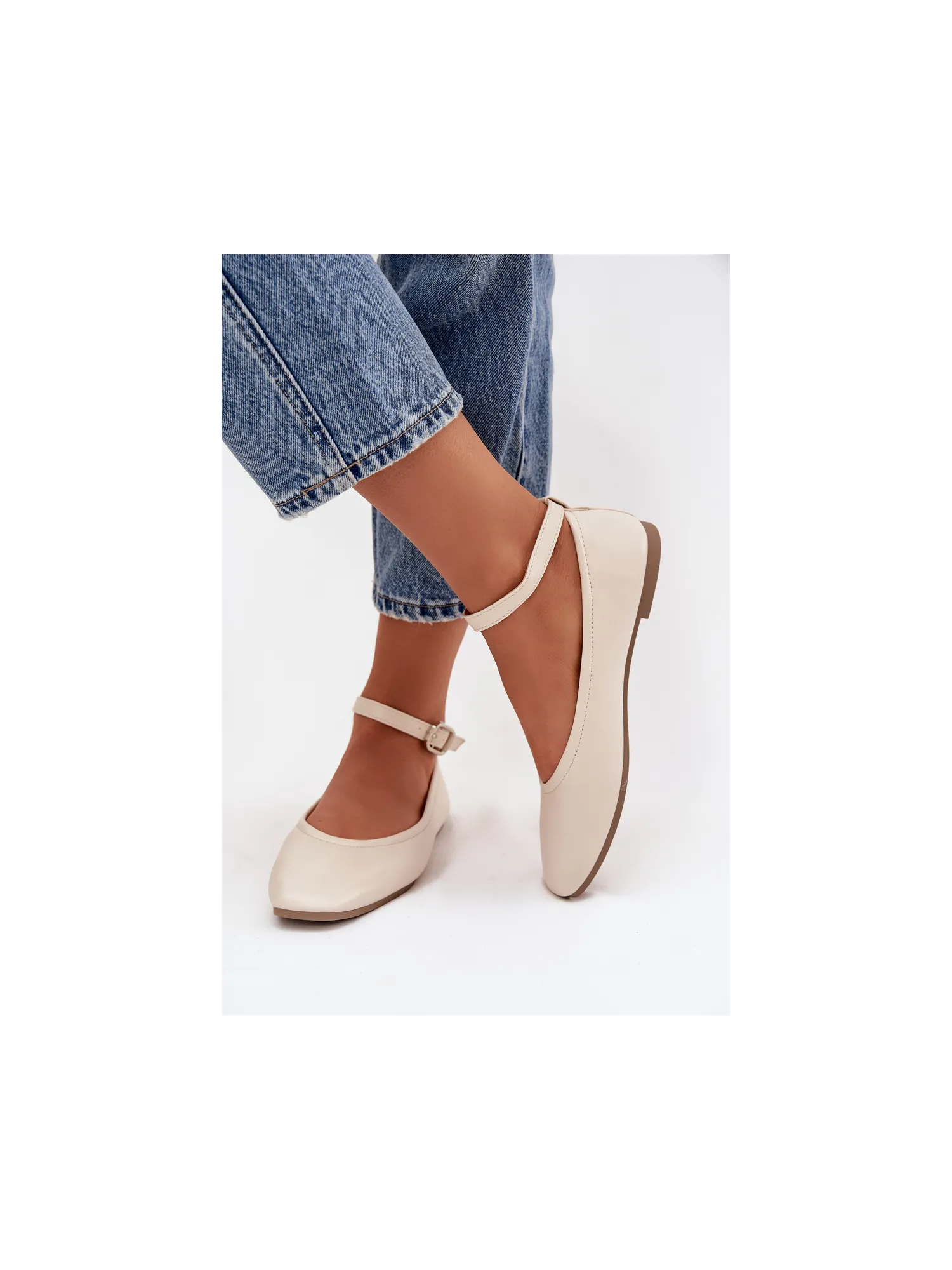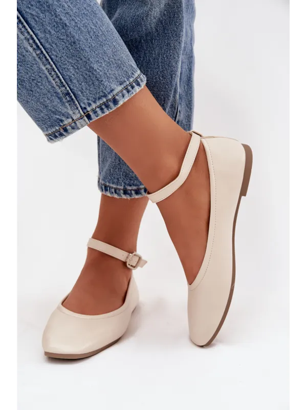 Moteriškos balerinos su dirželiu ir sagtimi smėlio spalvos Janelor