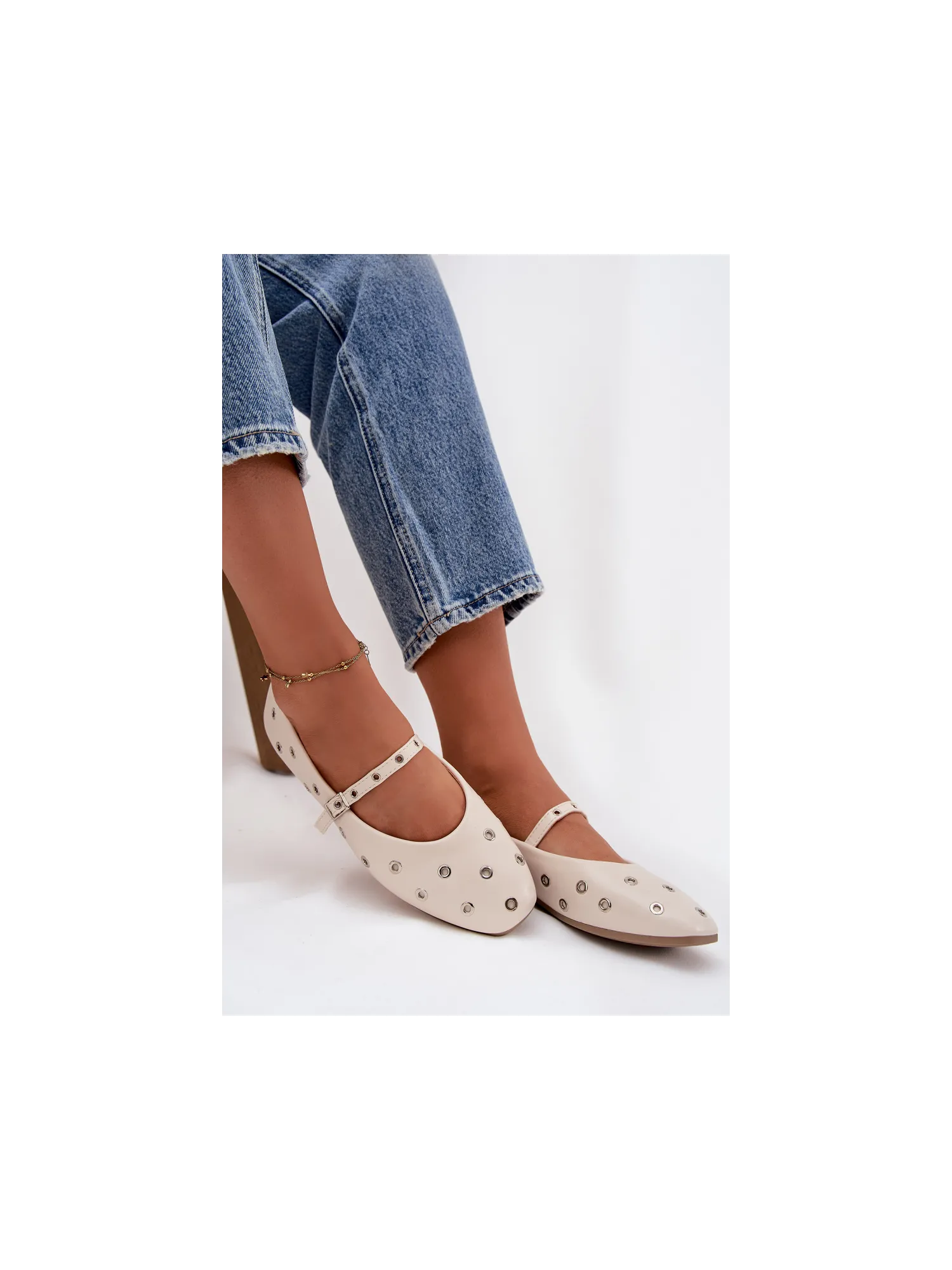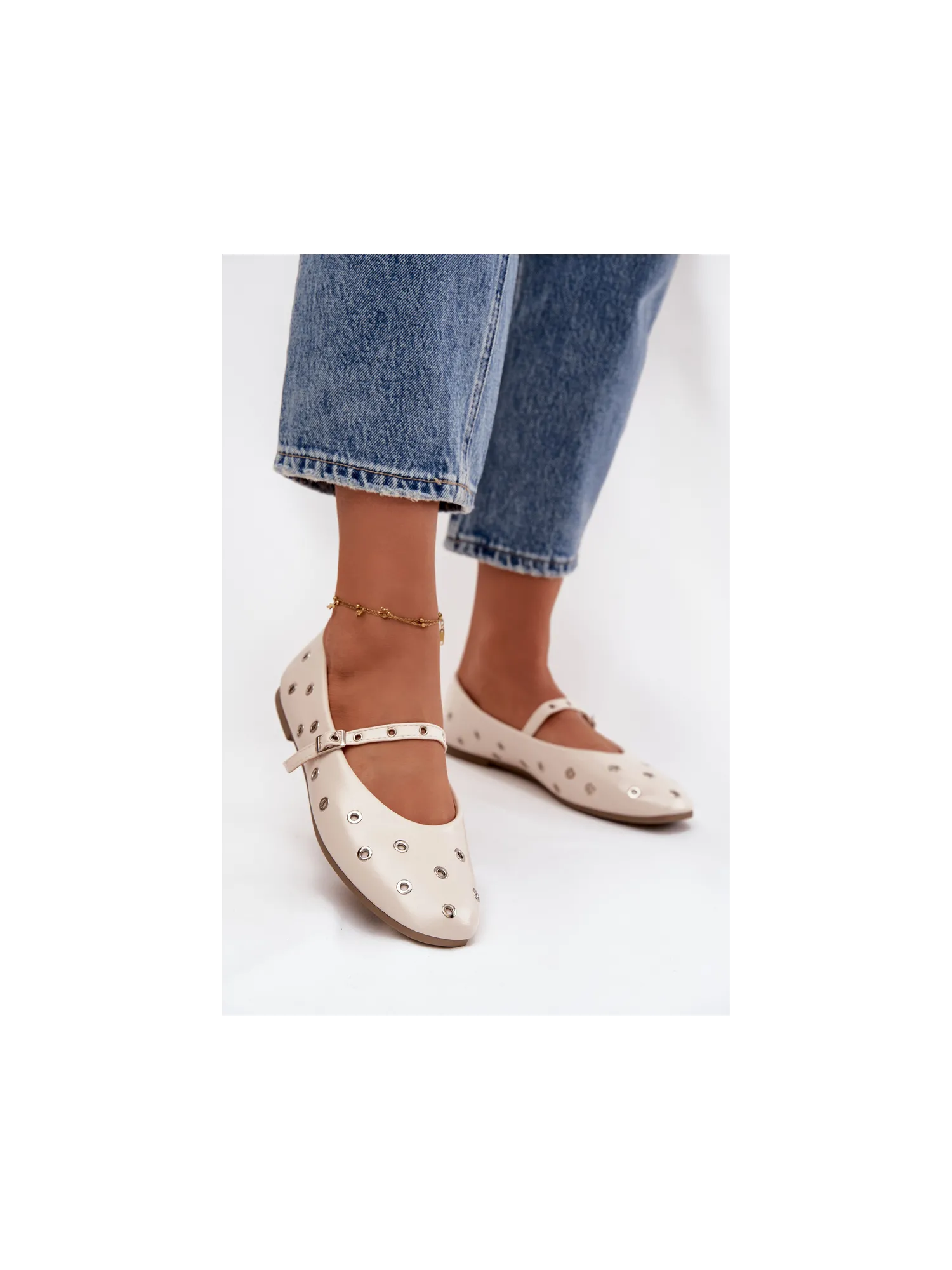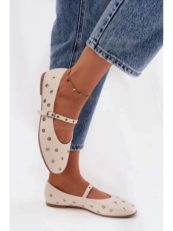 Moteriškos balerinos su dirželiu ir sagtimi smėlio spalvos Janelor