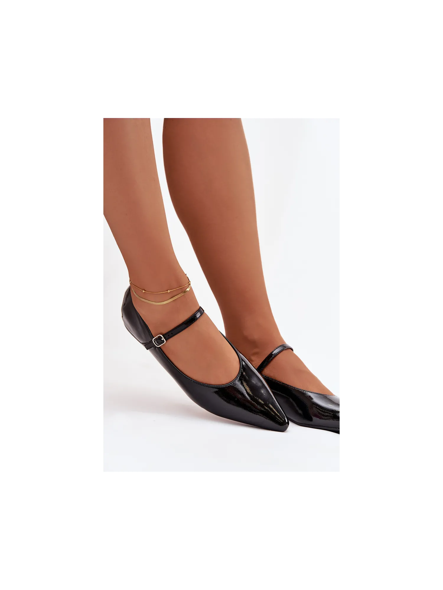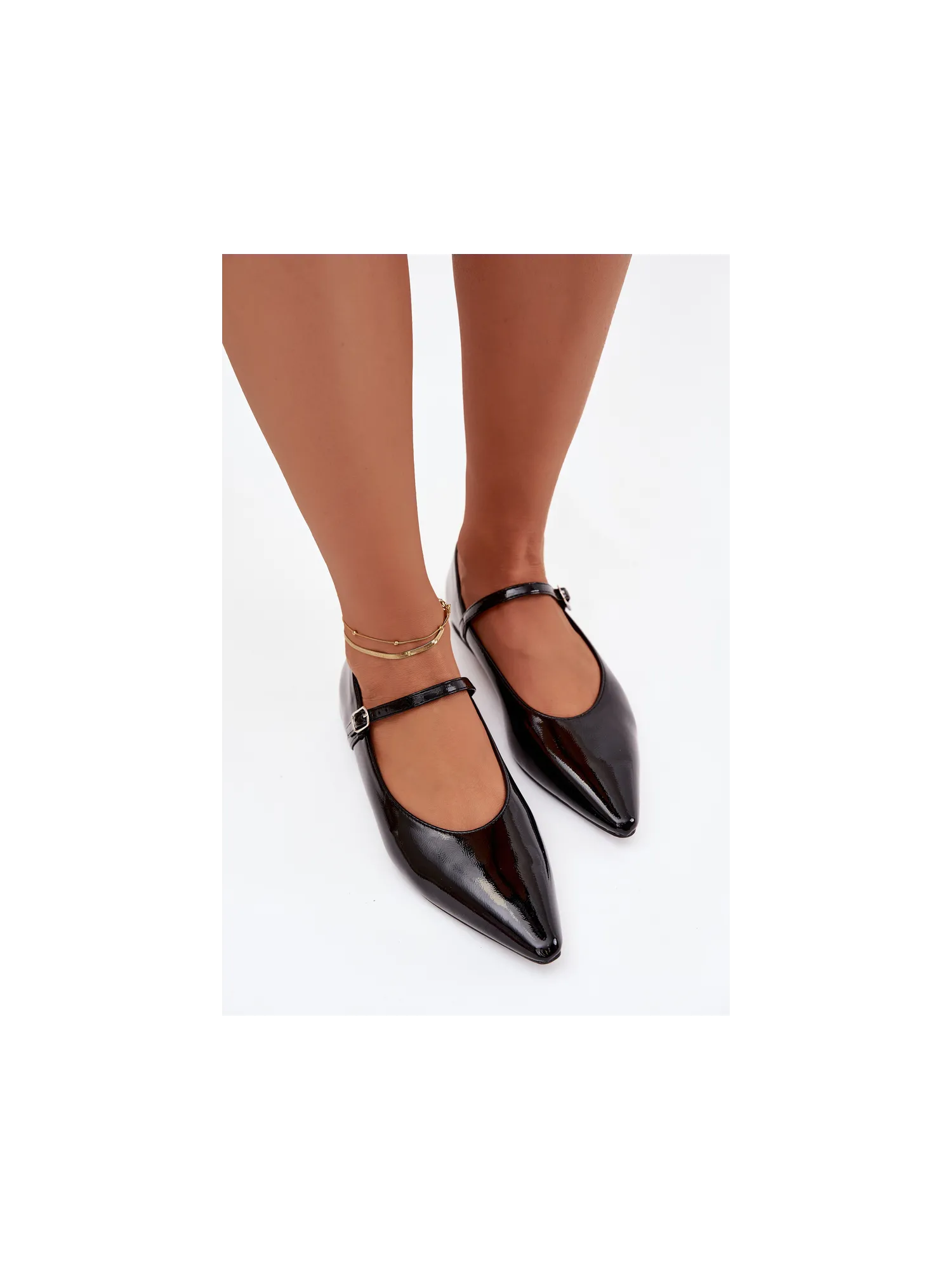 Women's ballerinas made of patent eco leather are an elegant option for women who value style and comfort. The pointed toe model visually elongates the foot, and the flat heel provides all-day comfort. There is an adjustable strap on the instep, which increases stability and also serves as a fashionable, stylish accent. This footwear is perfect for both elegant and everyday styles. Please refer to the size chart when choosing your size. When choosing a size, please refer to the size chart.