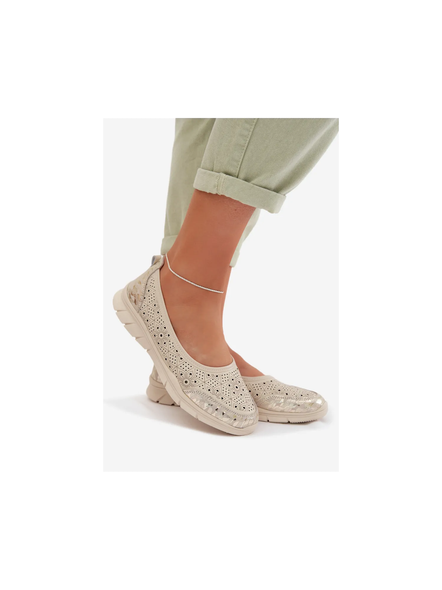 Women's ballerinas made from genuine leather are an option for women who value comfort and a subtle, feminine style. The open, patterned upper gives them lightness and provides breathability, making them ideal for warmer days. The slip-on design allows for quick wearing, and the exceptionally lightweight shape increases comfort for everyday wear. The soft Comfort Shoes insole cares for foot comfort, ensuring a pleasant fit all day long. These stylish ballerinas perfectly complement everyday and more feminine outfits. When choosing a size, please refer to the size chart.