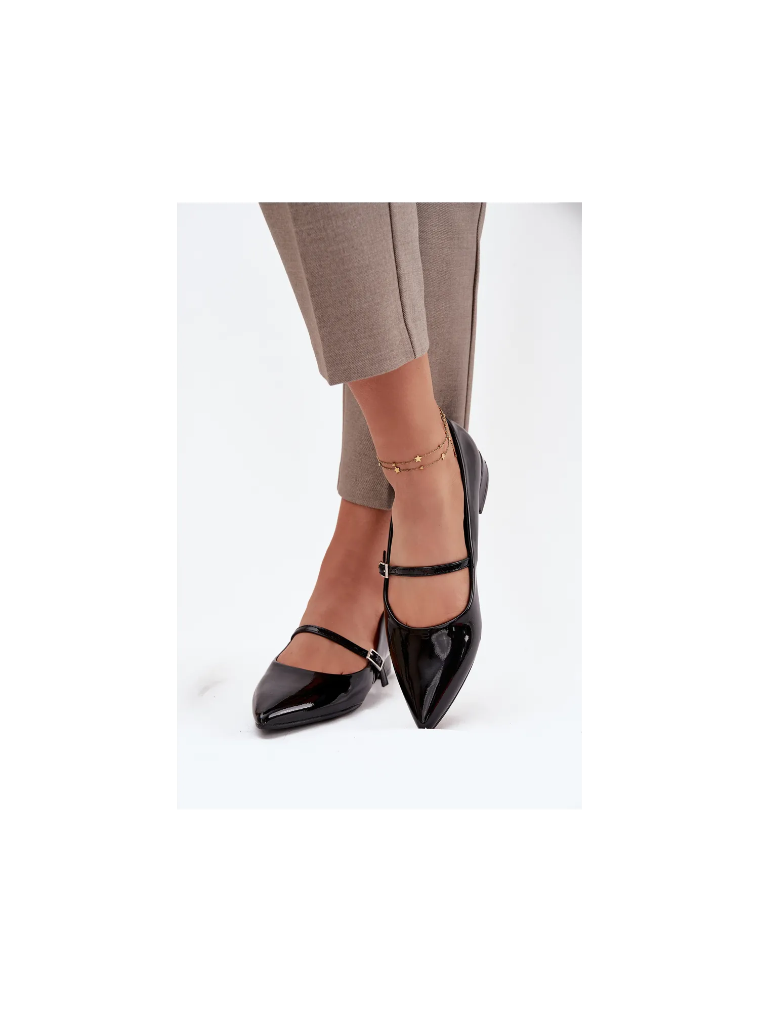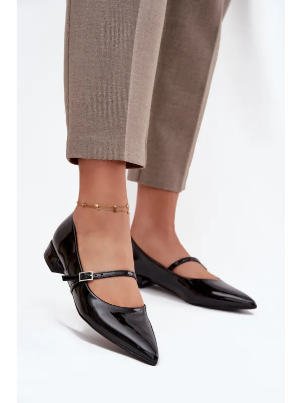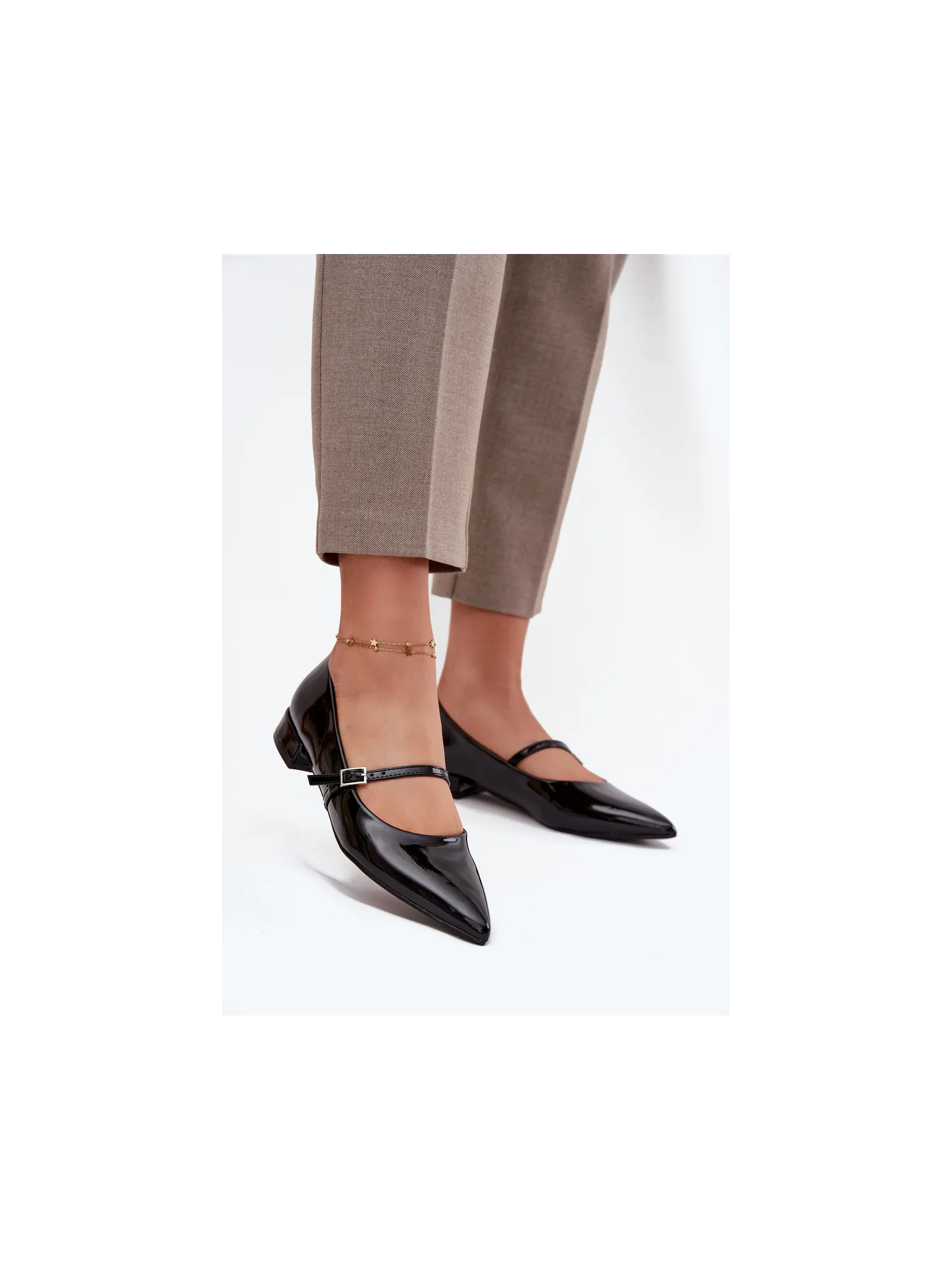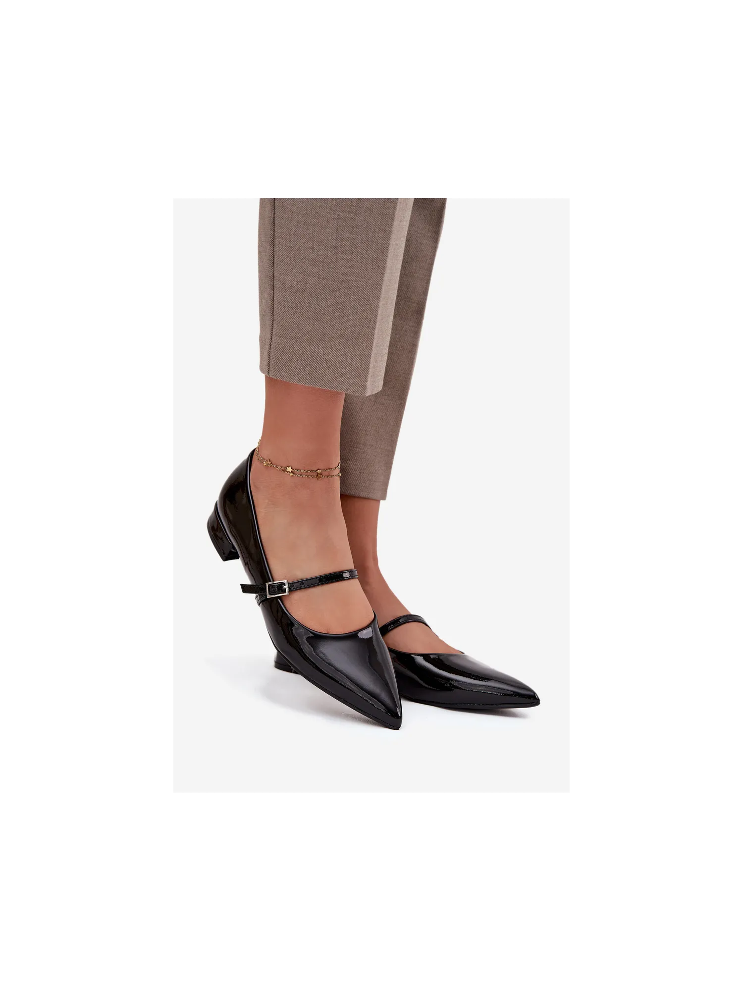 Women's ballerinas made from patent eco leather are an elegant model for everyday wear and special occasions. Set on a low heel, they guarantee comfort, and the pointed toes add style and visually elongate the foot. The strap across the instep not only decorates but also provides better stability. These are classic footwear that perfectly complement both casual and elegant outfits. When choosing a size, please refer to the size chart. When choosing a size, please refer to the size chart.