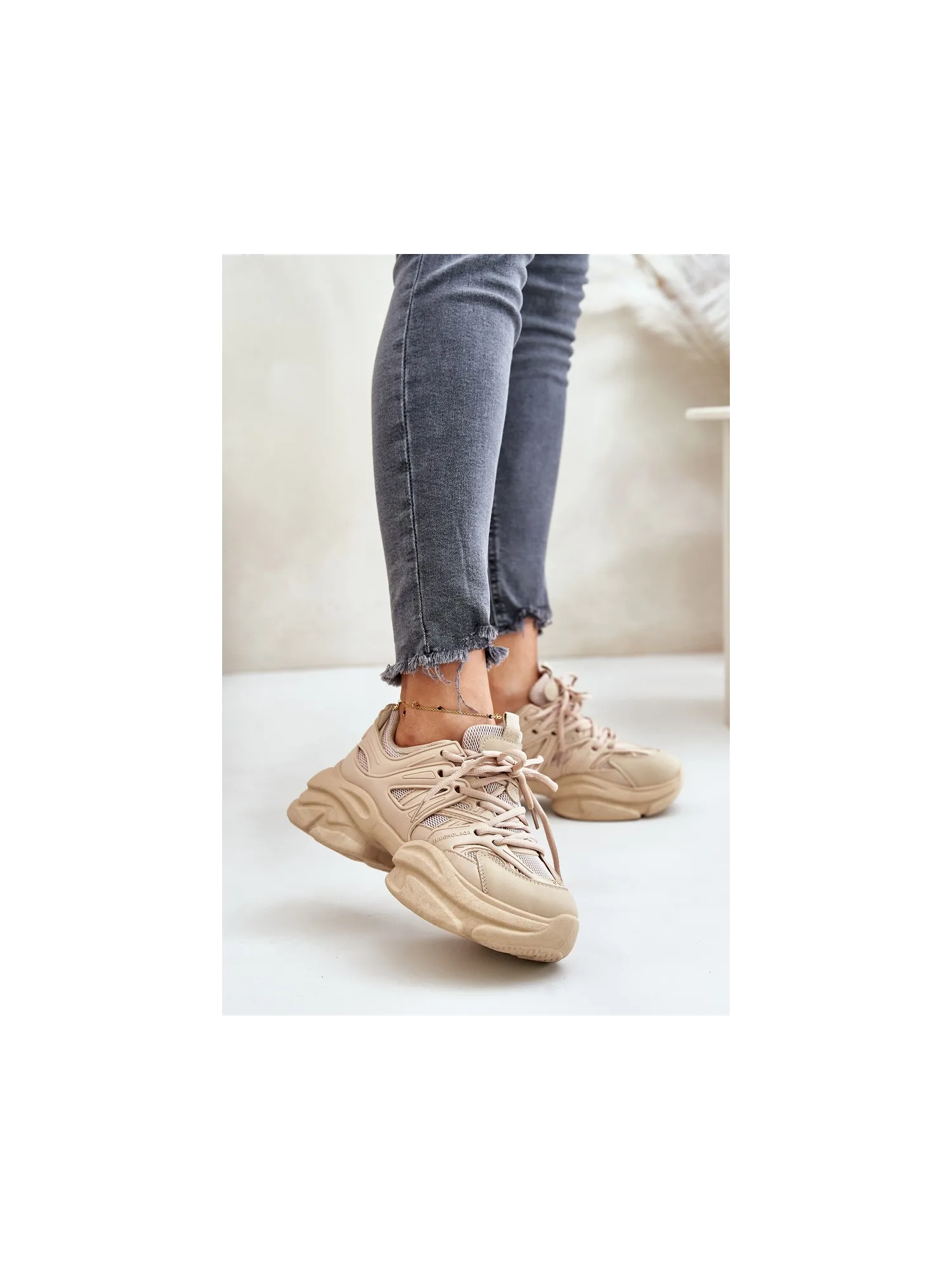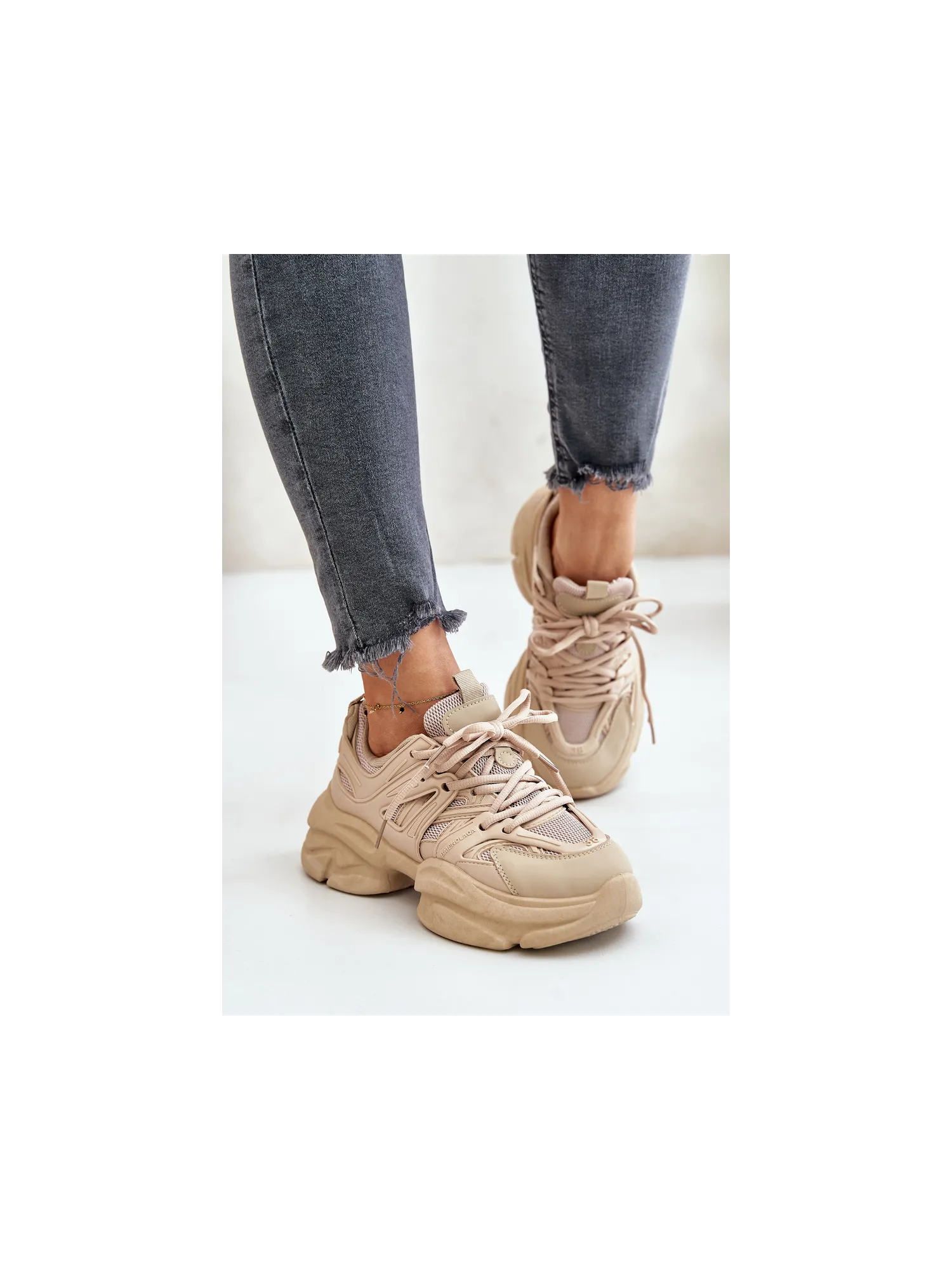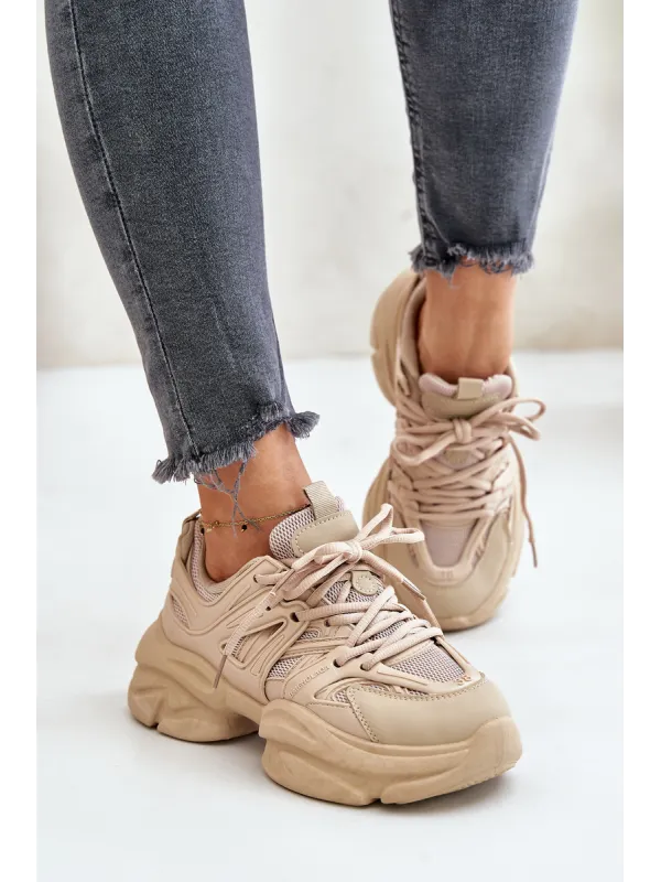 Lengvi odiniai sportbačiai ant platformos, smėlio spalvos, Artiker 55C0554