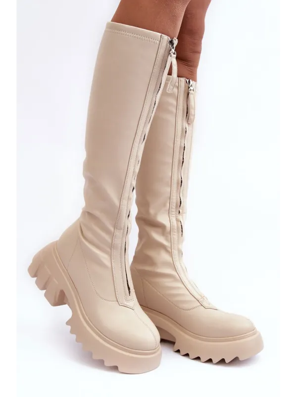 Lengvi odiniai sportbačiai ant platformos, smėlio spalvos, Artiker 55C0554