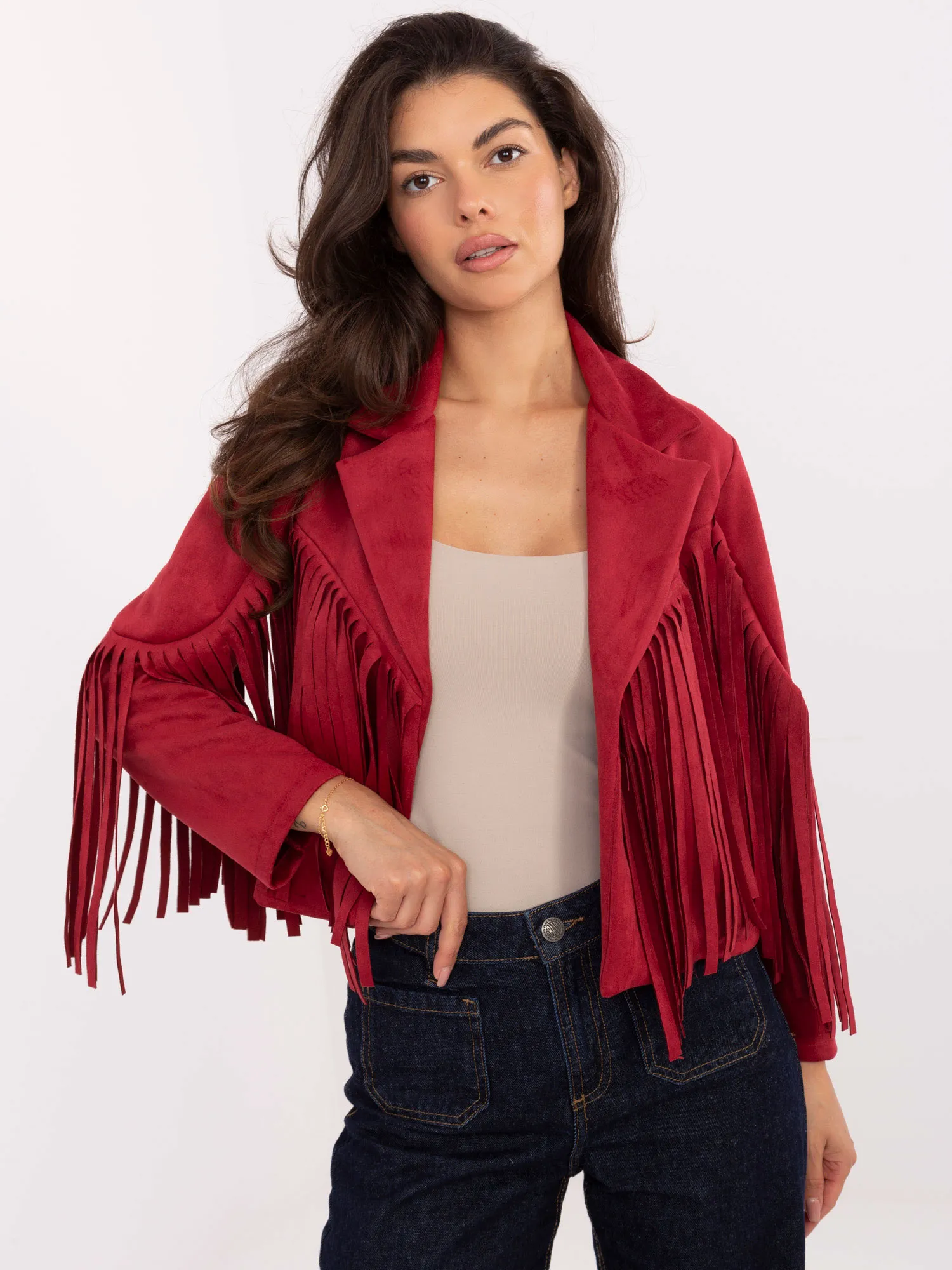 Modelis dėvi pirmąjį dydį. Modelio išmatavimai: ūgis 173 cm, krūtinės apimtis 85 cm, juosmuo 62 cm, klubai 95 cm.