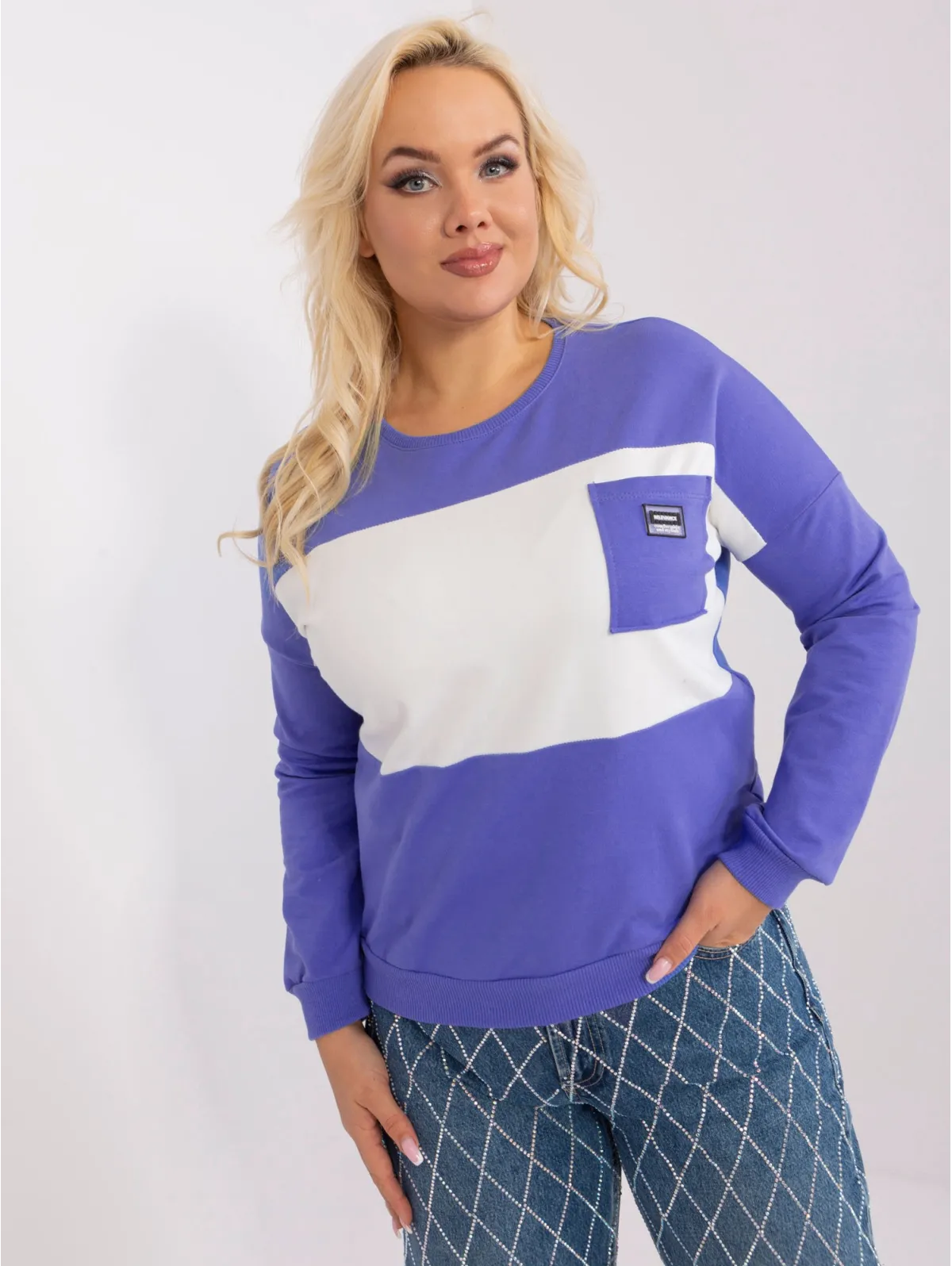 Purvina violetinė ir ekru medvilnė plius dydžio palaidinė .