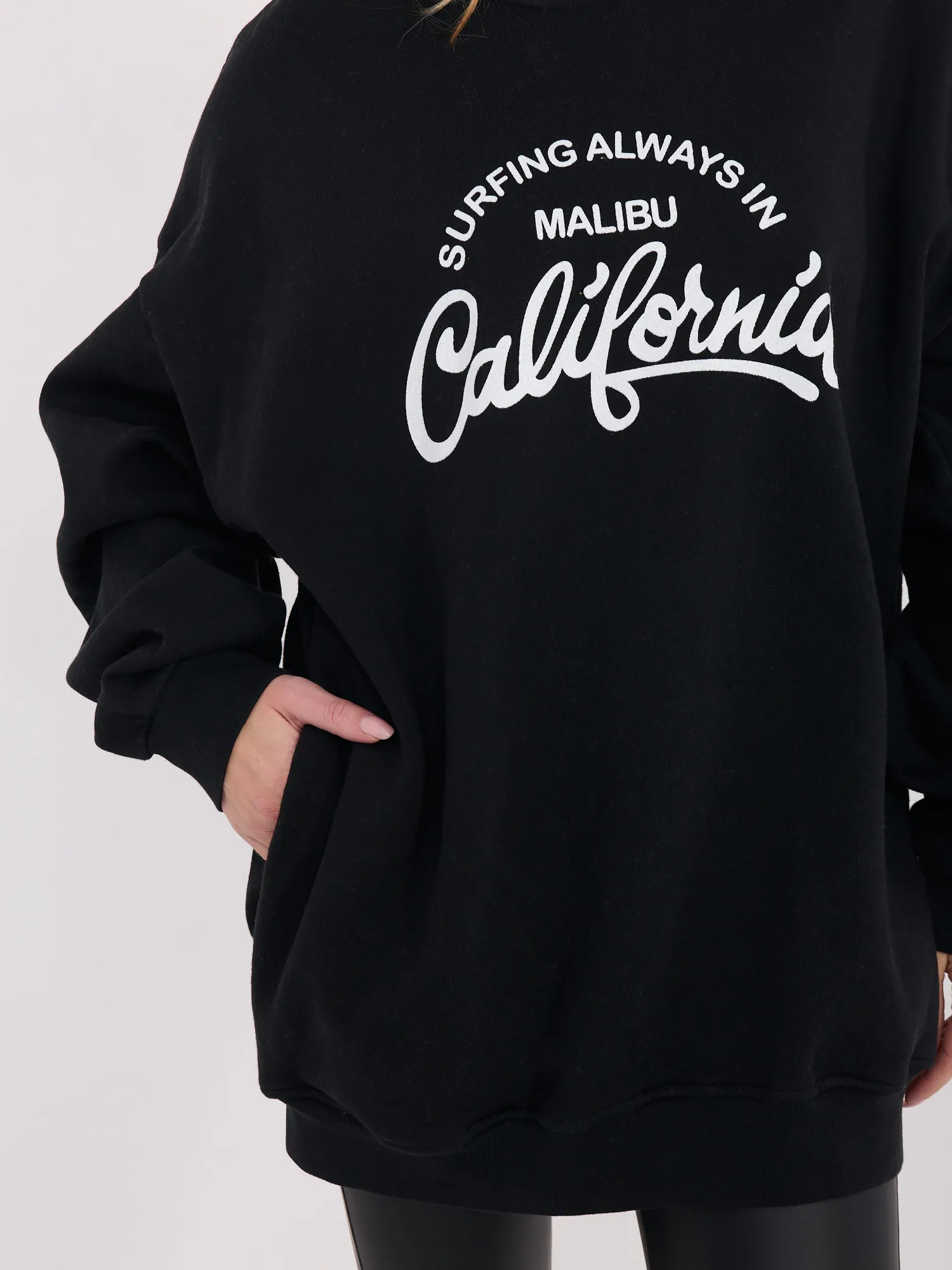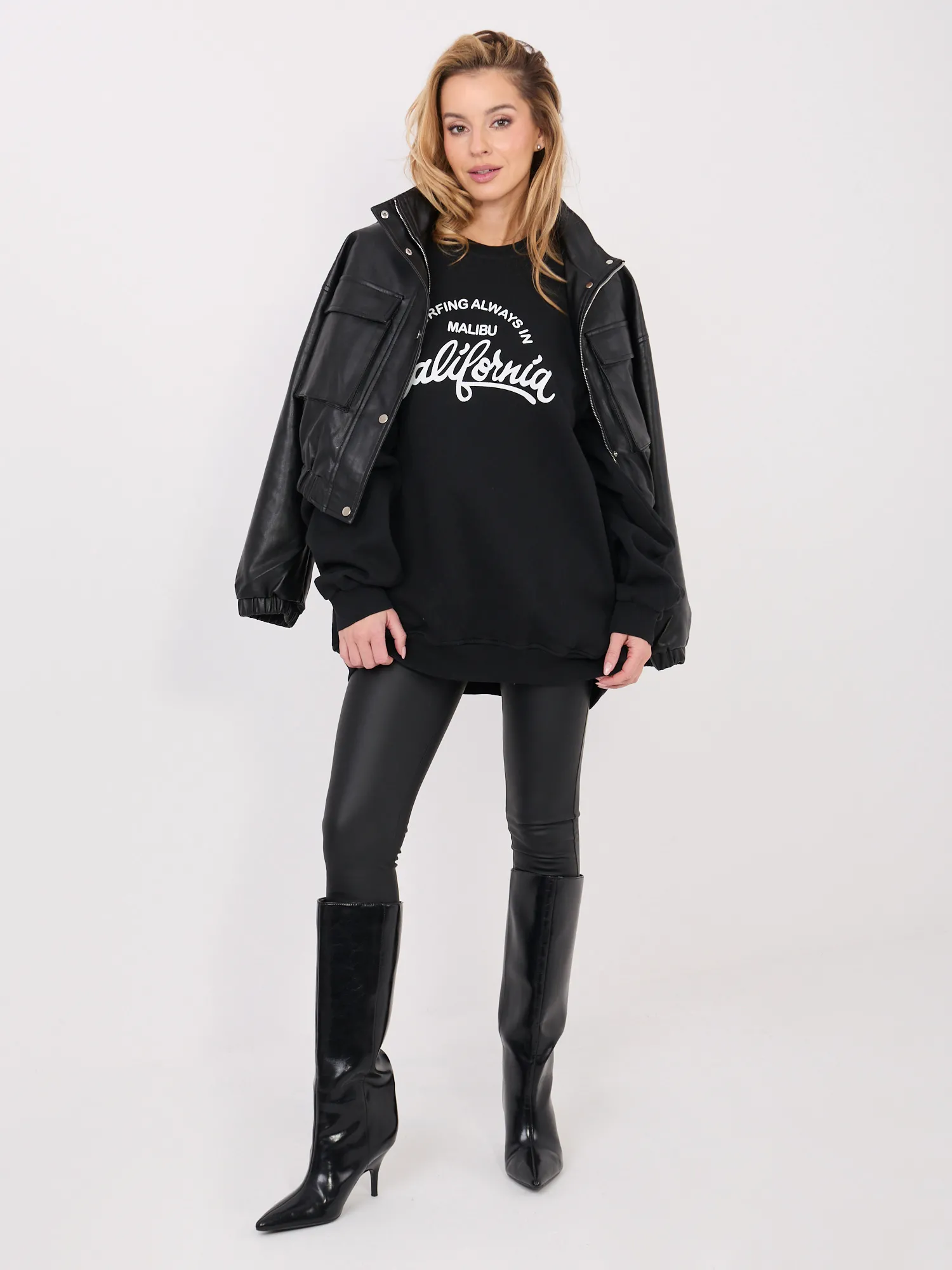 Modelka ma na sobie rozmiar one size. Wymiary modelki: wzrost 169 cm, biust 88 cm, talia 68 cm, biodra 89 cm