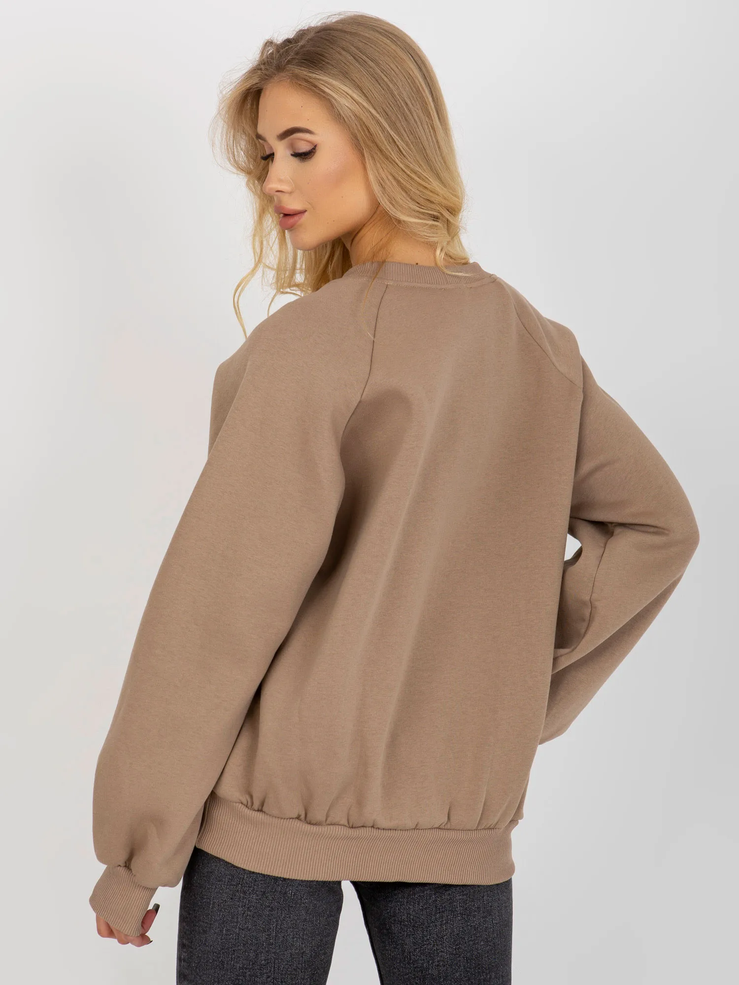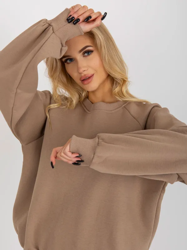 Ciemnobeżowa dresowa bluza basic z okrągłym dekoltem .