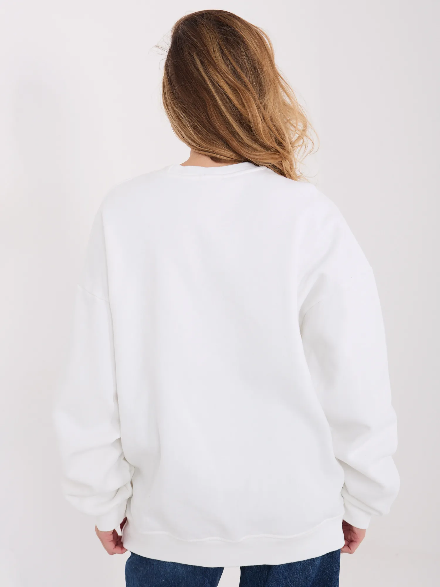 Vieno dydžio džemperio išmatavimai, matuojant plokščiai: plotis po pažastimis - 65 cm, rankovių ilgis - 59 cm (nuo siūlės), klubų plotis - 52 cm, bendras ilgis - 73 cm.
