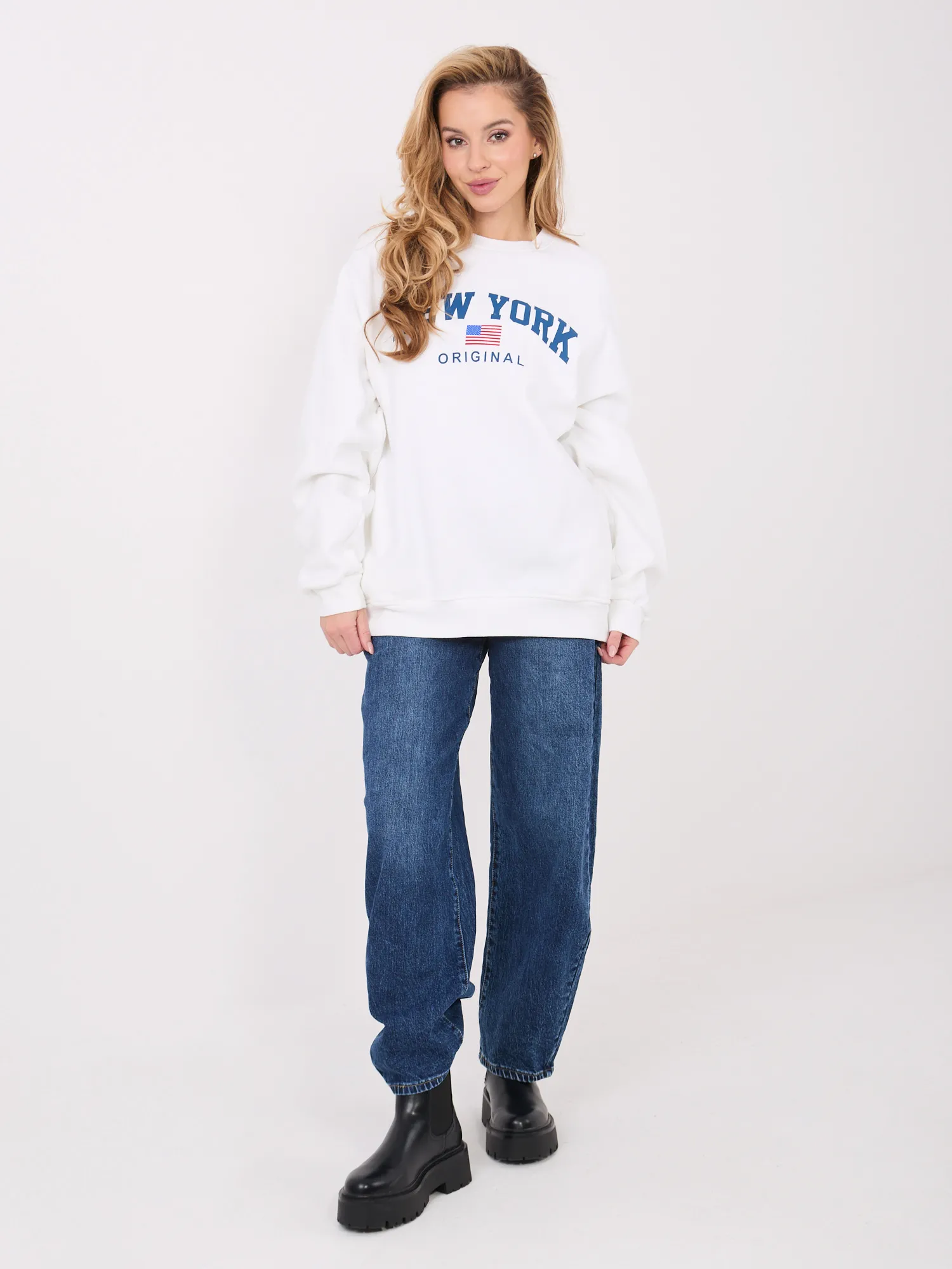 Modelka ma na sobie rozmiar one size. Wymiary modelki: wzrost 169 cm, biust 88 cm, talia 68 cm, biodra 89 cm