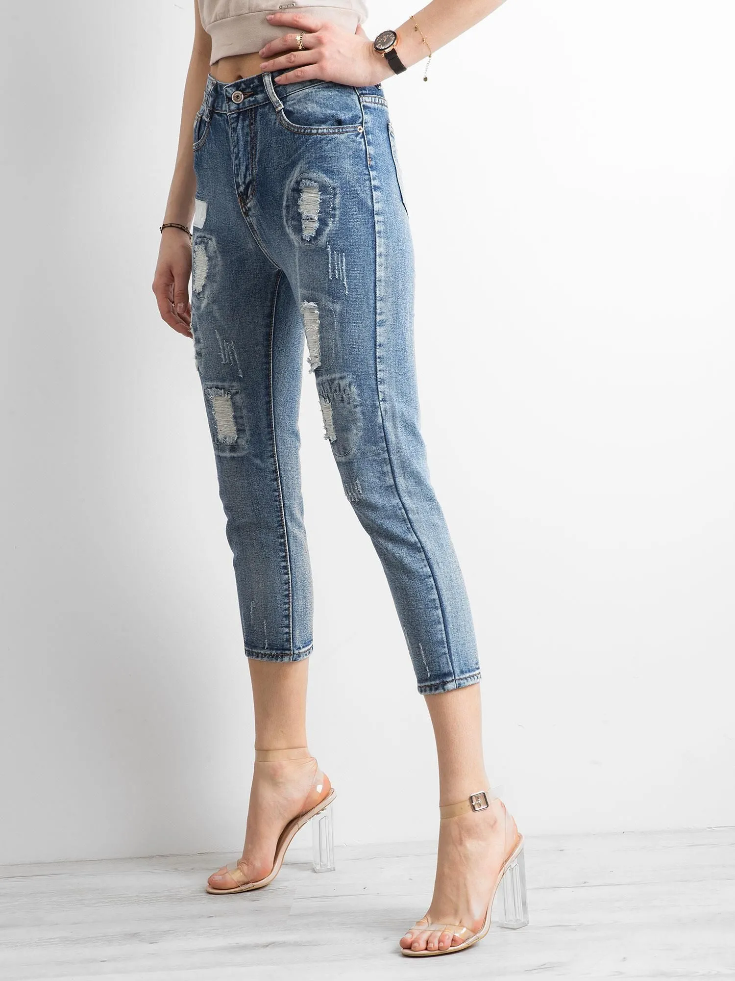 Jeansy mom jeans z przetarciami niebieskie.