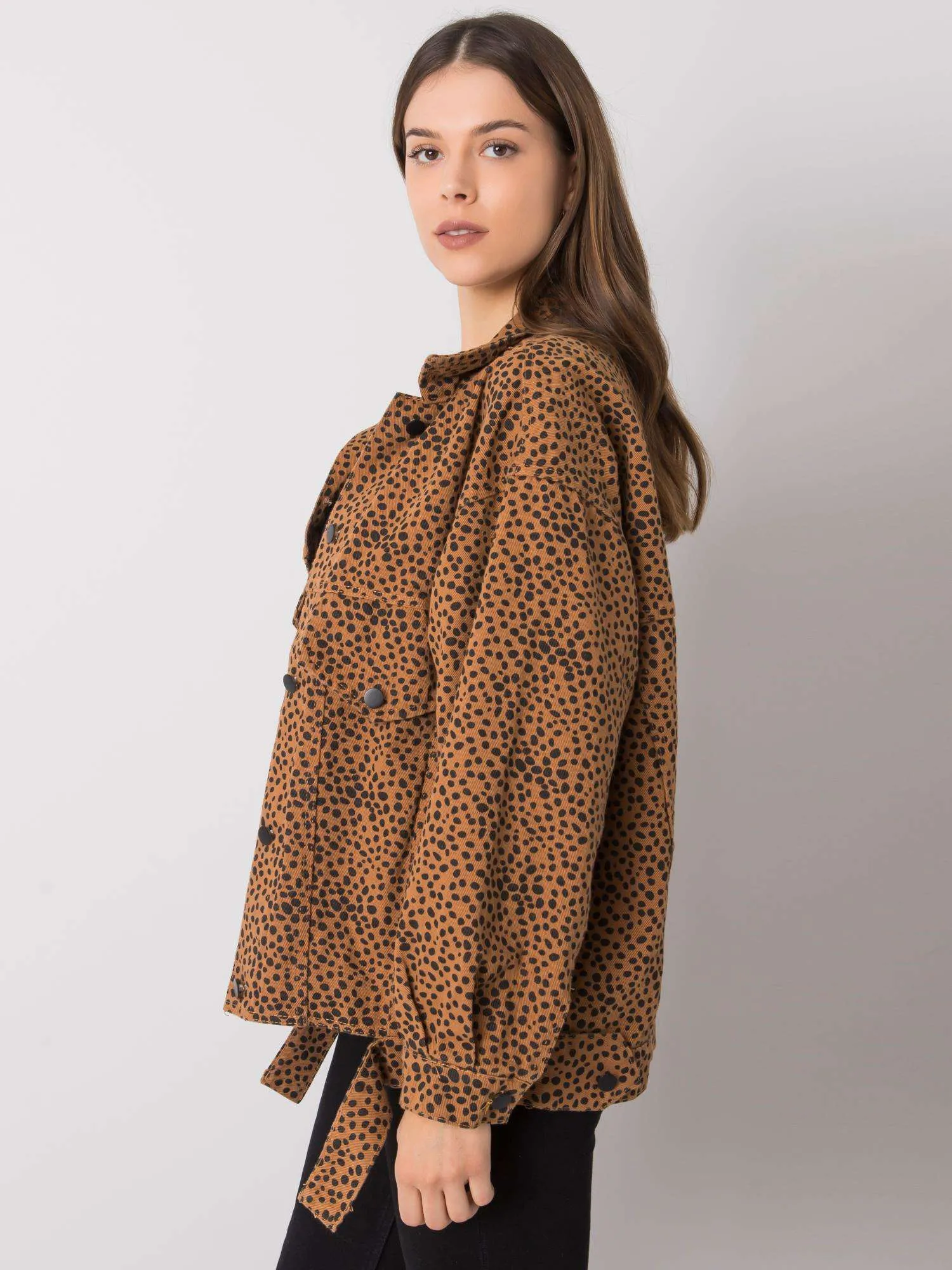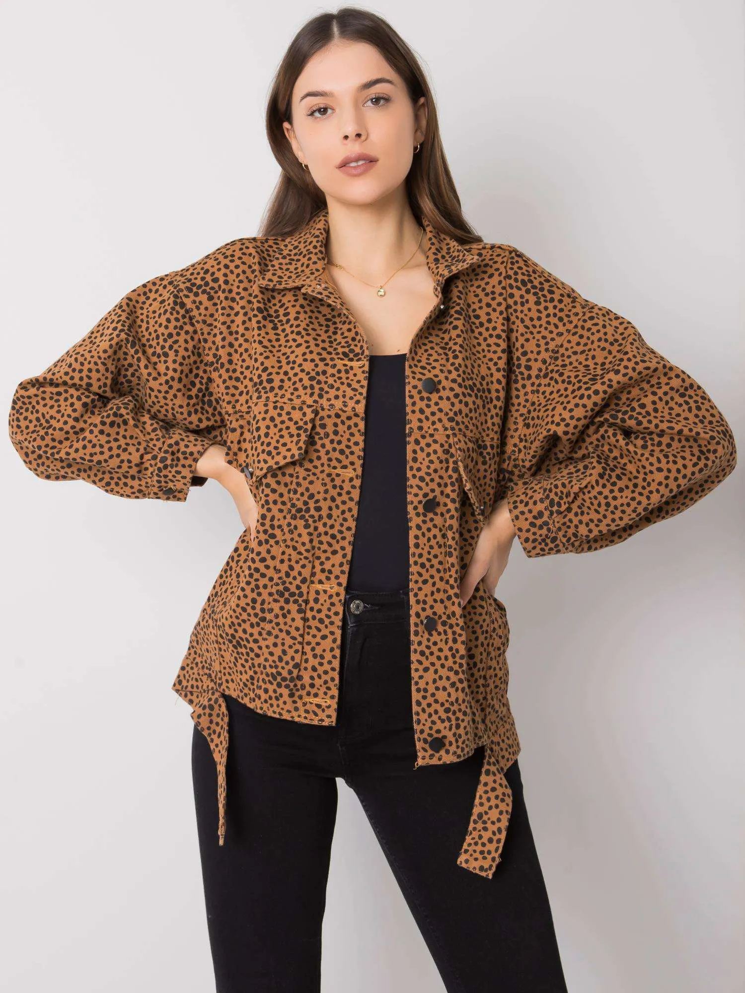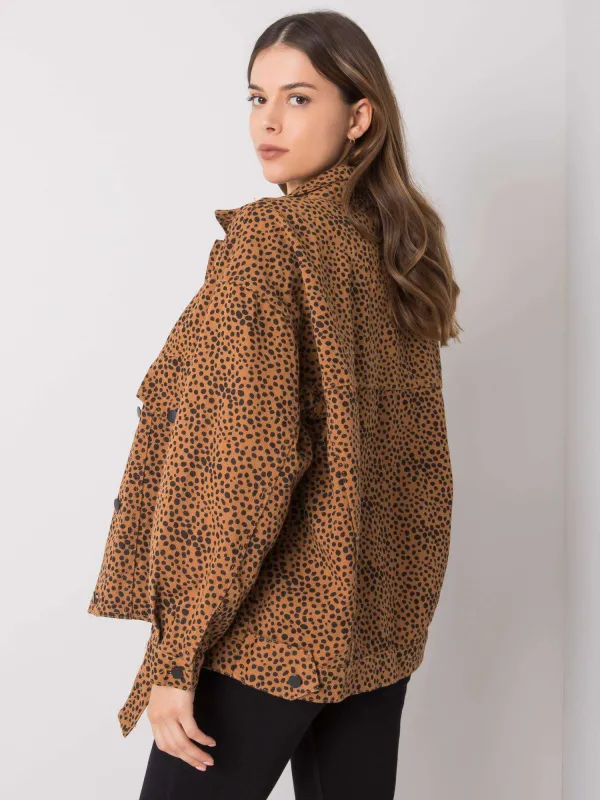 Šviesiai rudas raštuotas džinsinis švarkelis .
