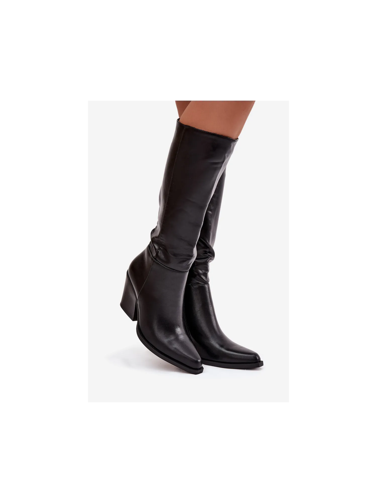 BotoWomen's eco leather boots are an option for women who value elegance and comfort on colder days. The model captivates with its classic design featuring a pointed toe, which visually slims the legs and adds lightness to the silhouette. Set on a stable, tapered block heel, they ensure a confident step and comfort during daily wear. Thanks to the interior lining, these boots are perfect for autumn and winter, providing warmth even on cold days. A practical zipper on the side makes putting on and taking off the footwear easier. This is a model that perfectly combines classic style with modern fashion — ideal for both elegant coats and casual outfits with jeans.