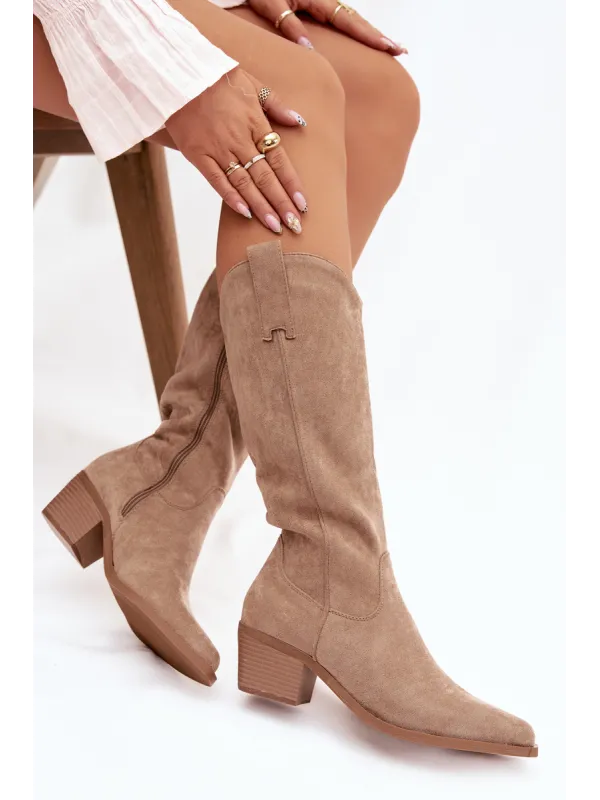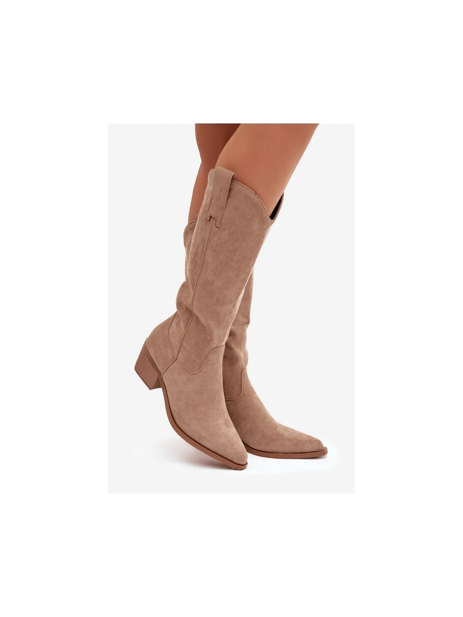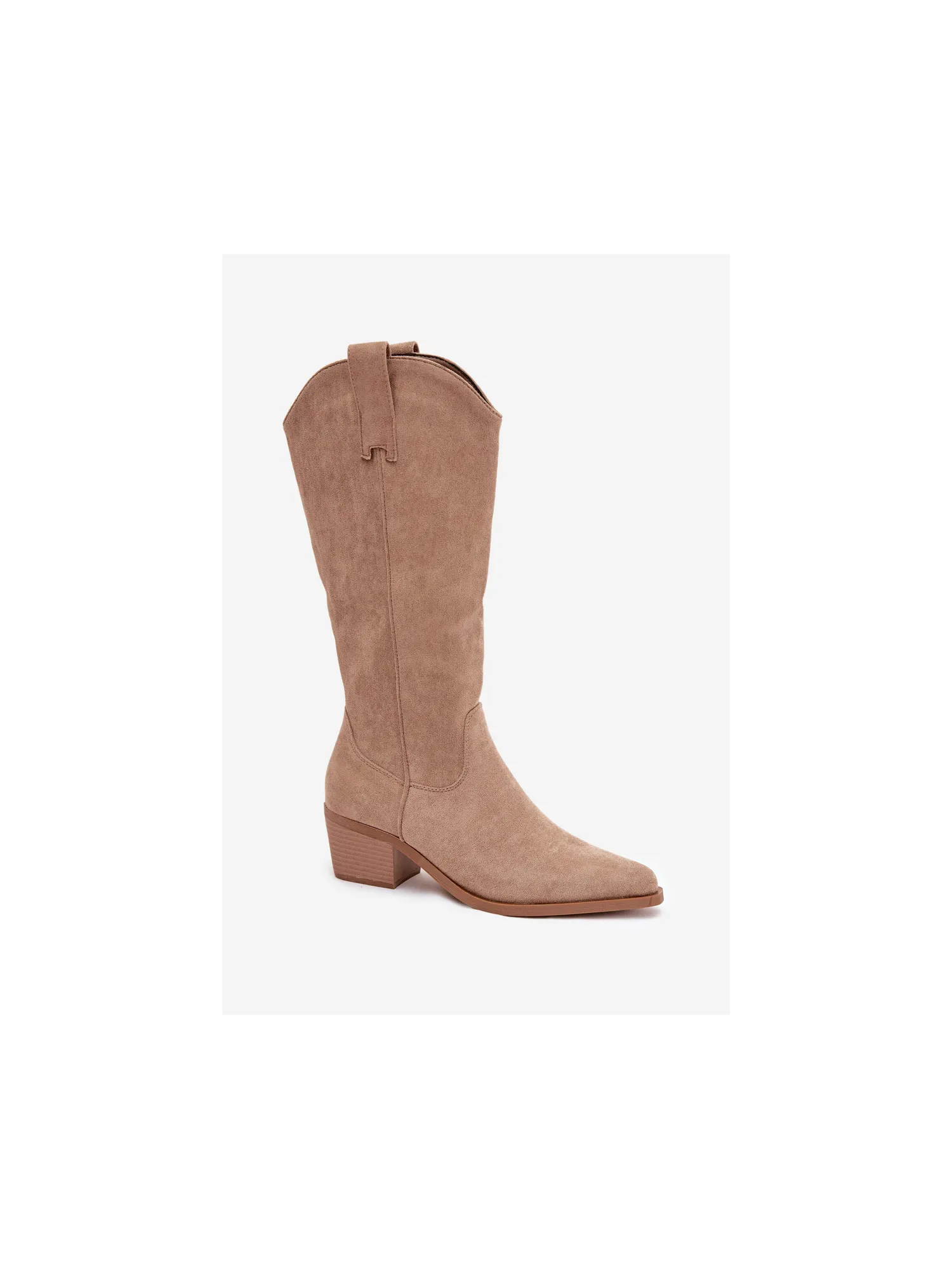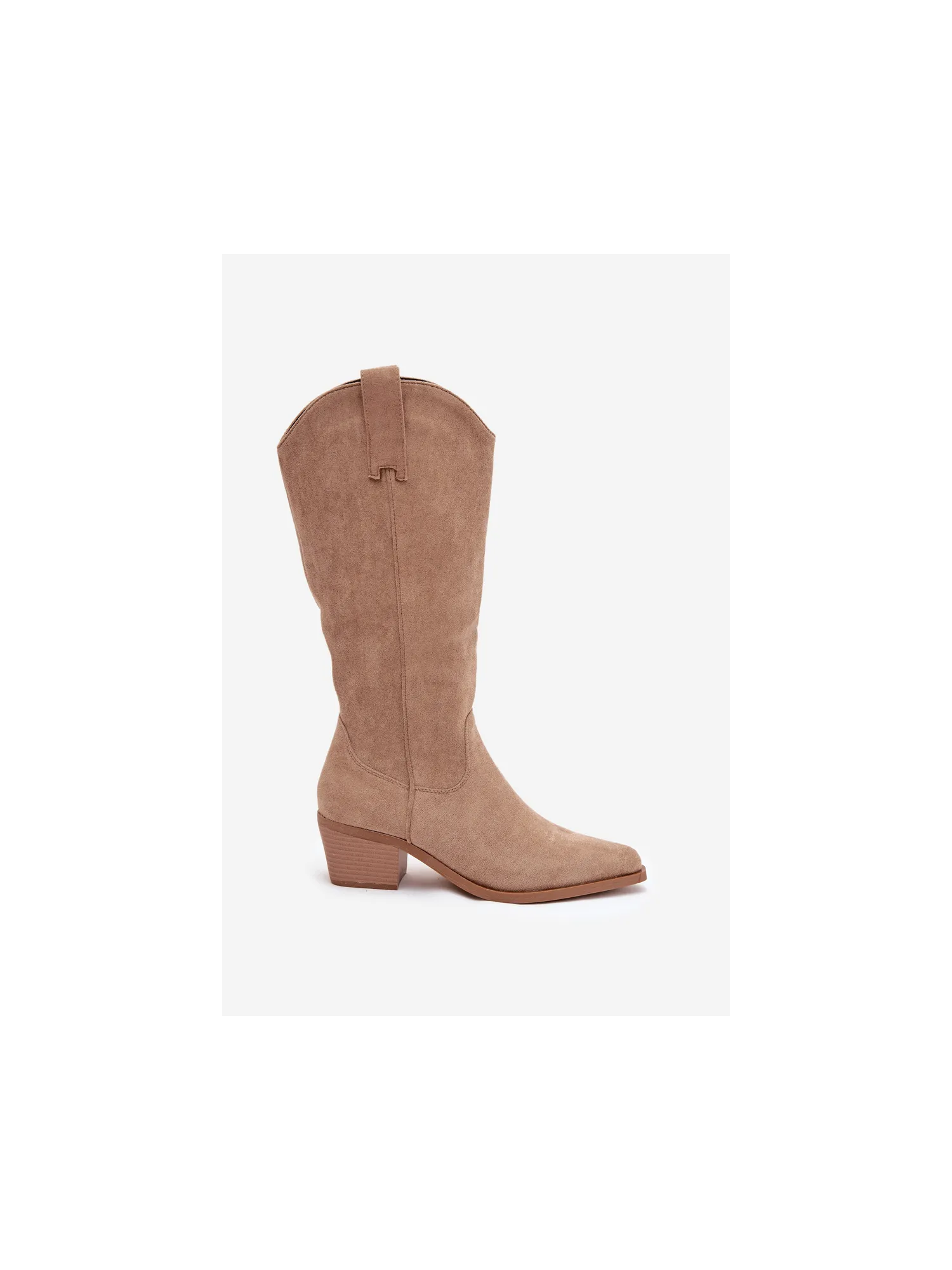 Women's cowboy boots made from eco suede are a stylish model inspired by Western accents. Set on a distinctive, truncated heel, they emphasize the silhouette and add a unique character to the overall look. The pointed toes give them elegance, and the foam padding covered with soft material provides comfort and warmth on colder days. The slip-on model is complemented by an additional zipper for easy wearing and fitting. Perfect for autumn-winter styling, both casual and more fashionable. When choosing the size, please refer to the size chart below. When choosing a size, please refer to the size chart.