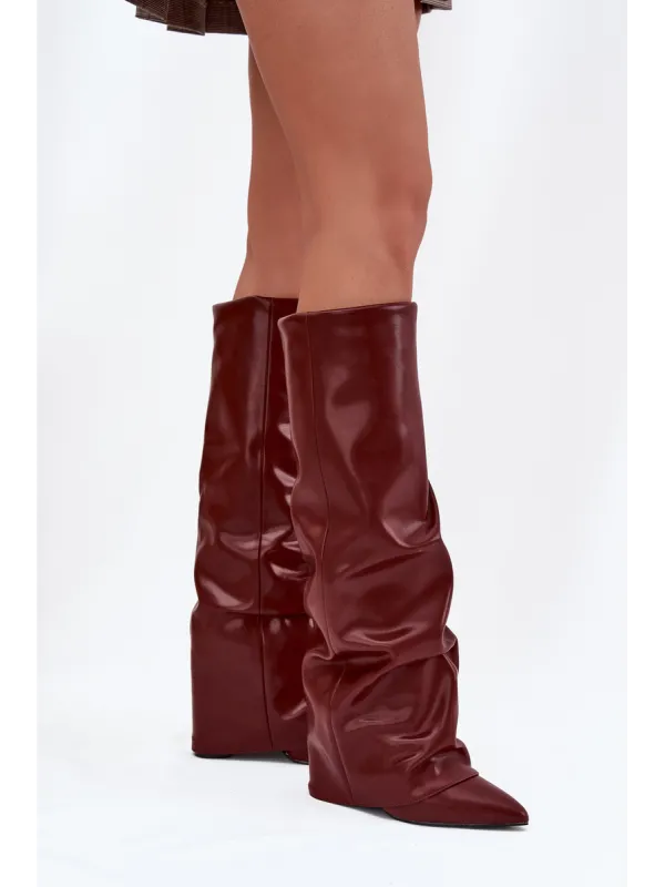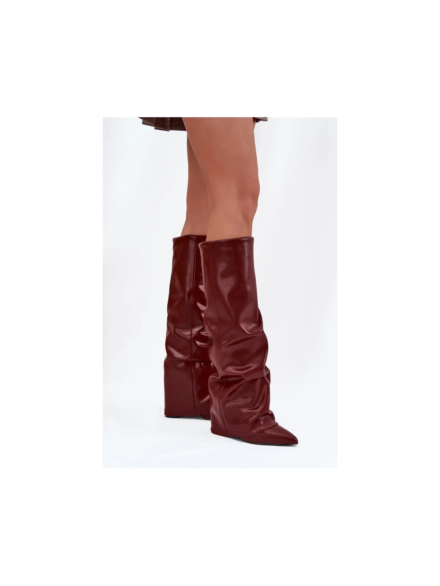 Women's boots with turned-up shafts are a true must-have for the upcoming fall-winter season! Slip-on and set on a stable block heel, they guarantee comfort and a confident step. The insulation provides comfort on colder days, and the turned-up shaft, overlapping the heel, adds an original touch. The pointed toes emphasize a feminine style, making these boots perfect for striking winter outfits. When choosing your size, please refer to the size chart. When choosing a size, please refer to the size chart.