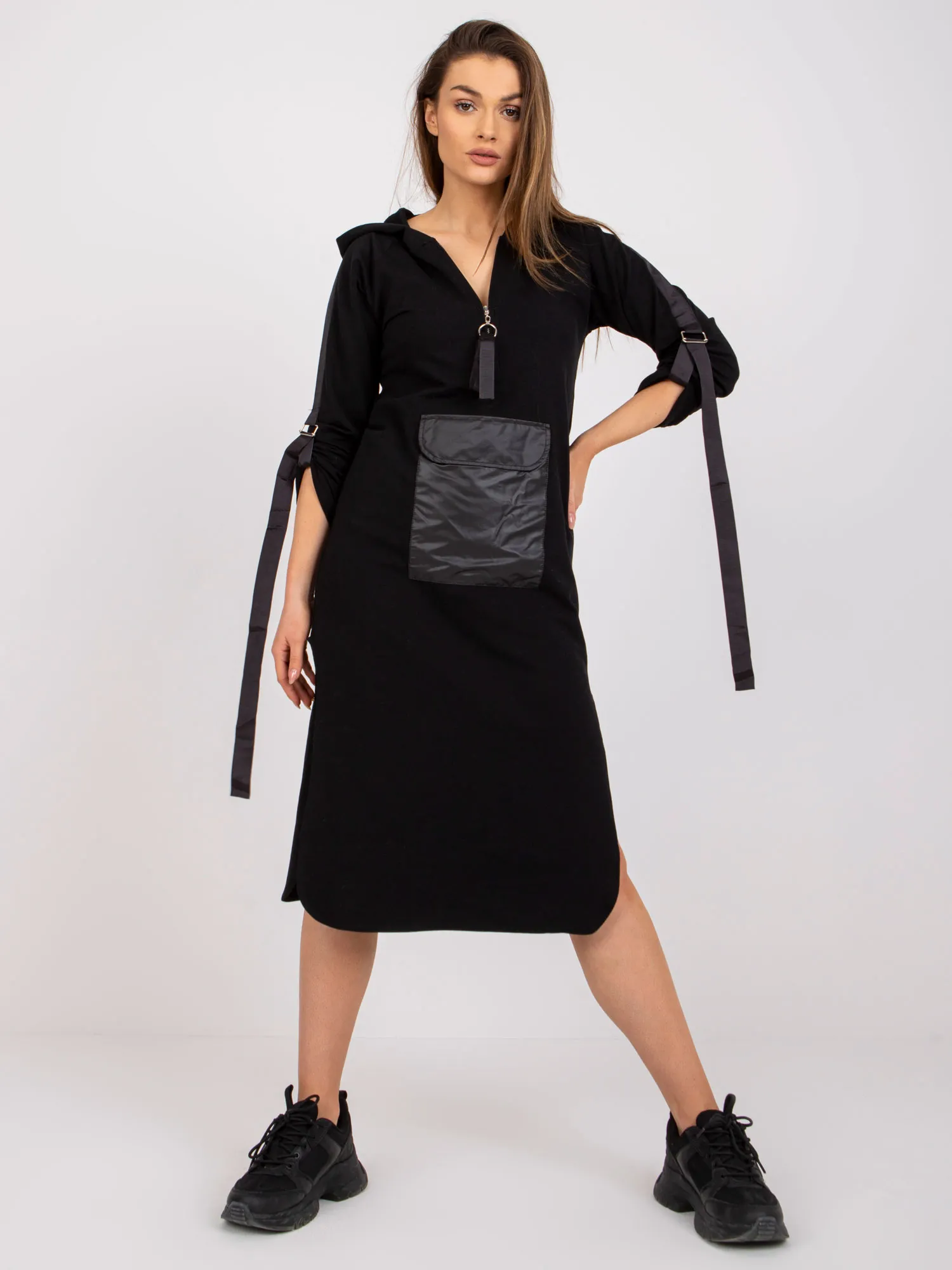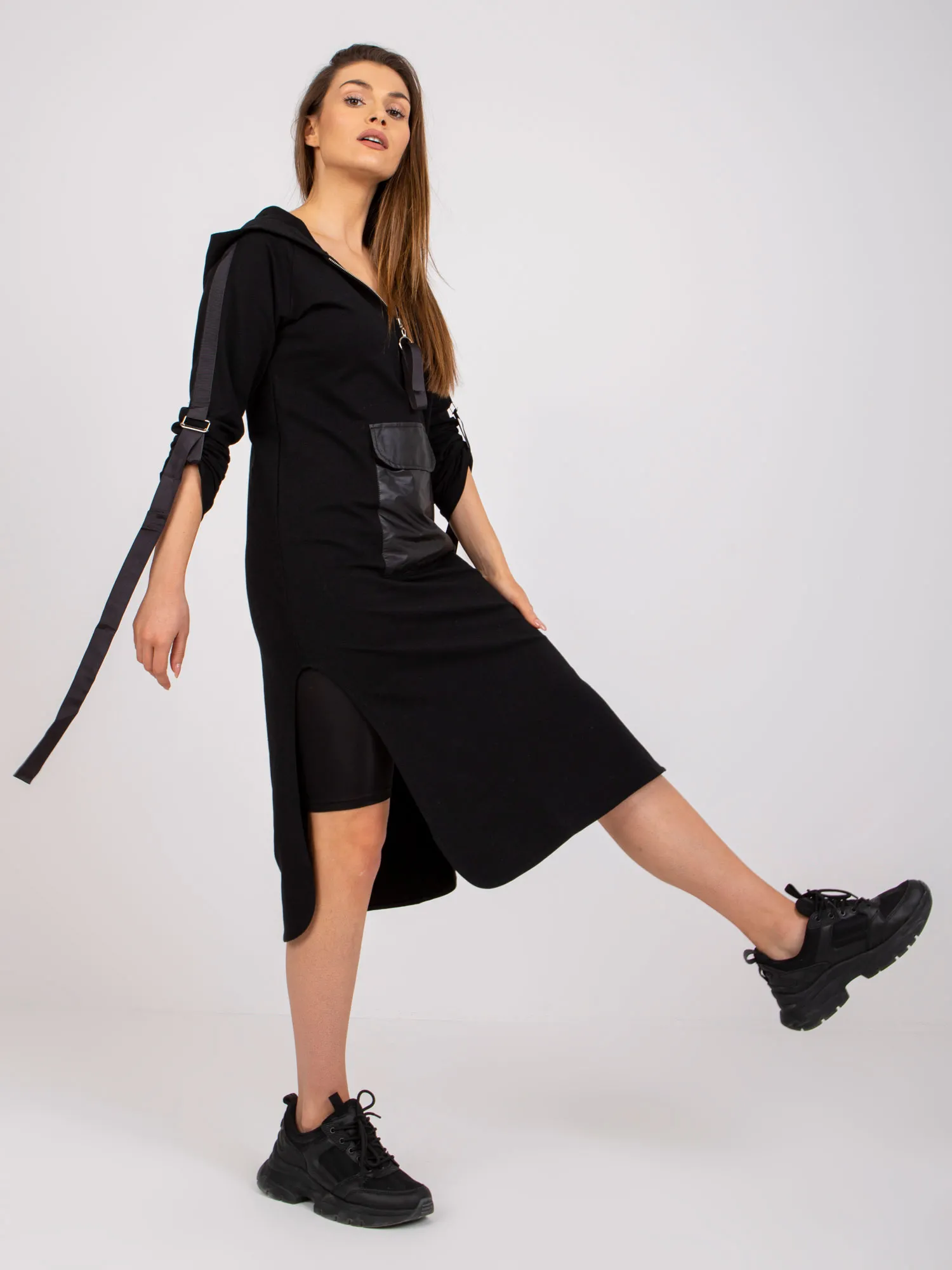 Modelis dėvi dydį S. Modelio išmatavimai: Ūgis 170 cm, krūtinė 84 cm, juosmuo 64 cm, klubai 93 cm.