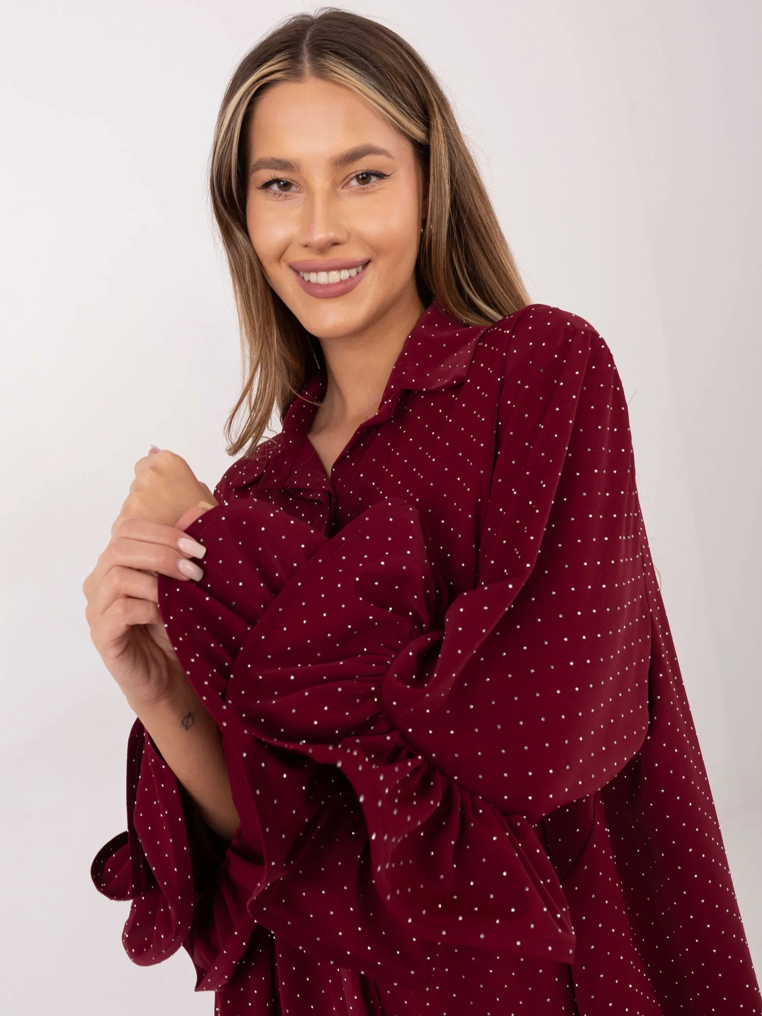 Modelis dėvi pirmąjį dydį. Modelio išmatavimai: ūgis 176 cm, krūtinės apimtis 90 cm, juosmuo 62 cm, klubai 94 cm .