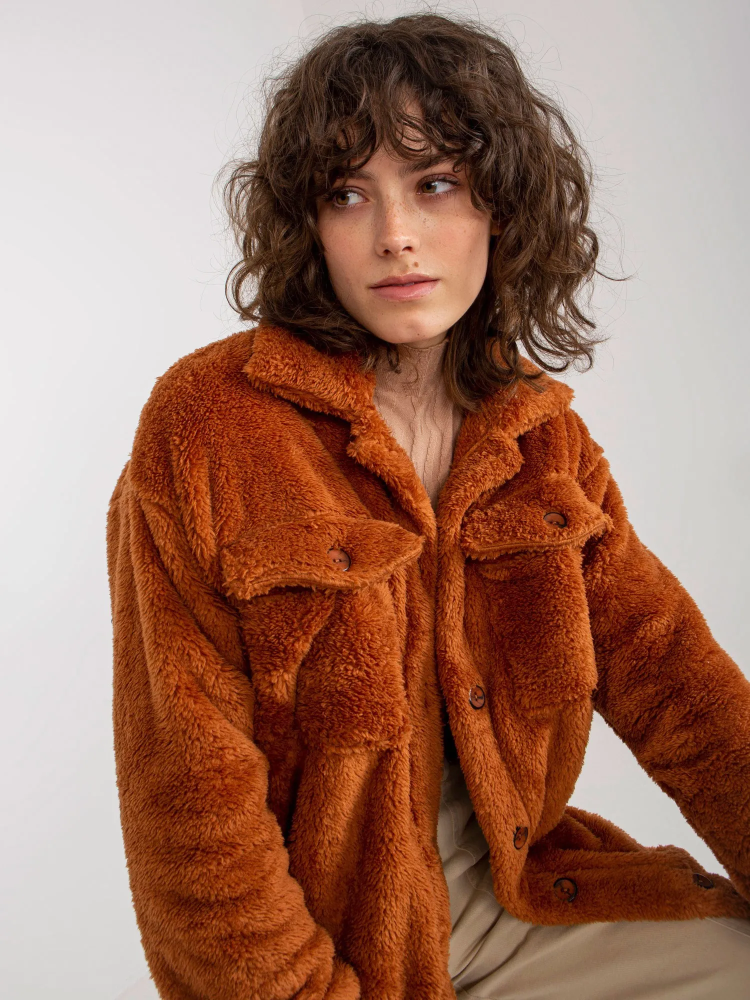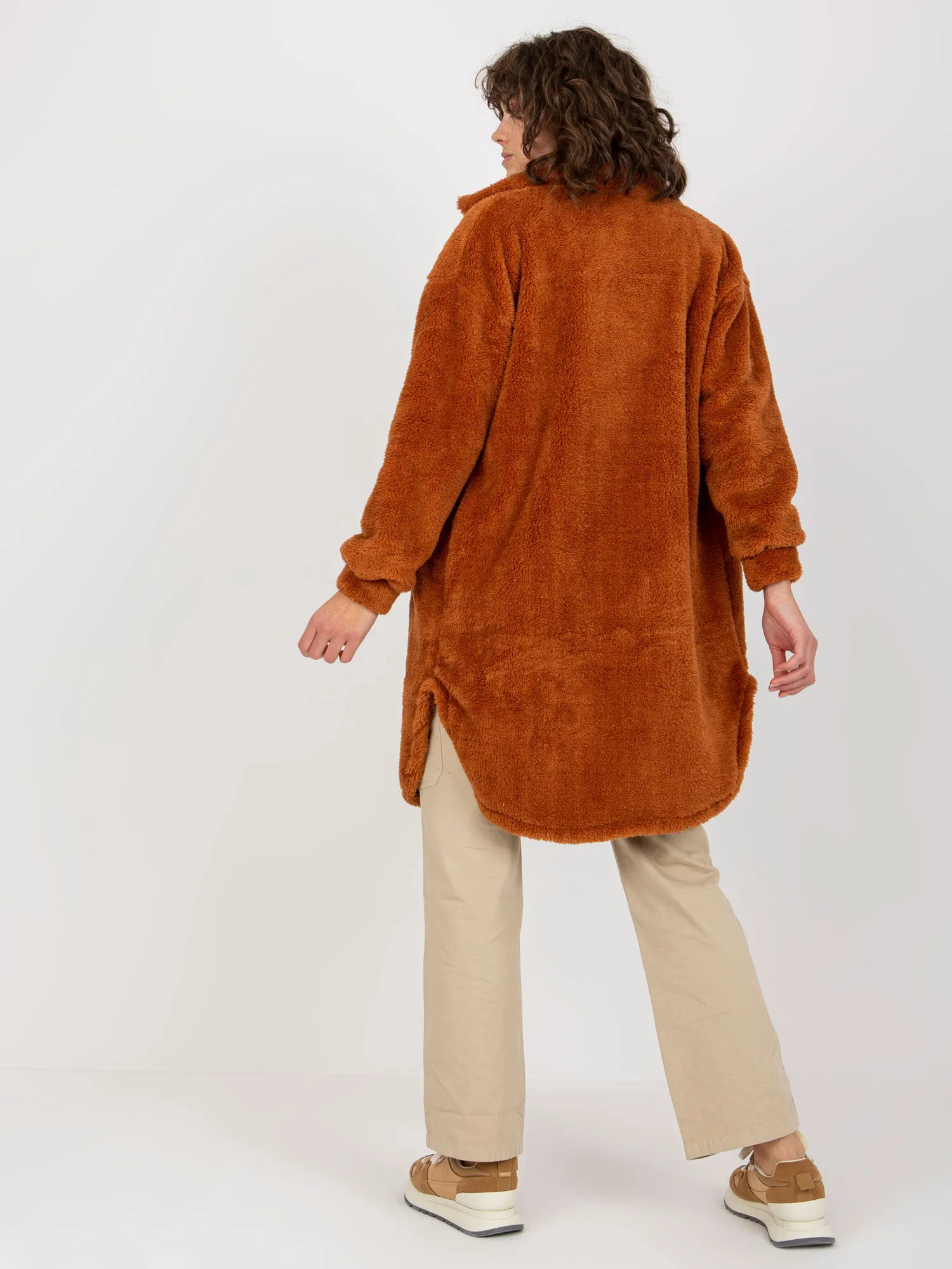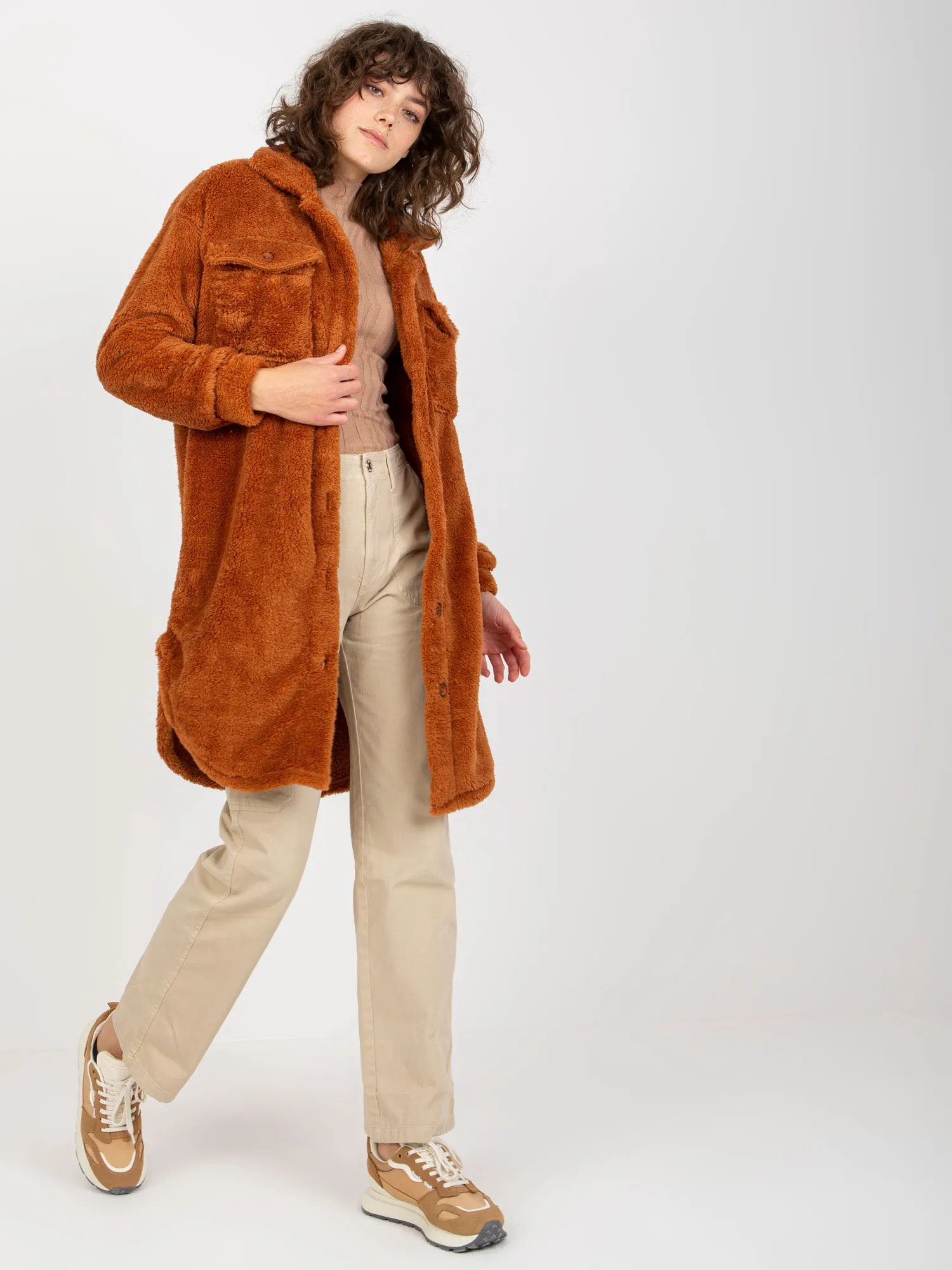 Jasnobrązowa długa koszula futrzana na guziki RUE PARIS .