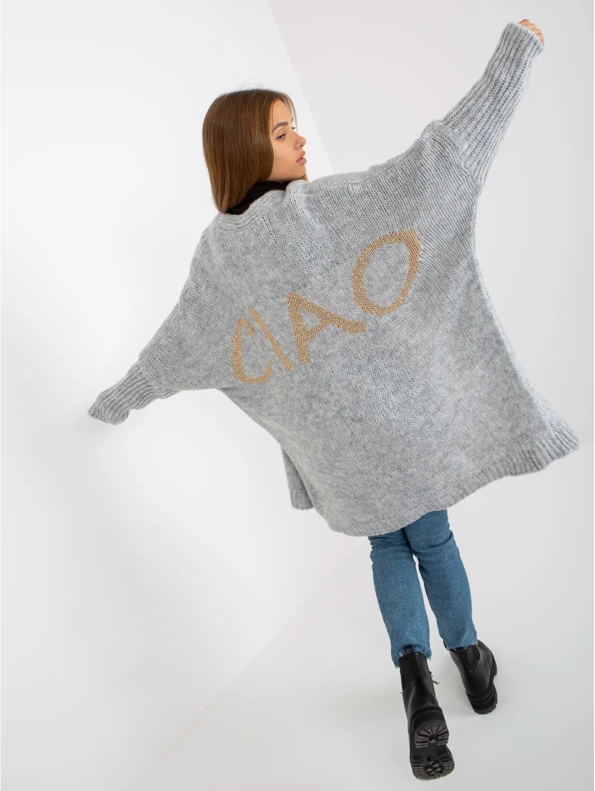 - Modelis dėvi one size dydį. Modelio išmatavimai: ūgis 163 cm