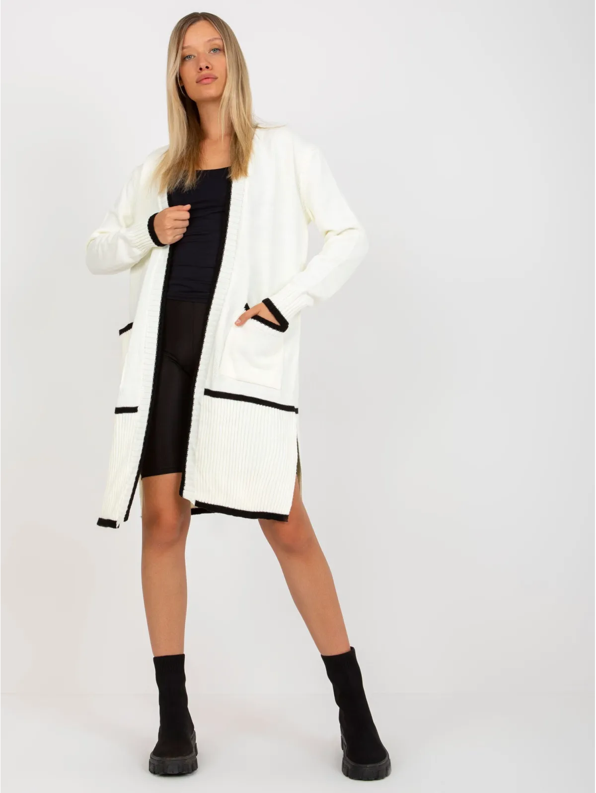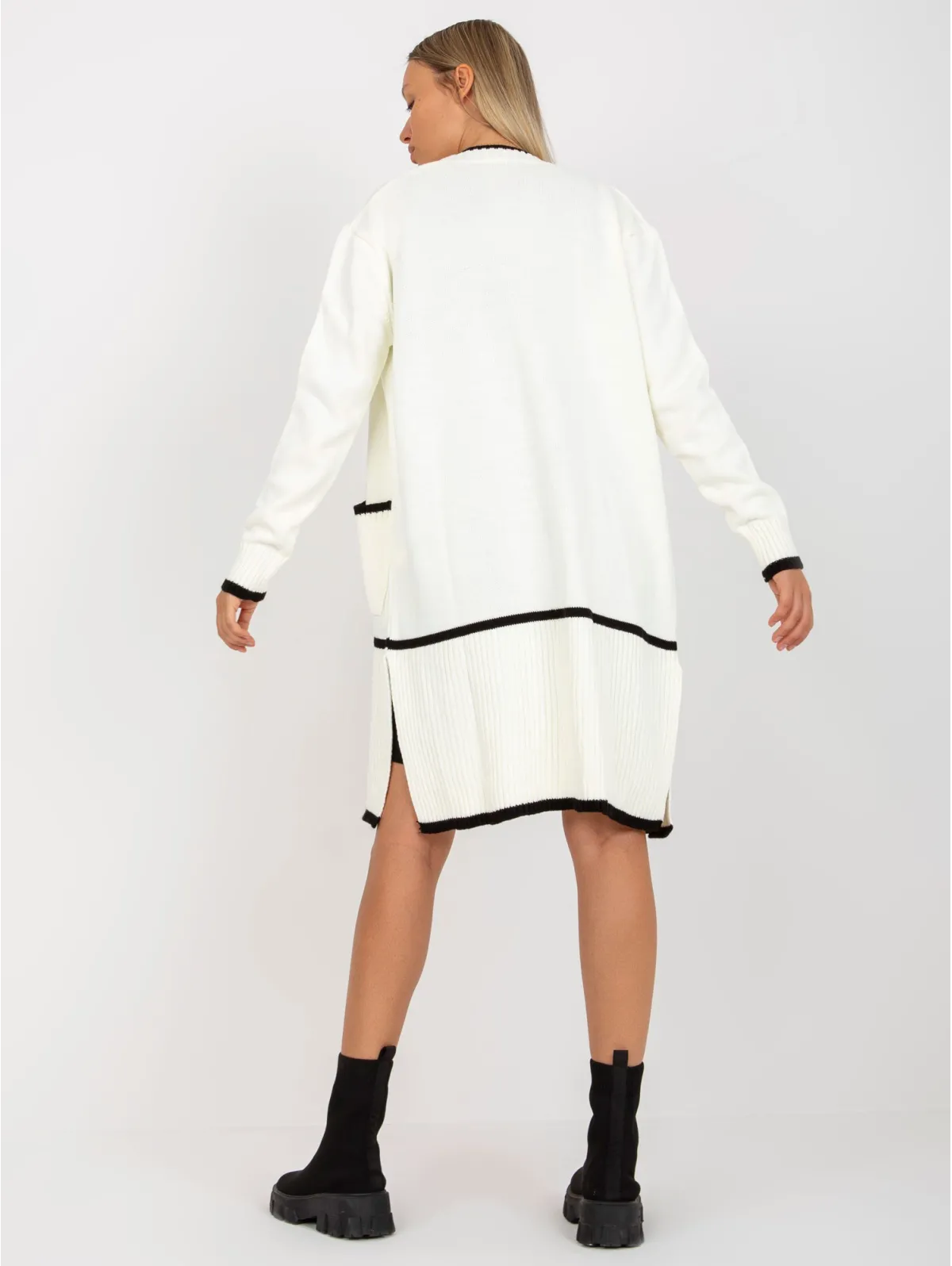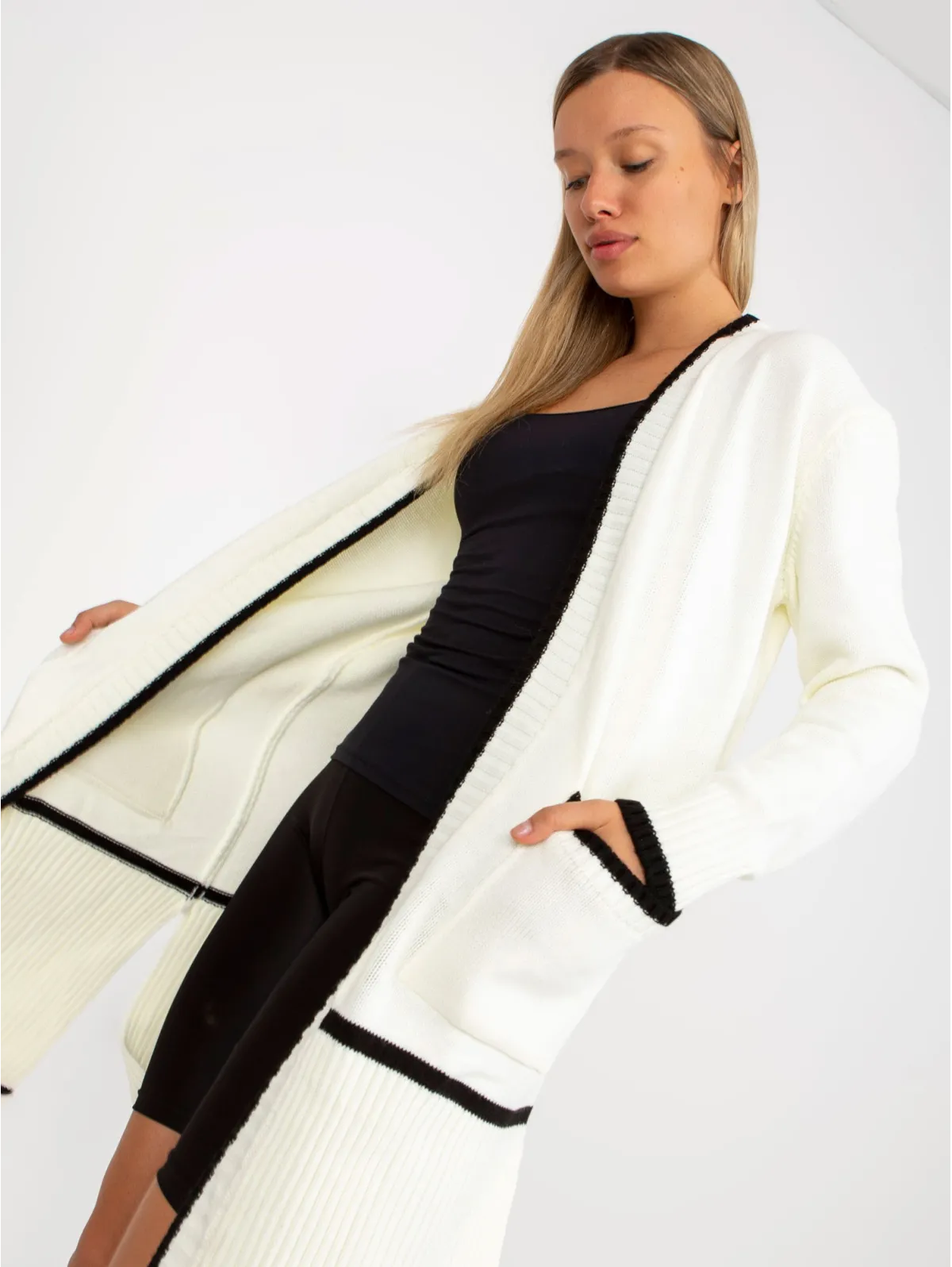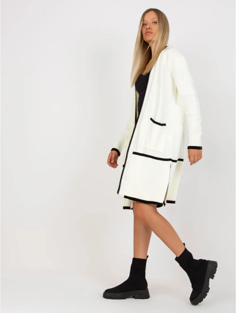 Kardigano one size dydžio išmatavimai: krūtinė - 60 cm, bendras ilgis - 99 cm, rankovių ilgis - 63 cm.% akrilas Skalbti rankomis