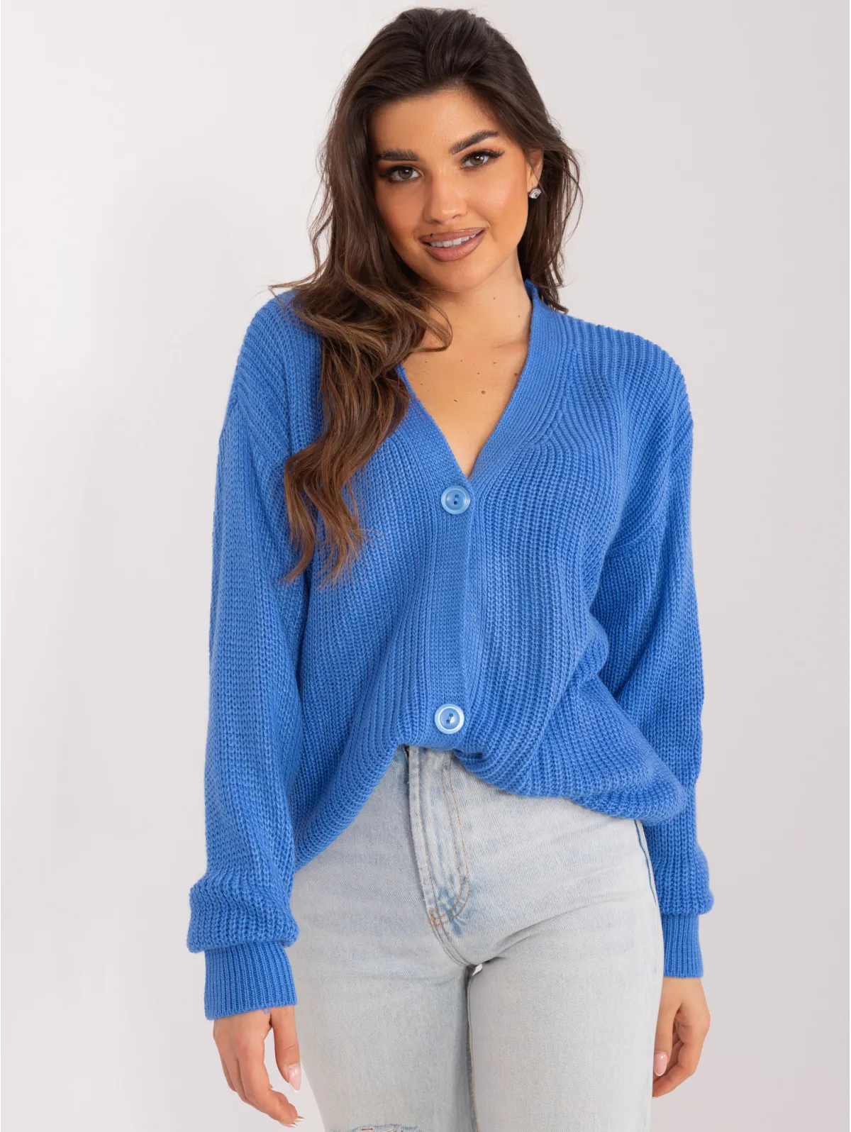 Vieno dydžio megztinio matmenys matuojami plokščiai: pažasties plotis - 64 cm, bendras ilgis - 74 cm, rankovių ilgis - 64 cm.