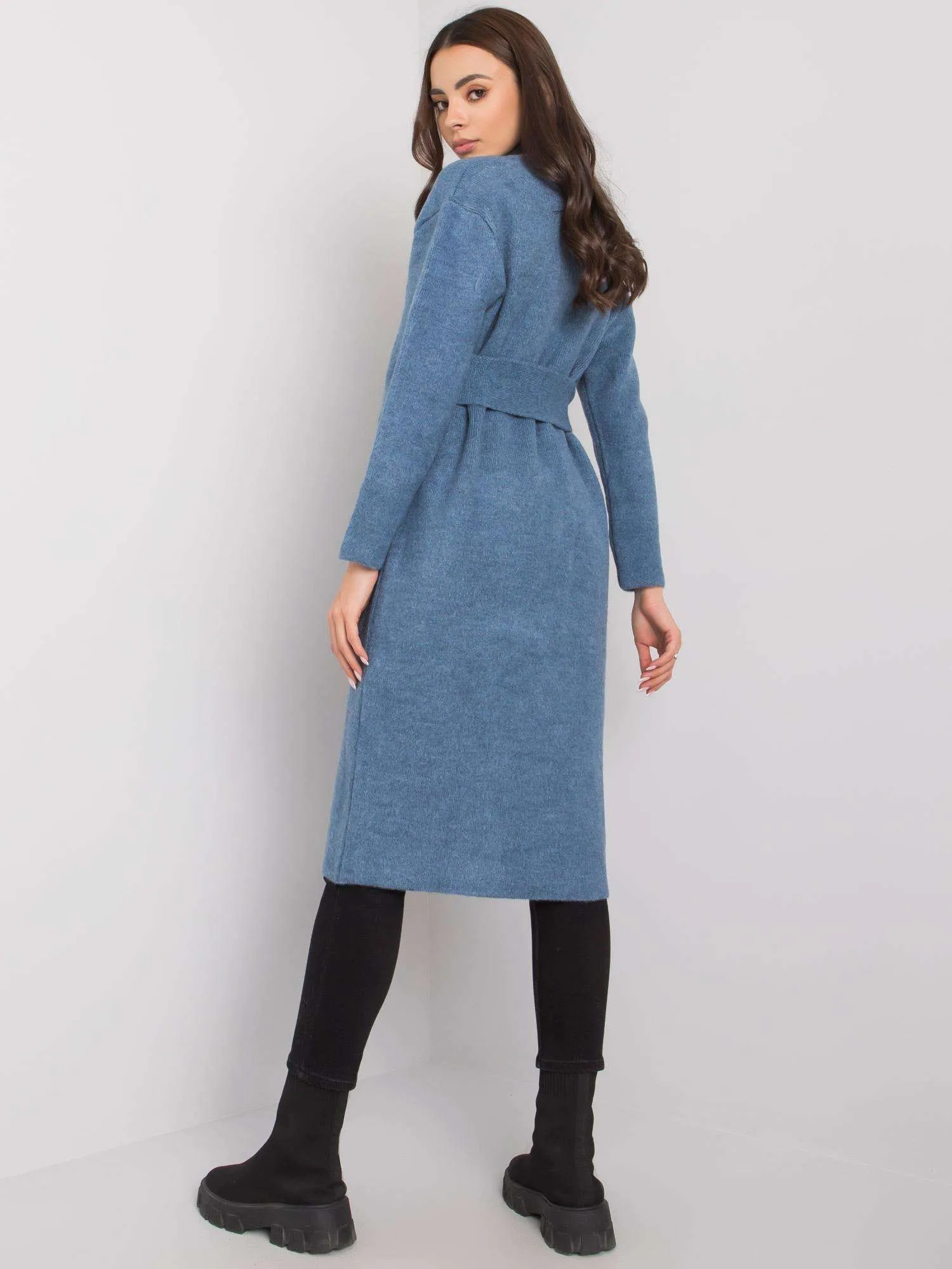 RUE PARIS Niebieski kardigan z kieszeniami.