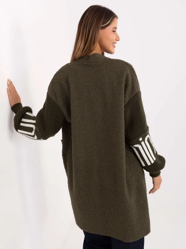 Kardigano matmenys vieno dydžio: plotis po pažastimis - 63 cm, bendras ilgis - 98 cm, rankovių ilgis - 55 cm (nuo siūlės), klubų plotis - 68 cm.