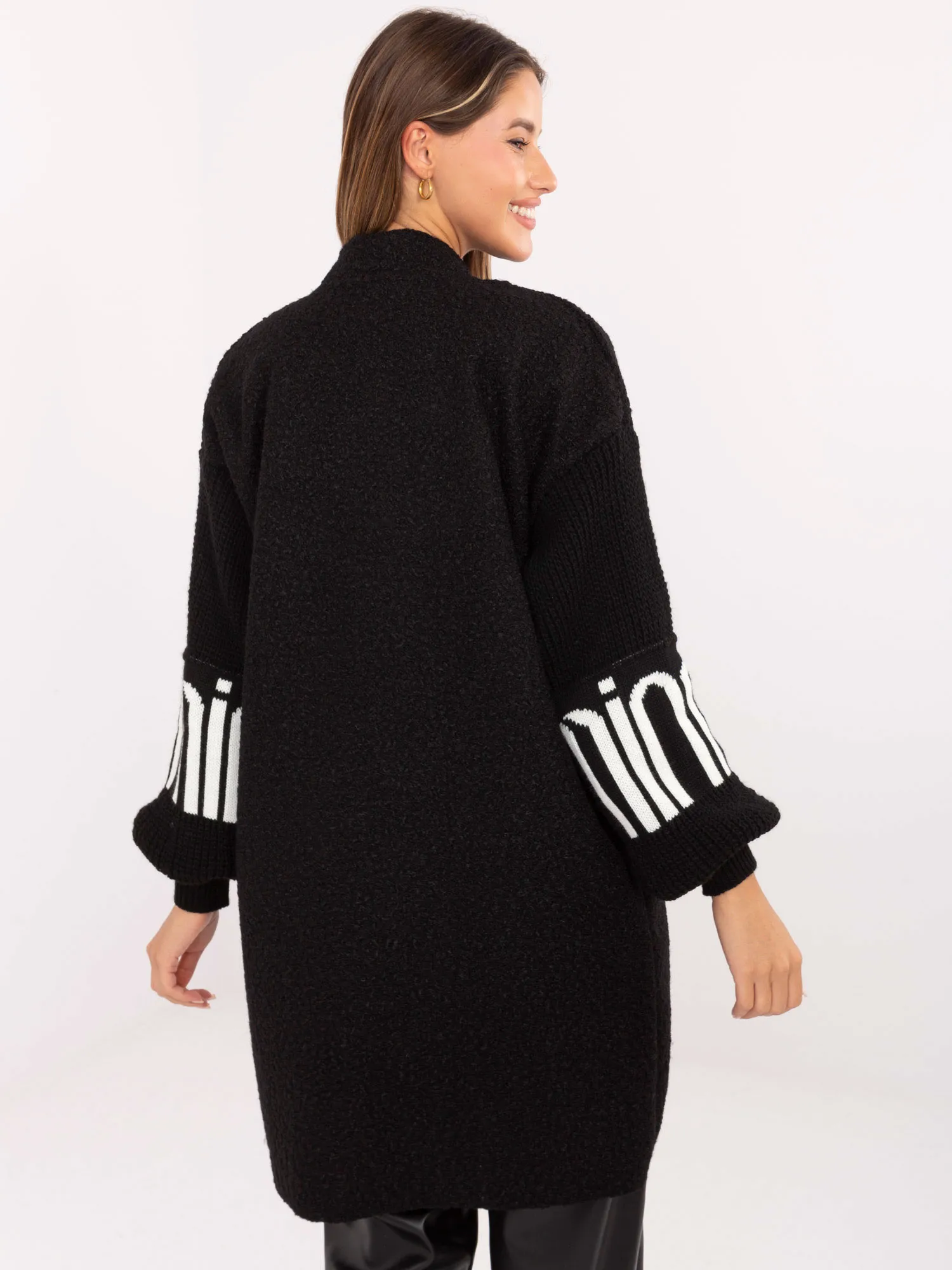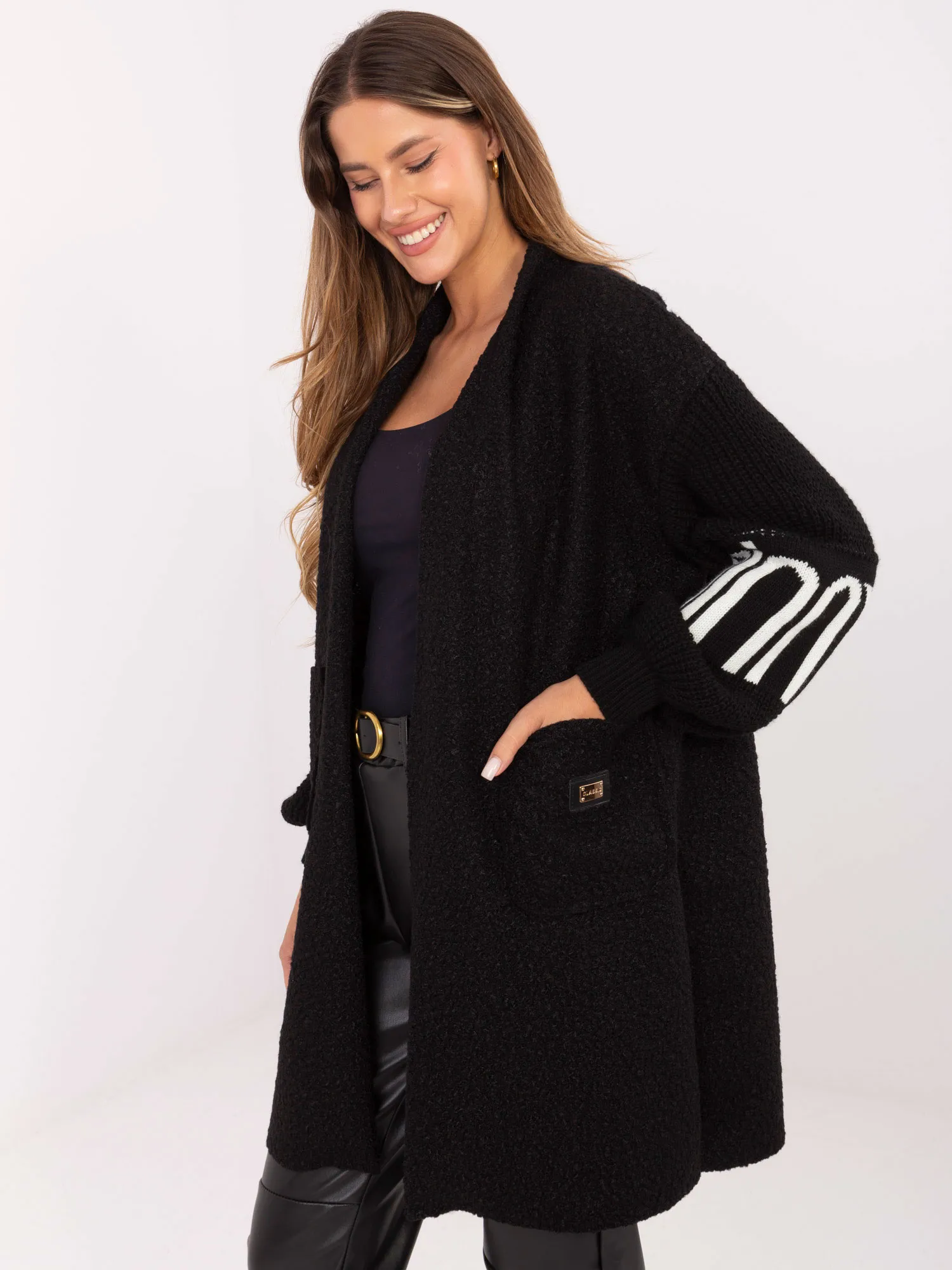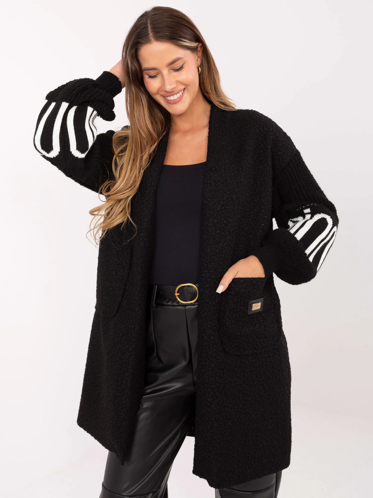 Kardigano matmenys vieno dydžio: plotis po pažastimis - 63 cm, bendras ilgis - 98 cm, rankovių ilgis - 55 cm (nuo siūlės), klubų plotis - 68 cm.
