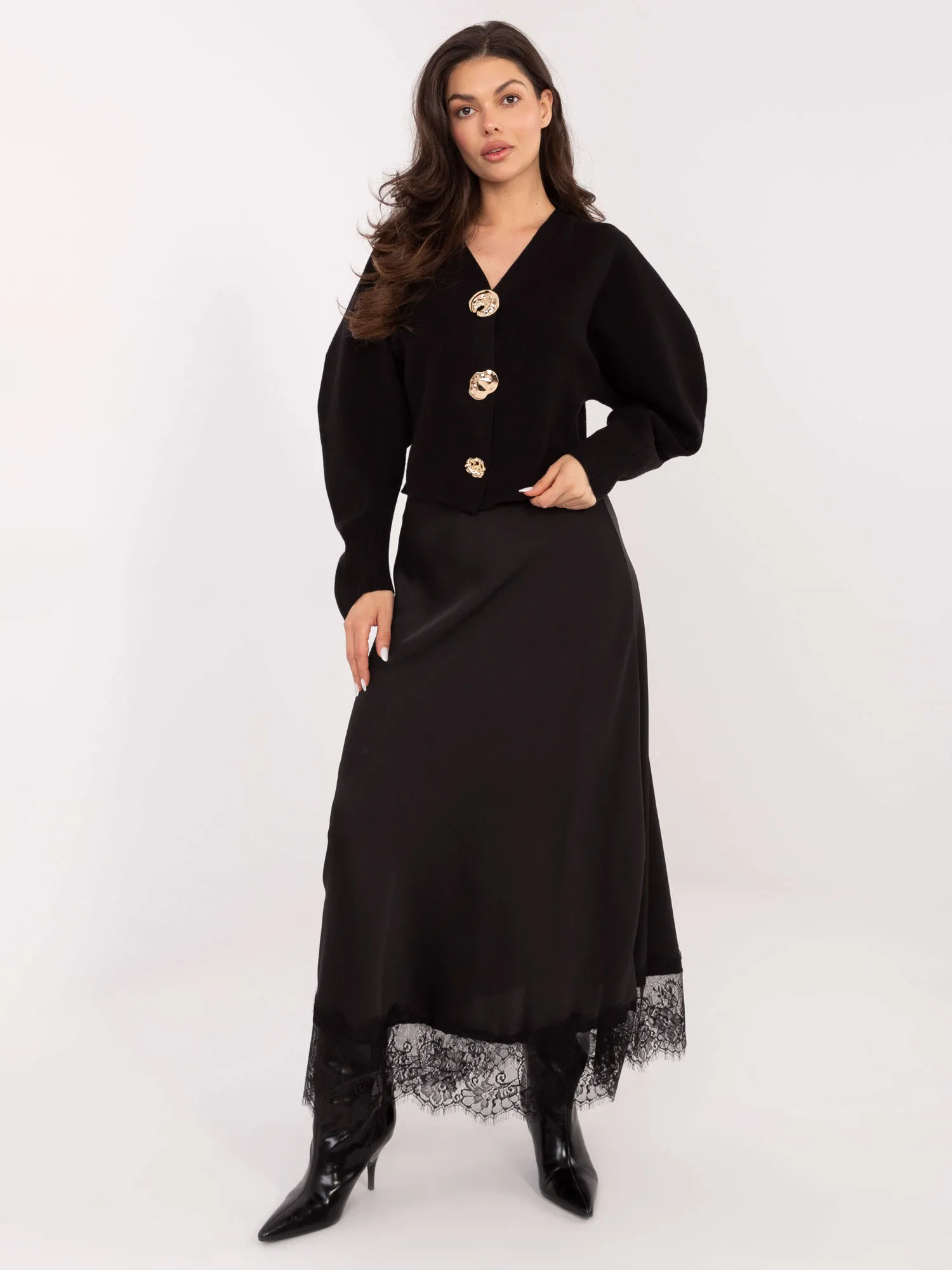 Modelka ma na sobie rozmiar one size. Wymiary modelki: wzrost 173 cm, biust 85 cm, talia 62 cm, biodra 95 cm..