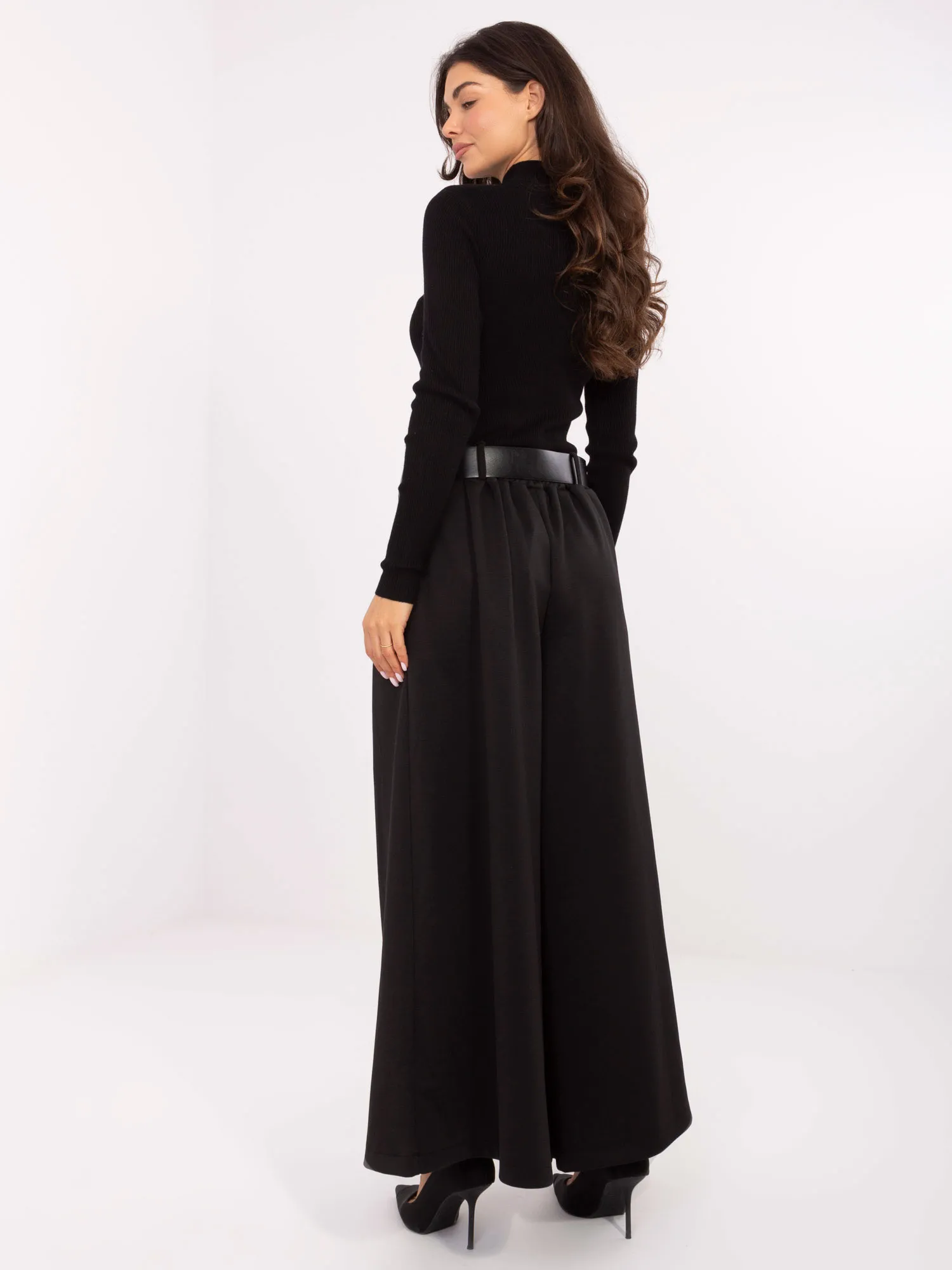 Wymiary spodni w rozmiarze one size: szerokość w pasie - 39 cm (na płasko), szerokość spodni w pasie - 74 cm (po rozciągnięciu), szerokość w biodrach - 73 cm, długość spodni - 105 cm.