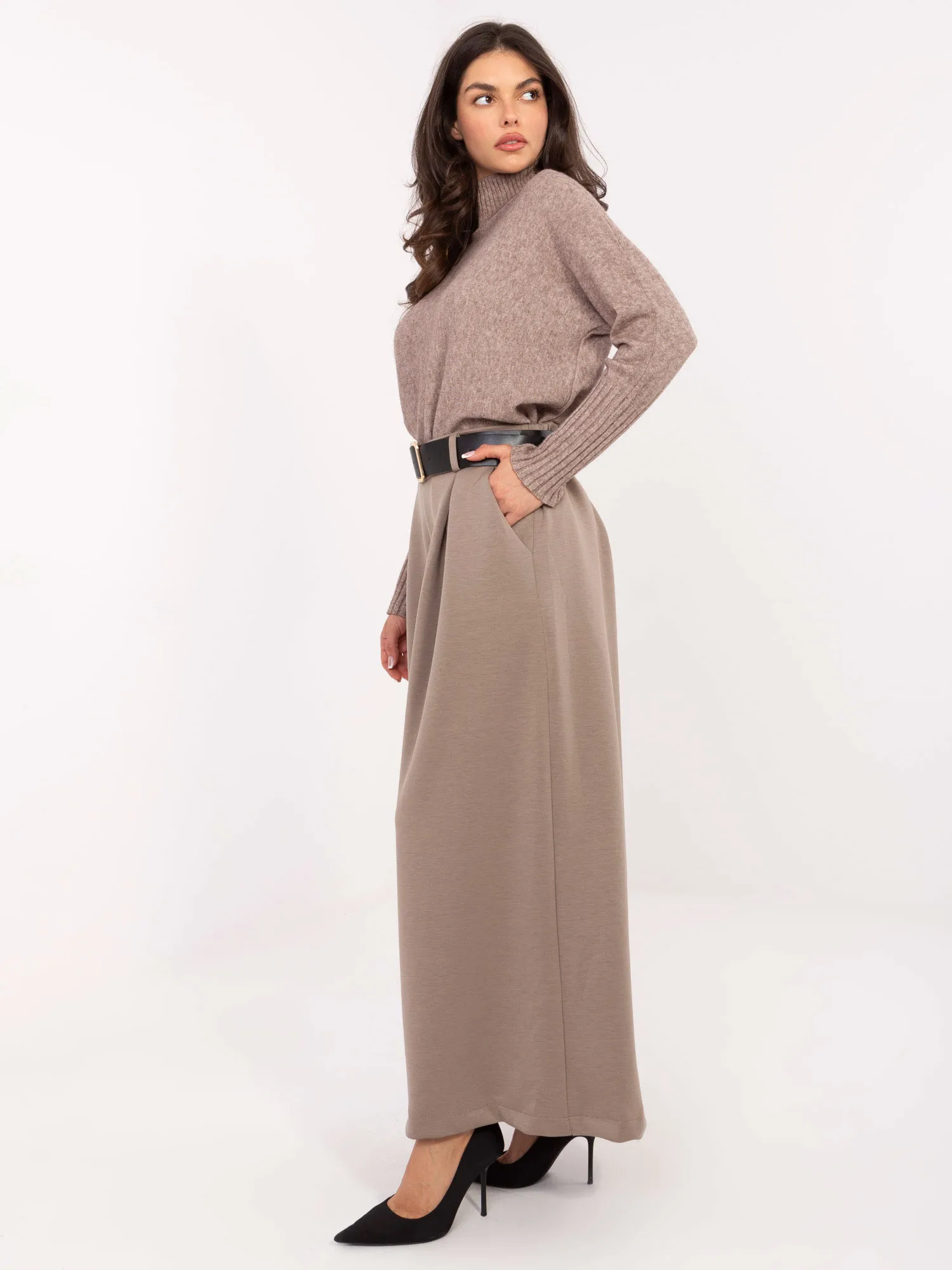 Modelis dėvi pirmąjį dydį. Modelio išmatavimai: ūgis 173 cm, krūtinės apimtis 85 cm, juosmuo 62 cm, klubai 95 cm.