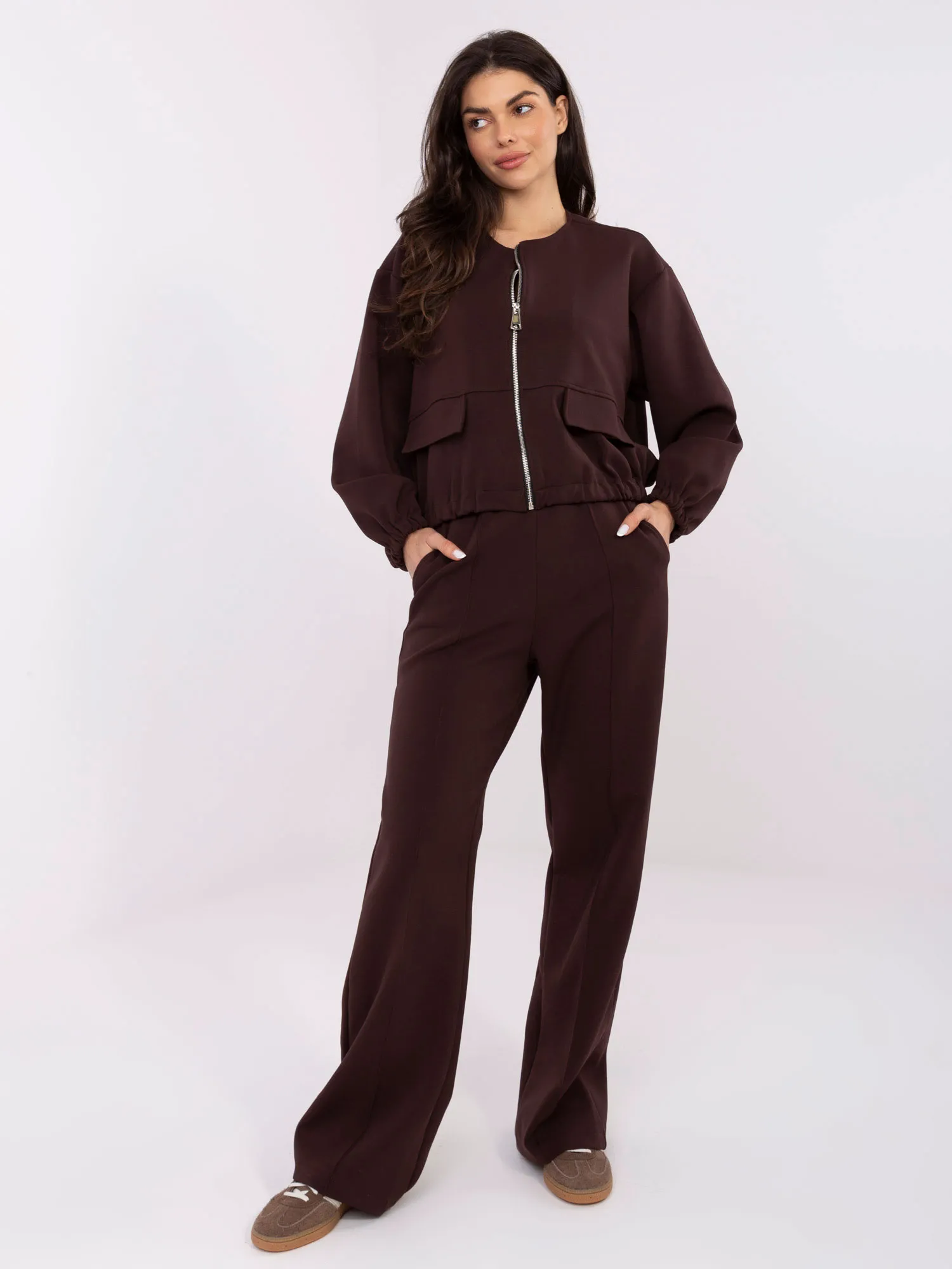 - Modelis dėvi vieno dydžio dydį. Modelio išmatavimai: ūgis 175 cm, krūtinė 90 cm, juosmuo 66 cm, klubai 94 cm