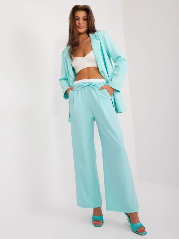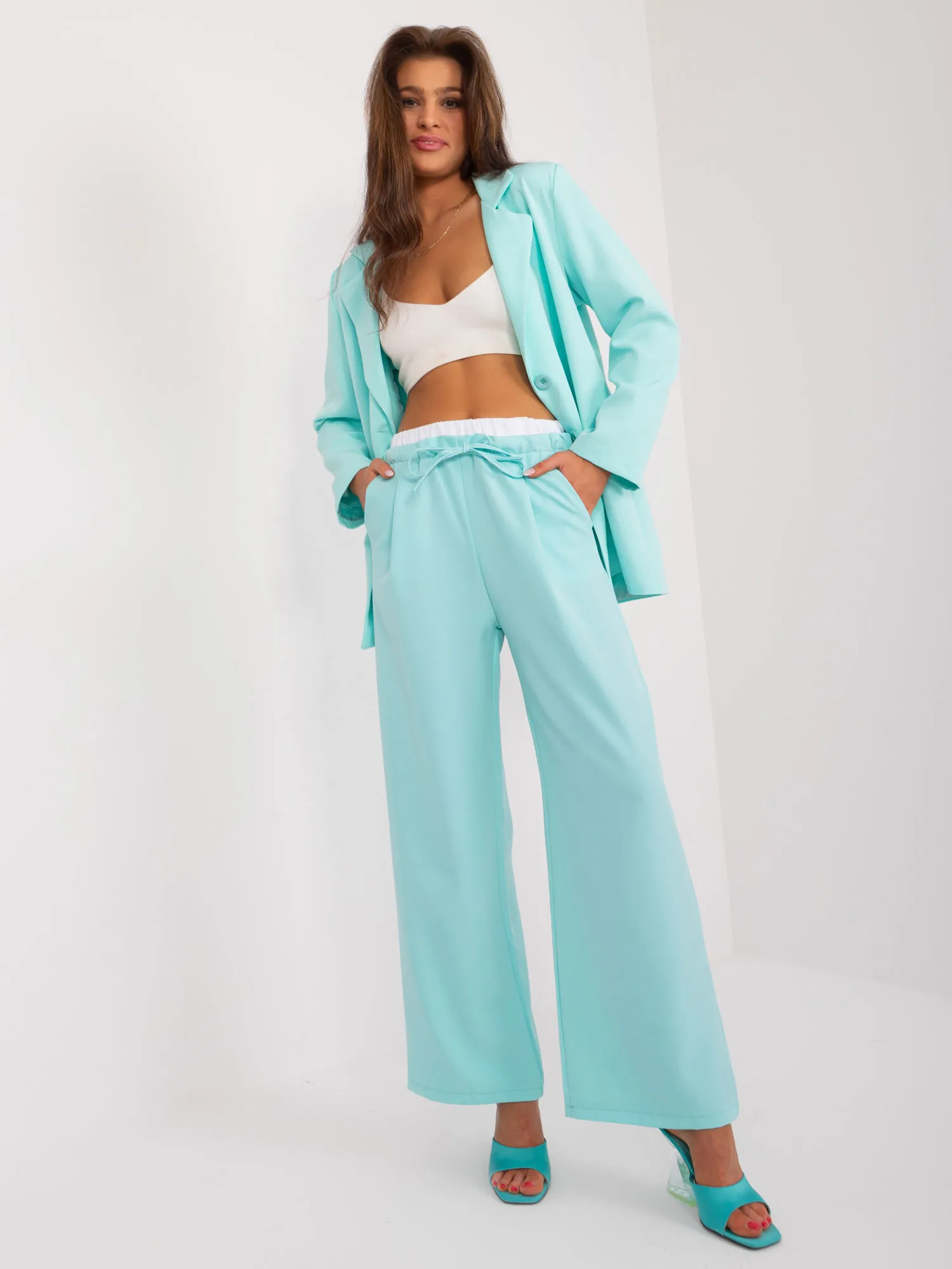 S dydžio kelnių išmatavimai, matuojami plokščiai: juosmens plotis - 34 cm, juosmens aukštis - 34 cm, bendras ilgis - 105 cm.