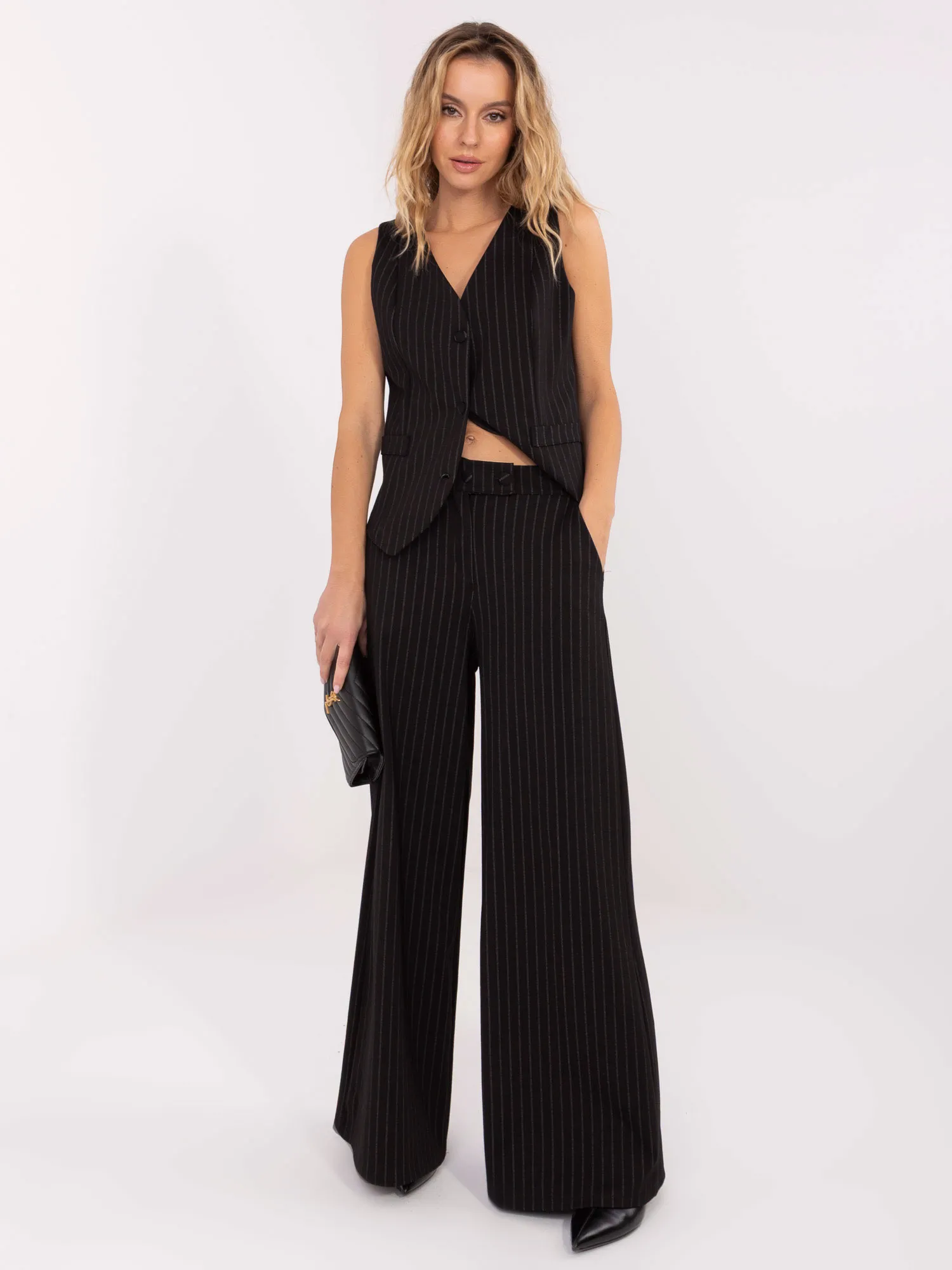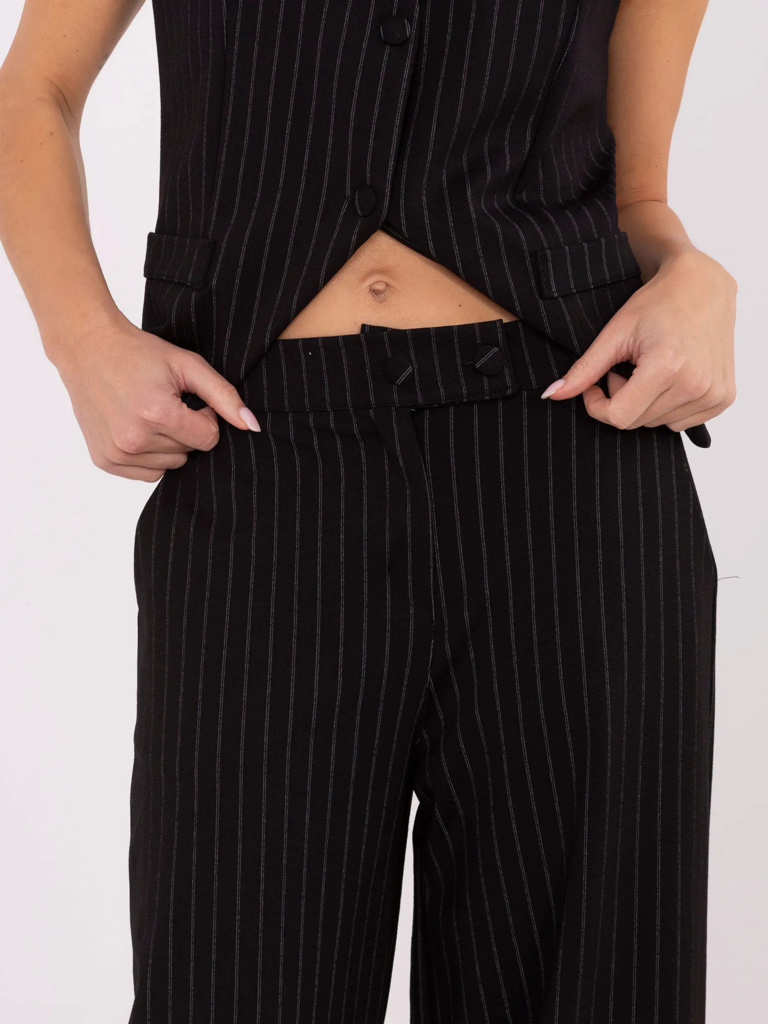 Vieno dydžio kelnių matmenys, išmatuoti plokščiai: juosmens plotis - 34 cm (ištiestų), juosmens plotis - 52 cm (ištempus), klubų plotis - 50 cm, juosmens aukštis - 31 cm, bendras ilgis - 108 cm.
