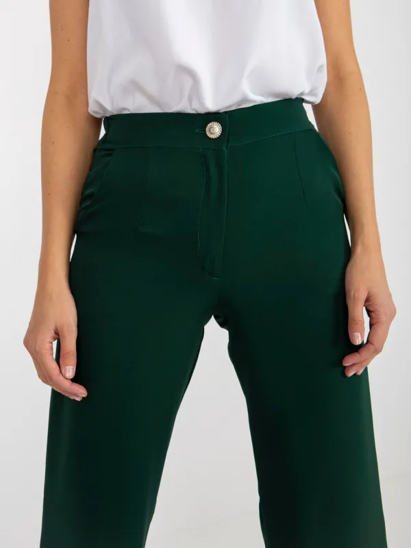 Tamsiai žalios plačios audinio kelnės su kišenėmis .