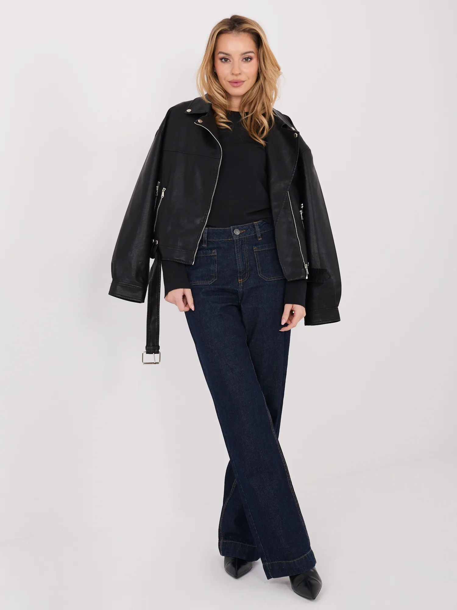 Modelka ma na sobie rozmiar one size. Wymiary modelki: wzrost 169 cm, biust 88 cm, talia 68 cm, biodra 89 cm