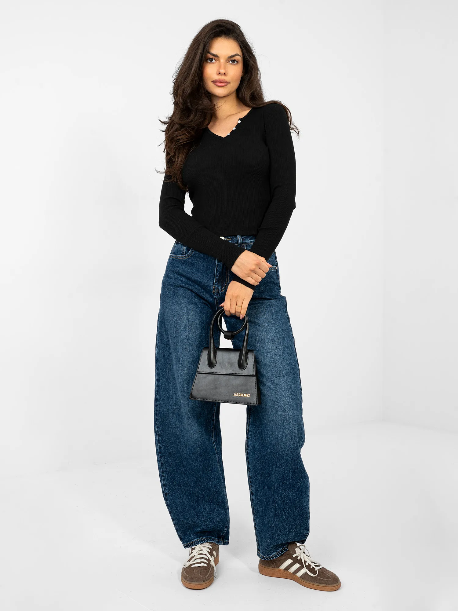 Modelis dėvi vieno dydžio dydį. Modelio išmatavimai: ūgis 173 cm, krūtinė 85 cm, juosmuo 62 cm, klubai 95 cm