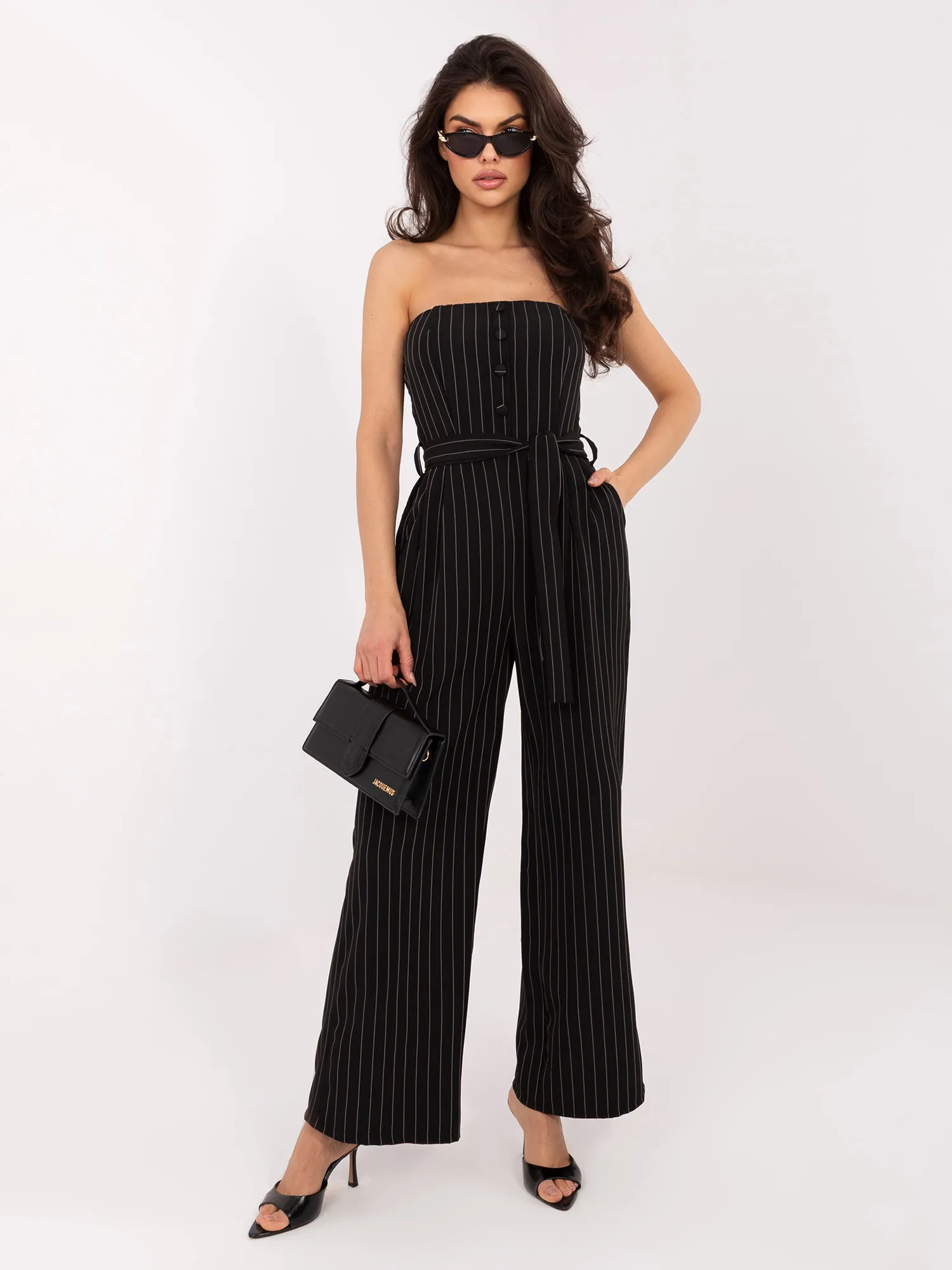 Modelis dėvi vieno dydžio dydį. Modelio išmatavimai: ūgis 173 cm, krūtinė 85 cm, juosmuo 62 cm, klubai 95 cm
